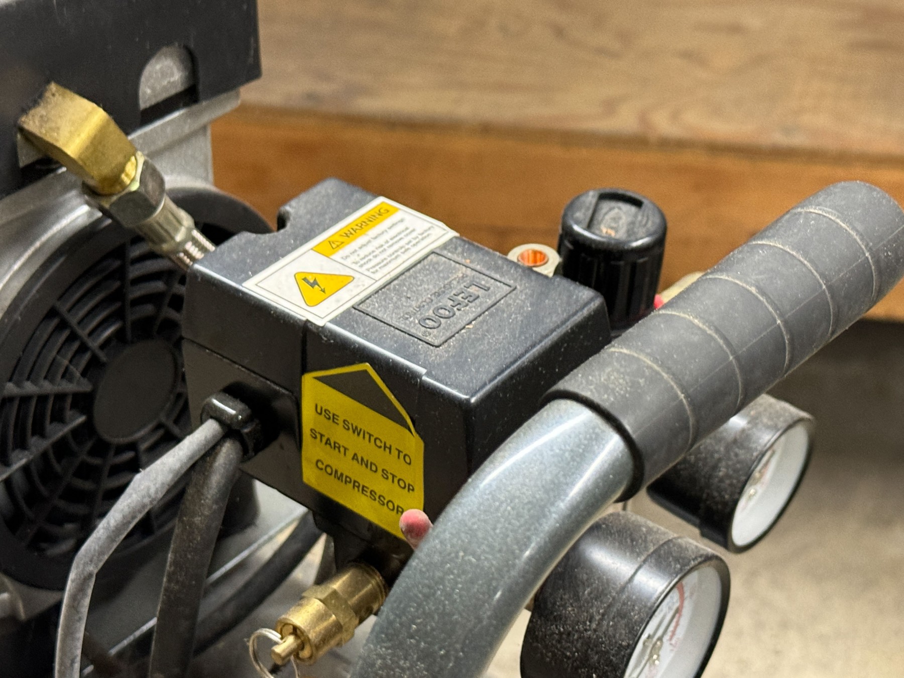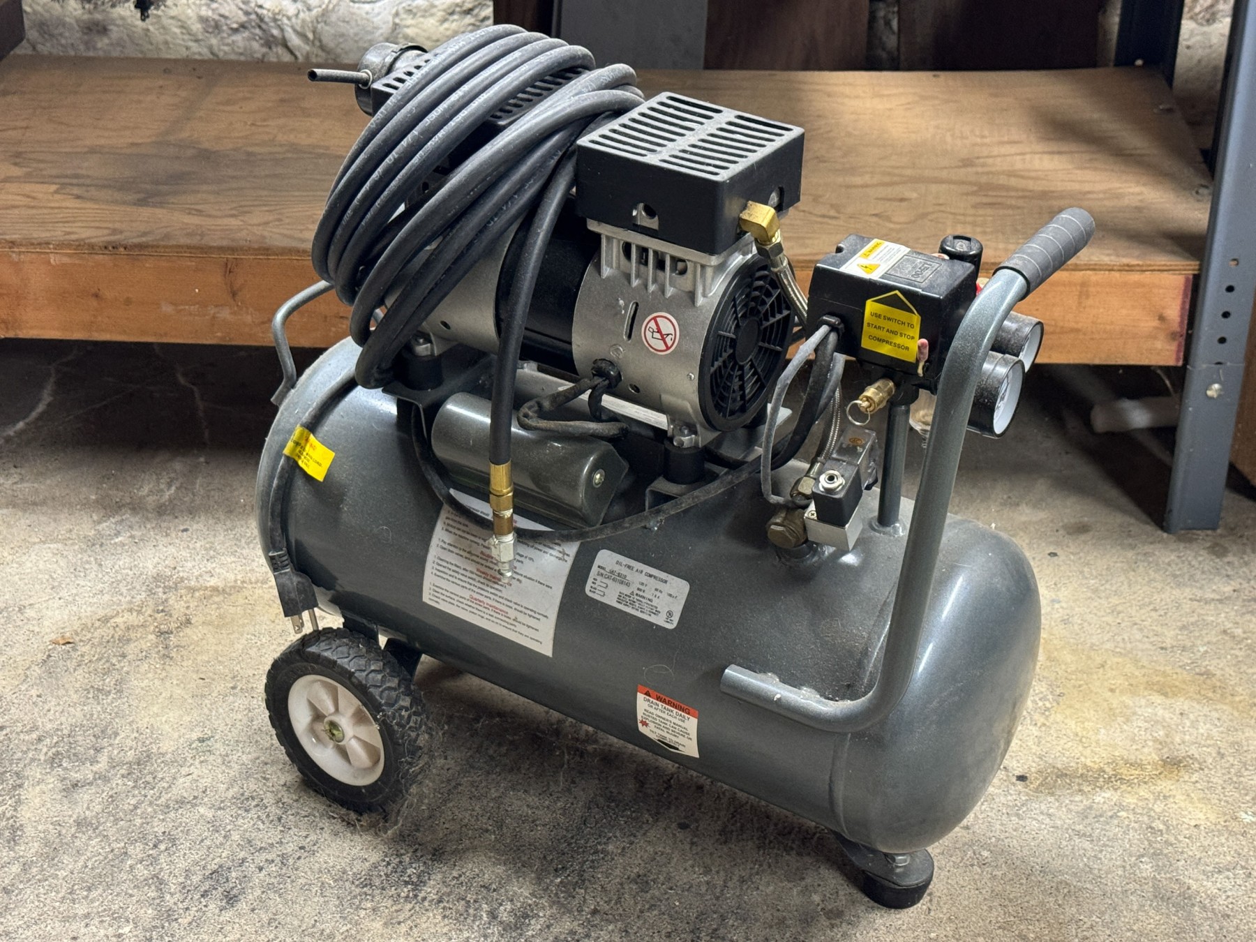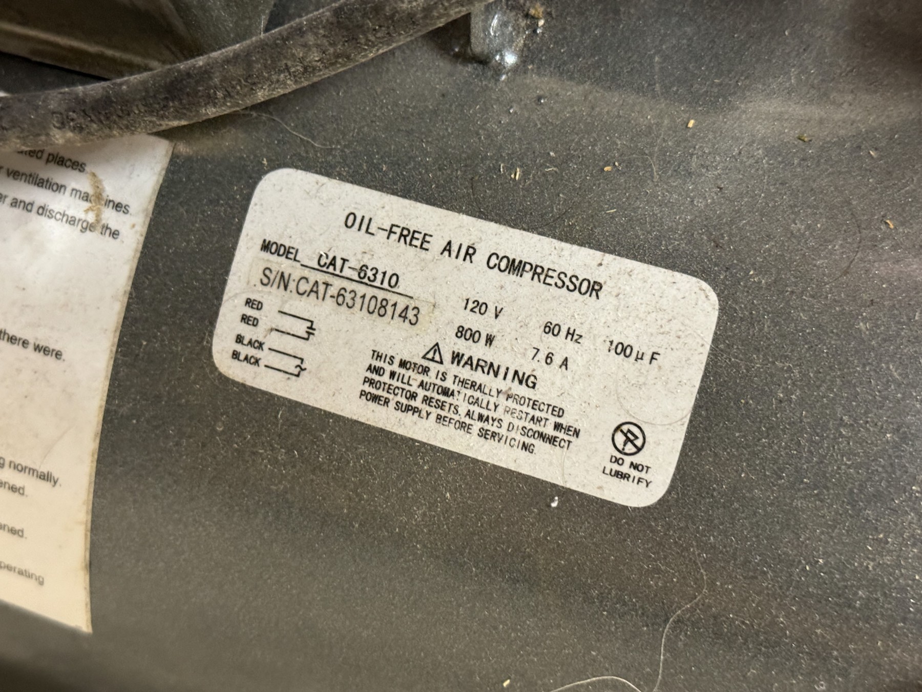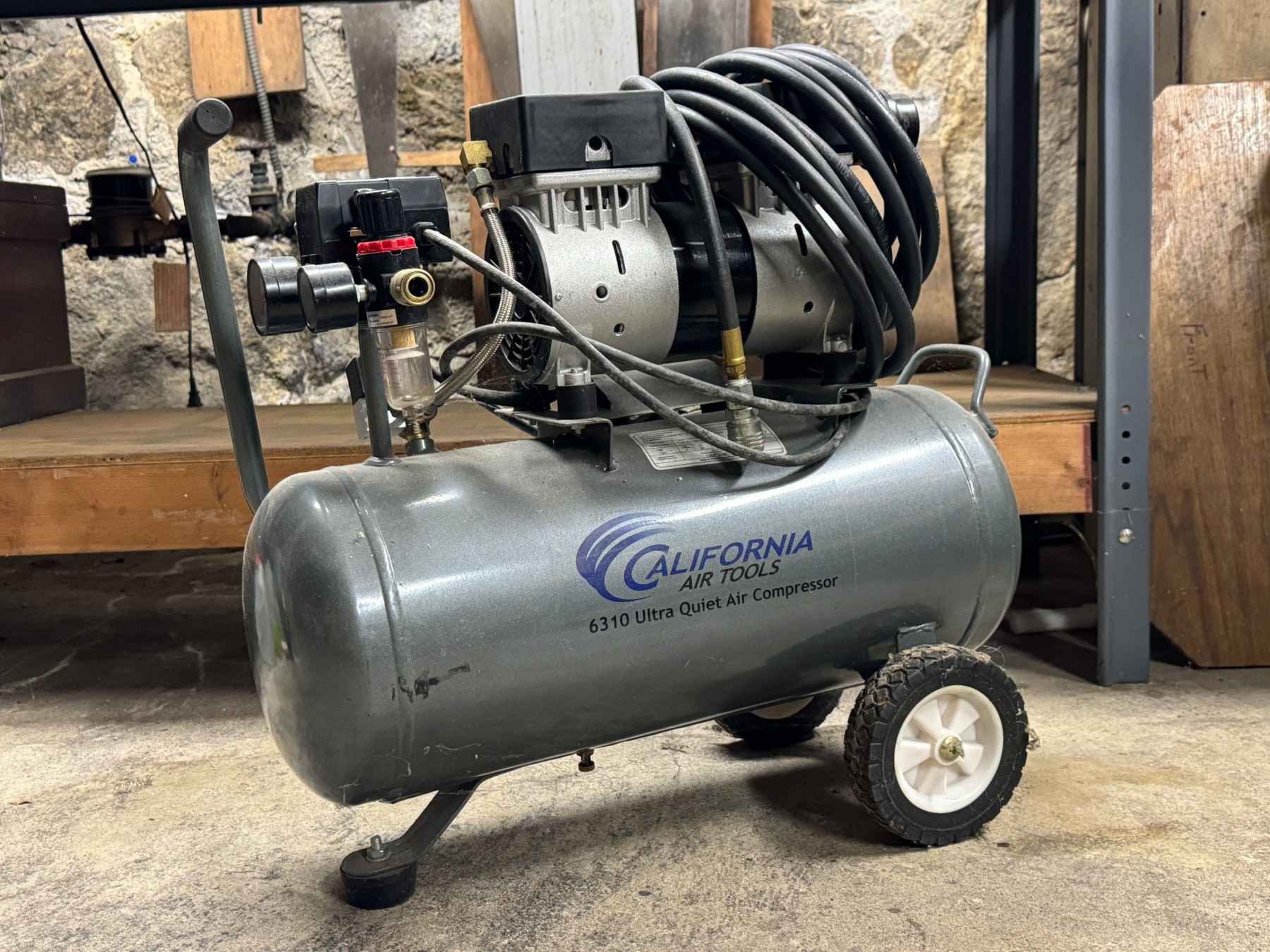 A 6.3 gallon, 1 HP electric air compressor by California Air