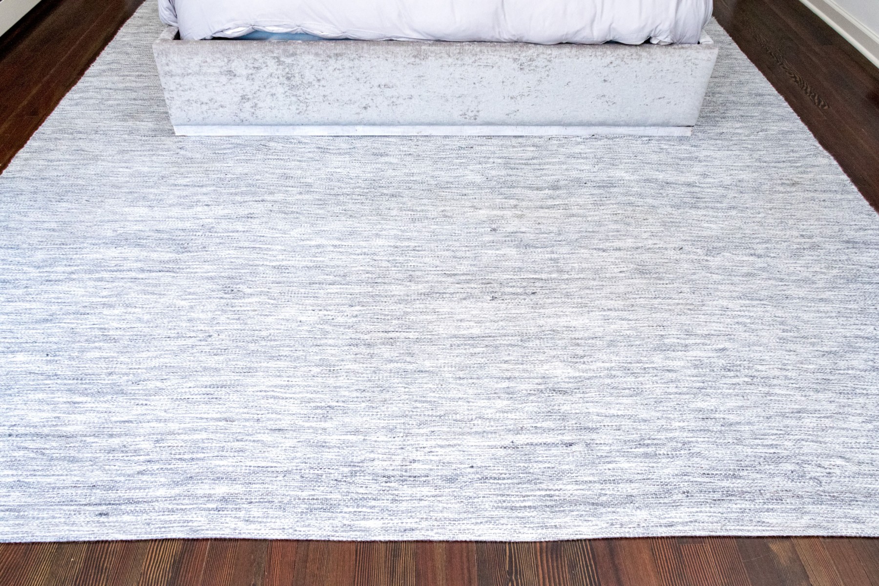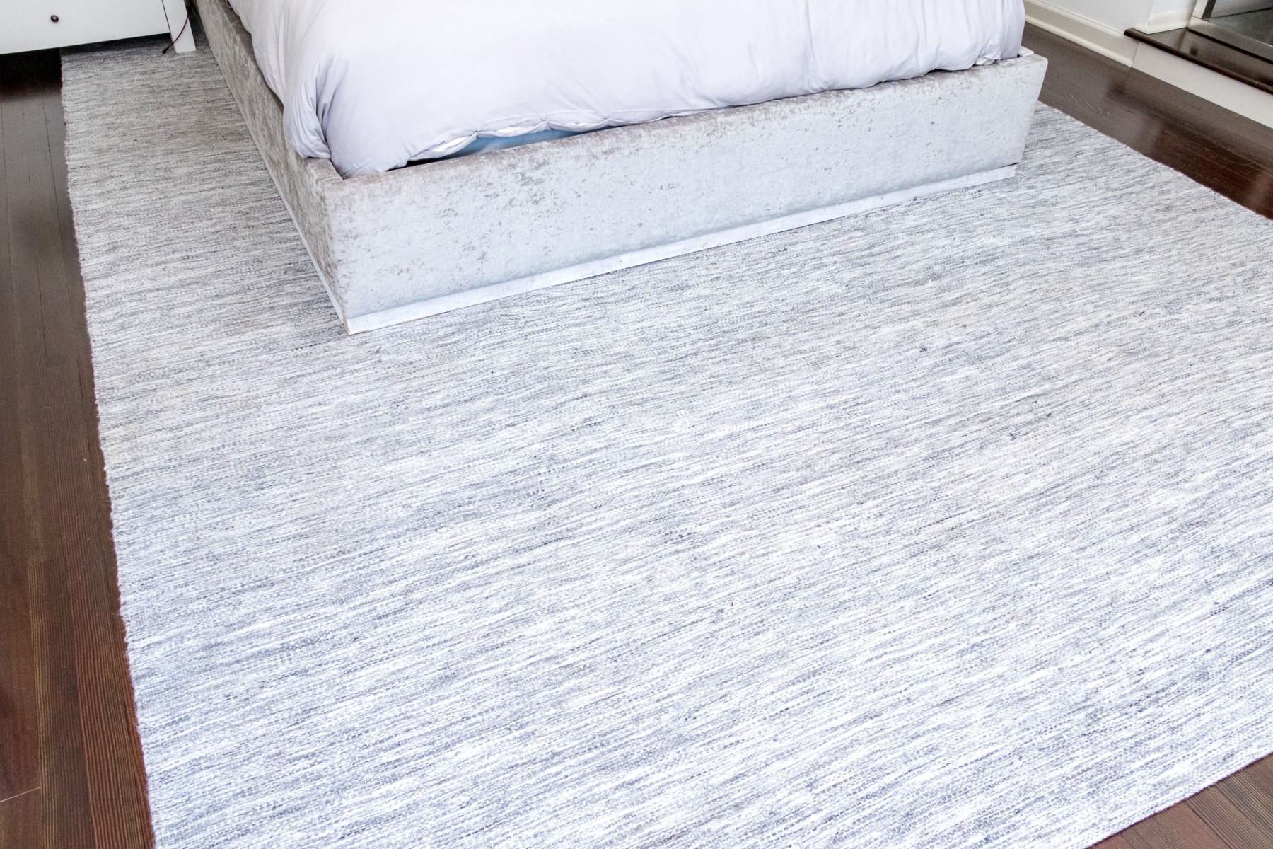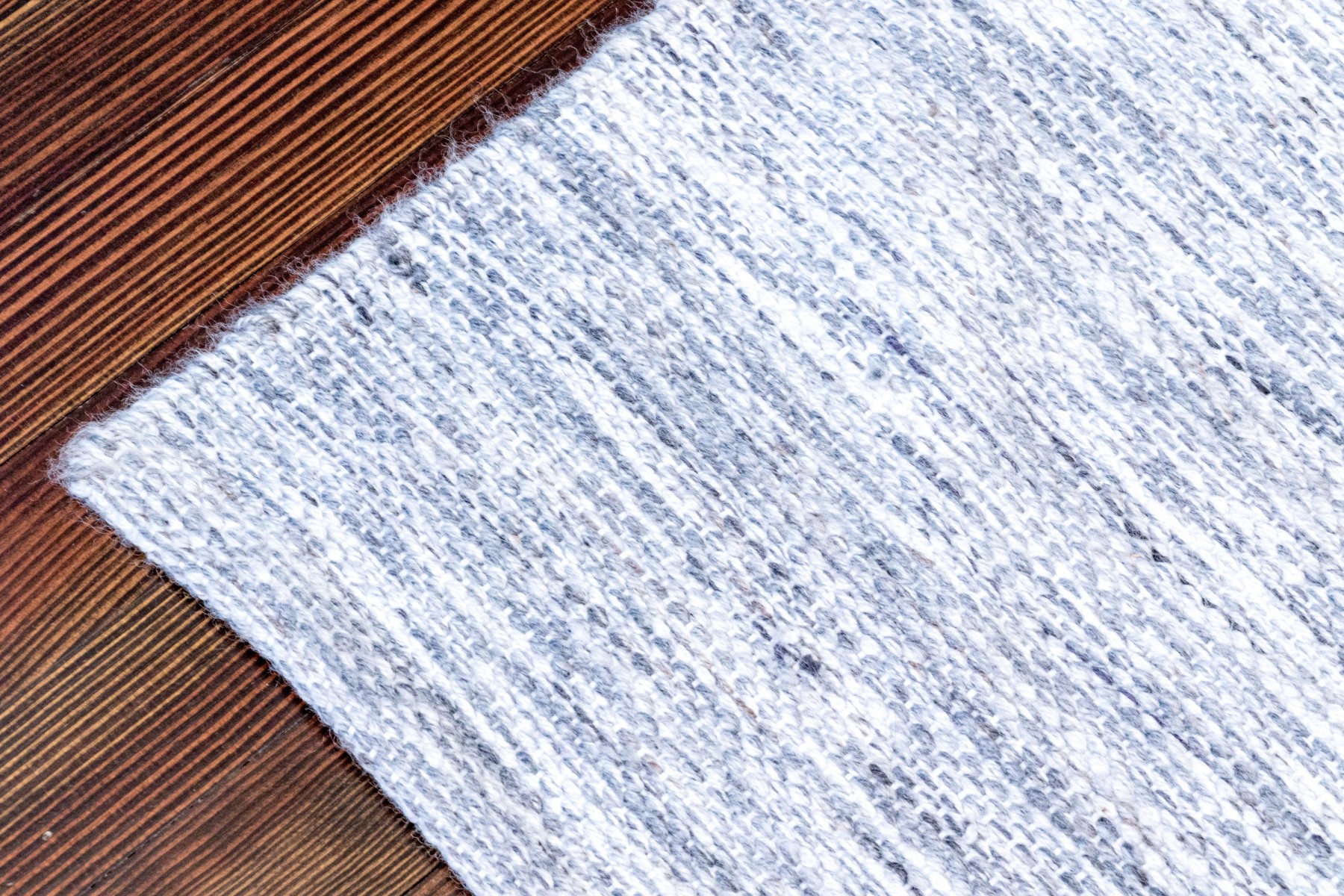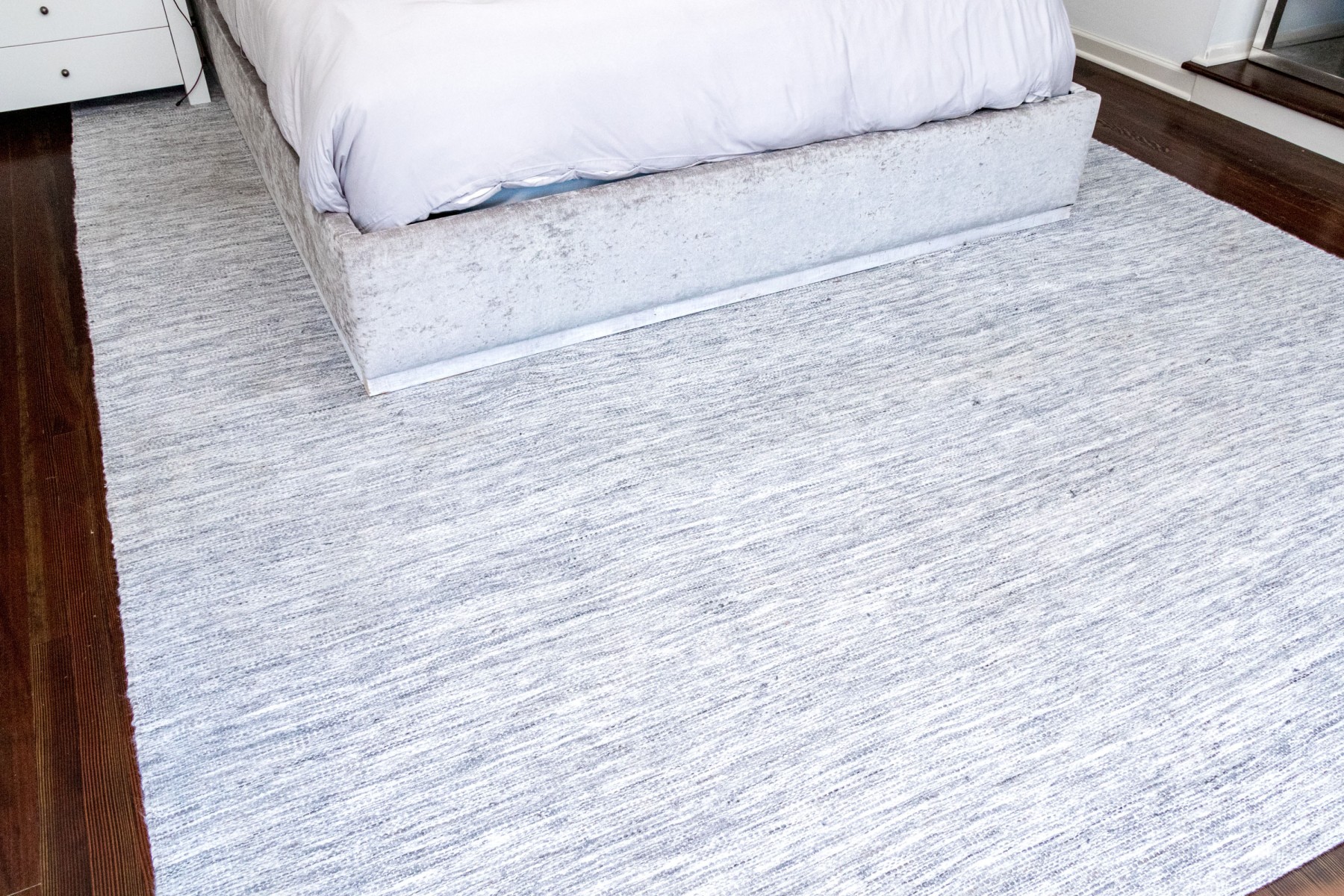 Soft grey, woven cotton area rug perfect for creating a neutral, warm feel to a variety of rooms throughout ones home.