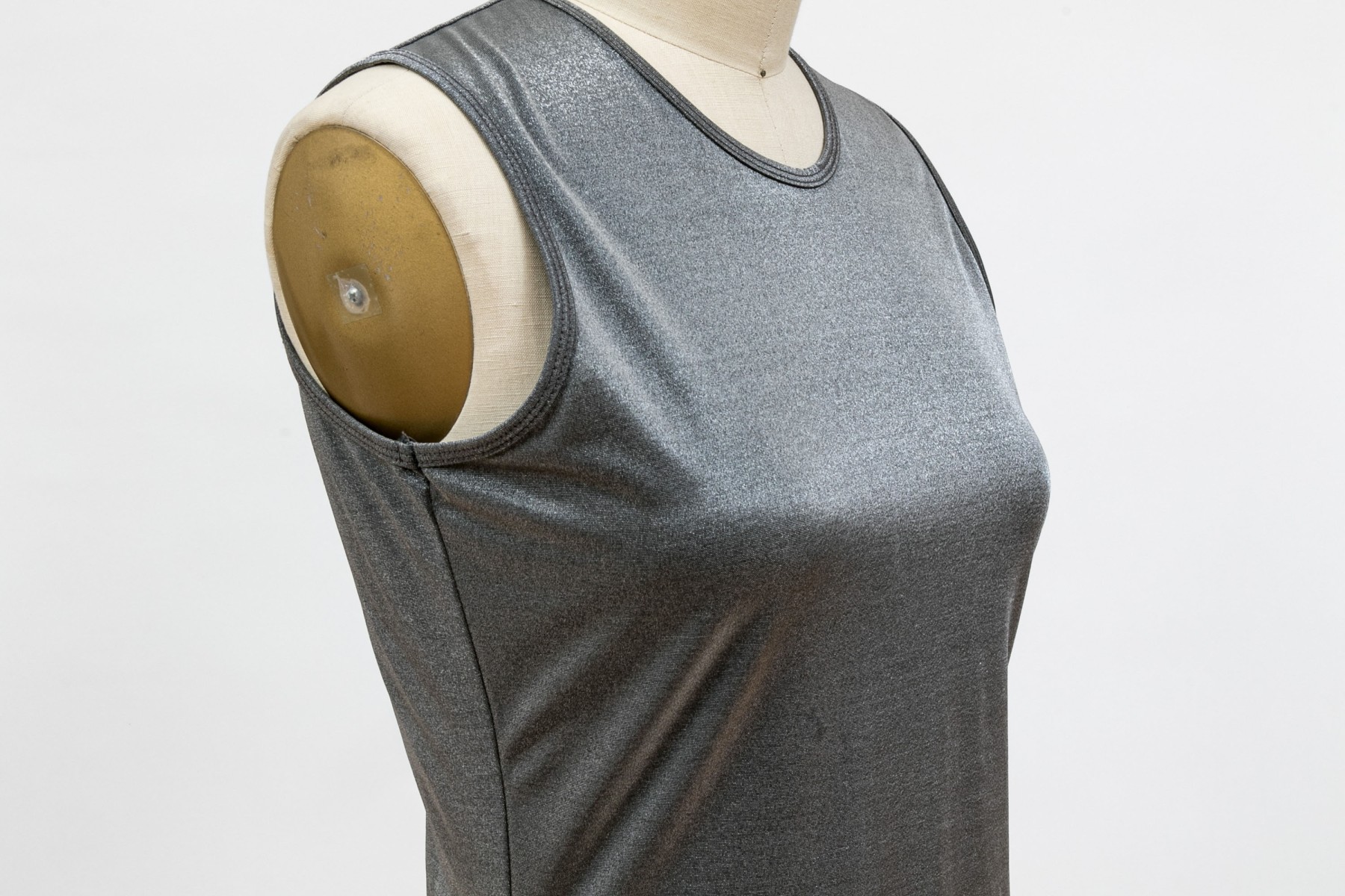 Calvin Klein striking silver metallic sleeveless tank dress, size small