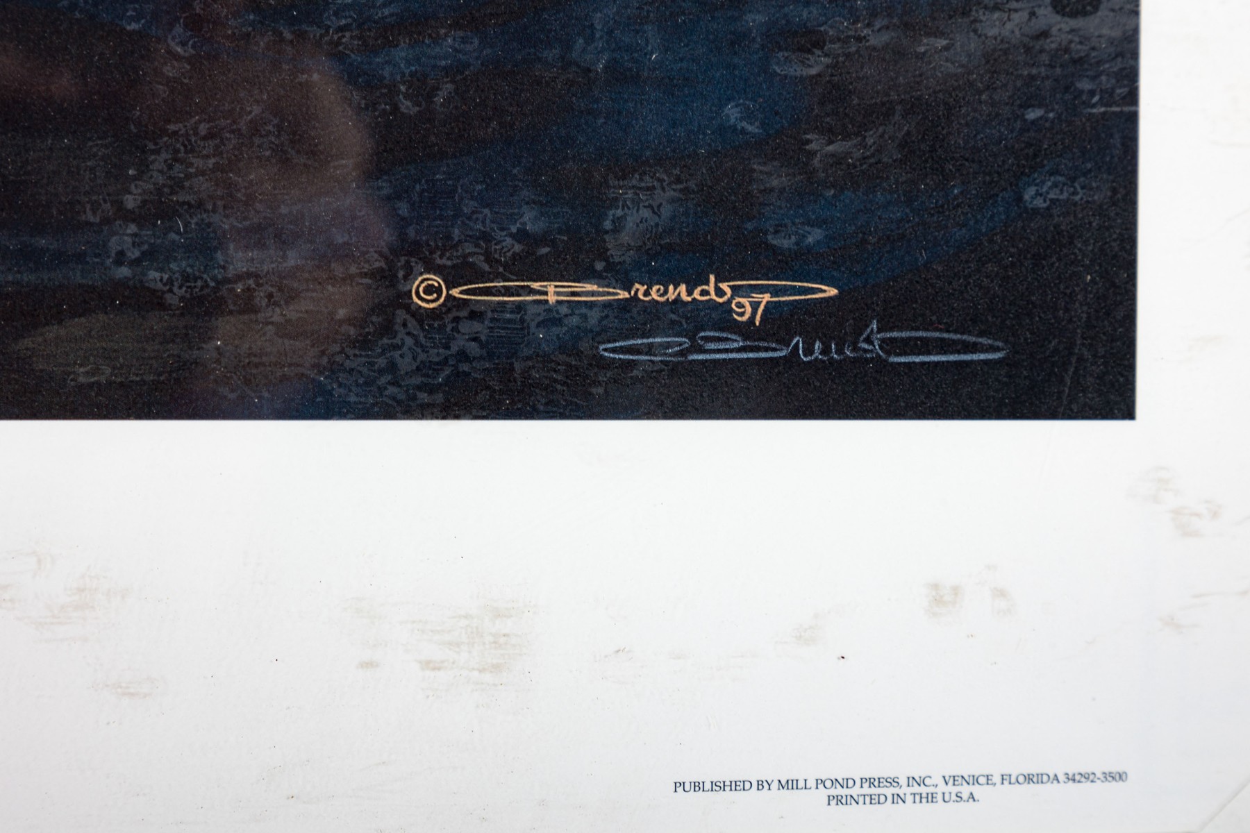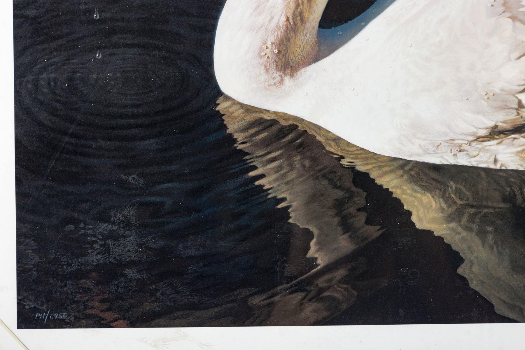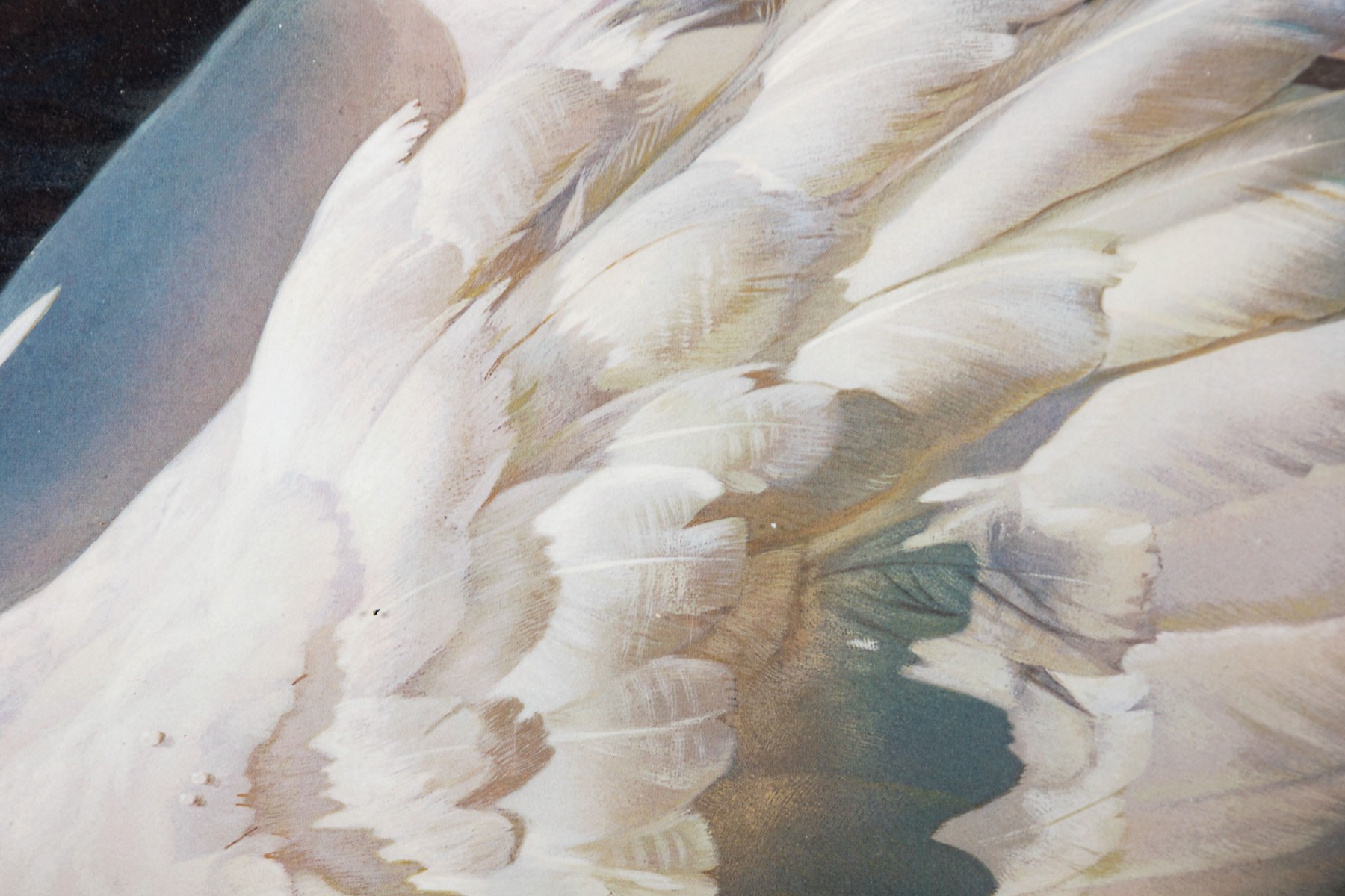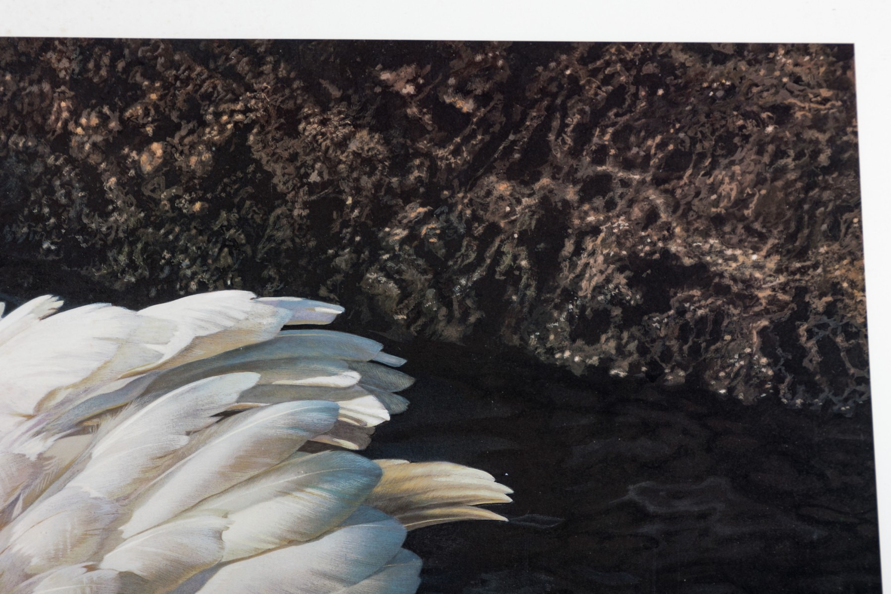 Carl Brenders (Belgian, B. 1937) "Memories of Tchaikovsky" lithograph depicting a majestic white swan swimming on a dark, calm body of water. Signed lower right, numbered 141/1750. Unframed, contained within a protective plastic film with a cardboard insert.