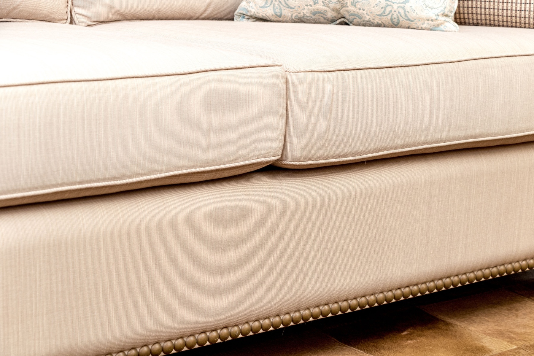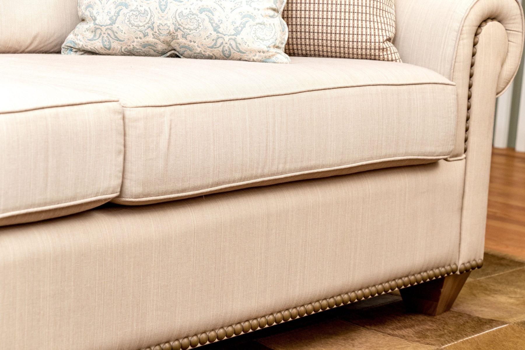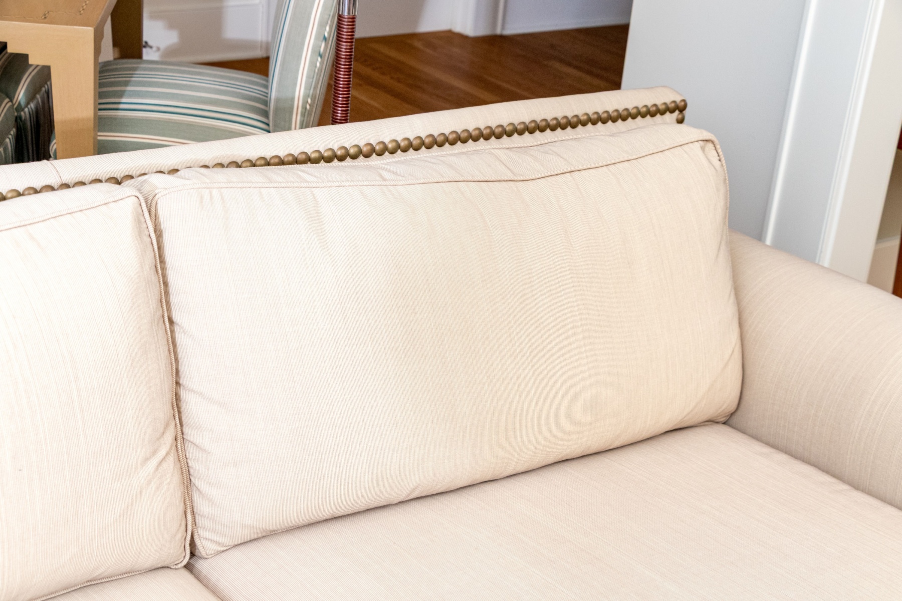 A high quality Carlyle steelweave sleeper sofa raised on four short feet with rolled arms, oversized tack nailhead trim. Two loose upholstered seat cushions and two loose upholstered seat back cushions.