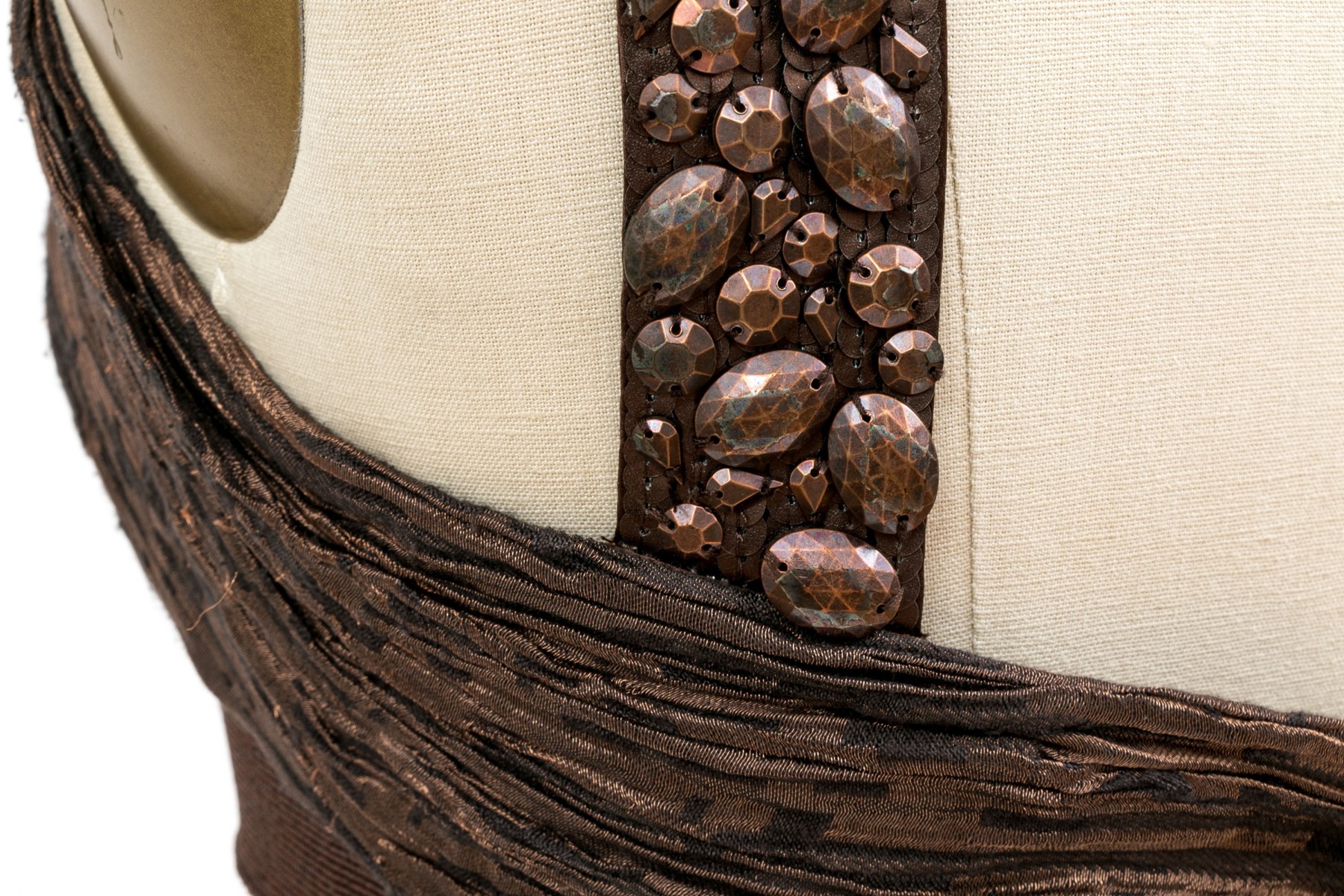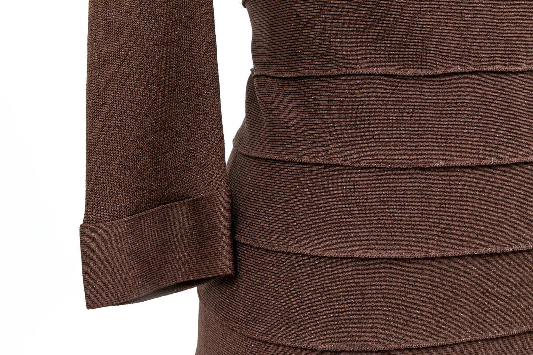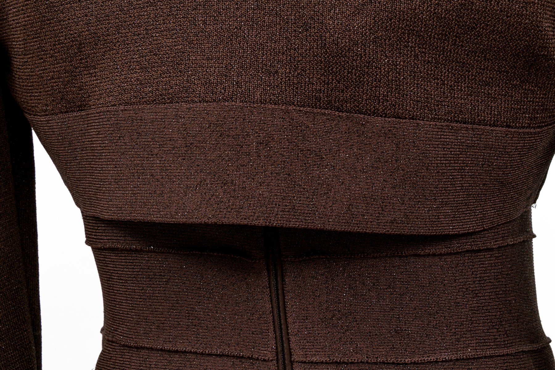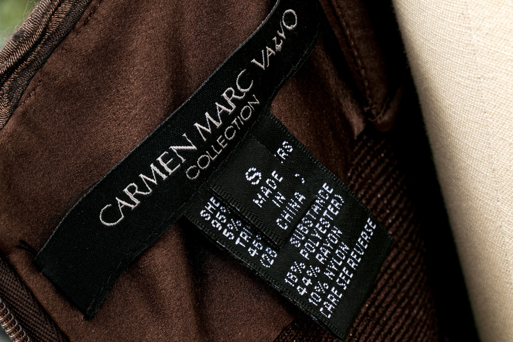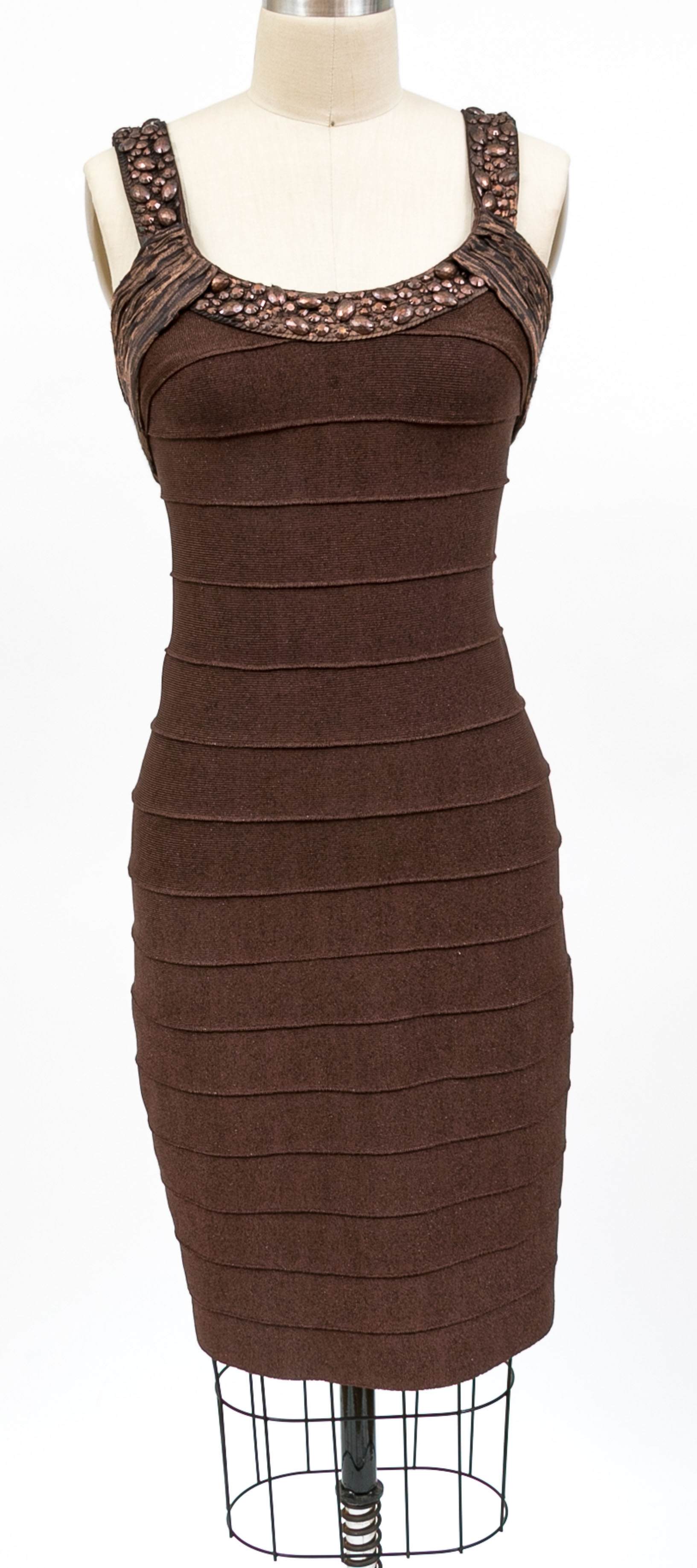 Carmen Marc Valvo brown and copper bedazzled tank sheath, matching bolero jacket, size S