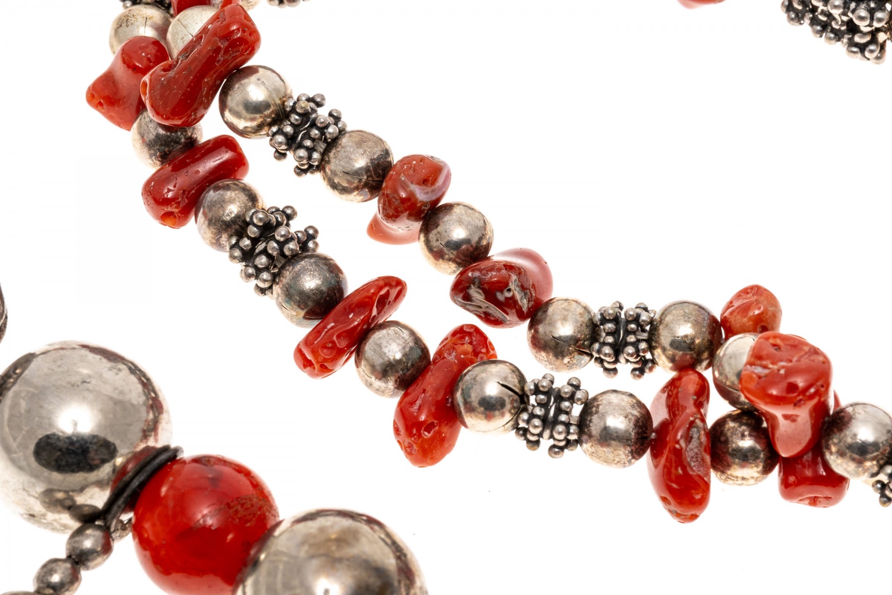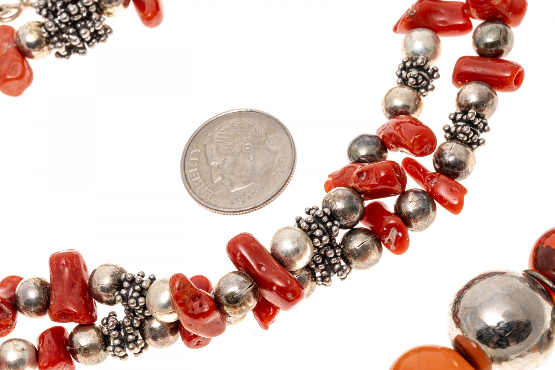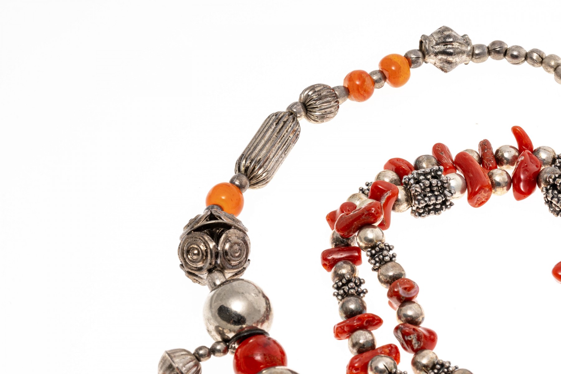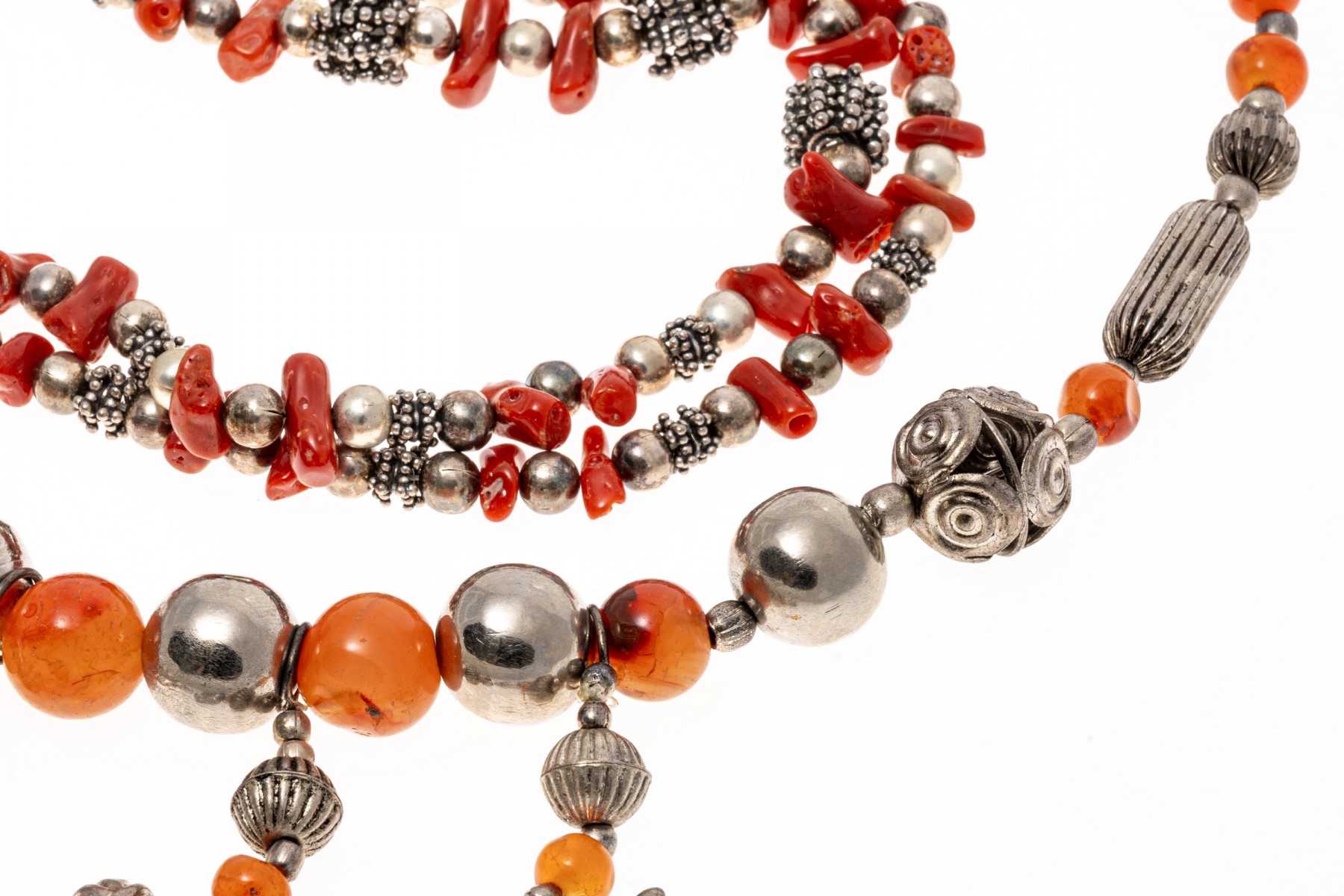 Dimensions: 32 1/2" L x 1/2" W-Coral and Sterling Beaded Necklace, 24" L x 2 1/2" W-Carnelian Beaded Necklace