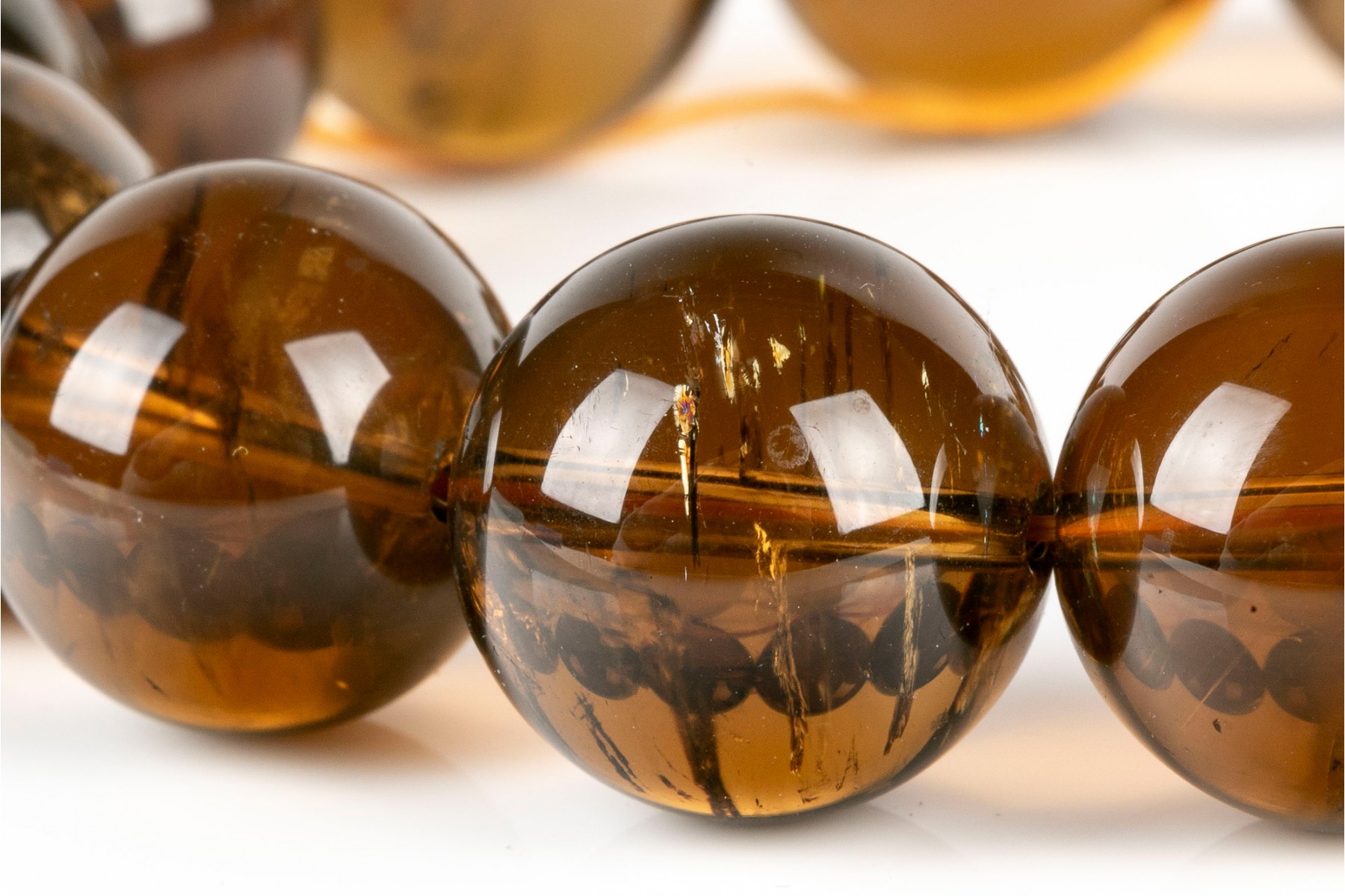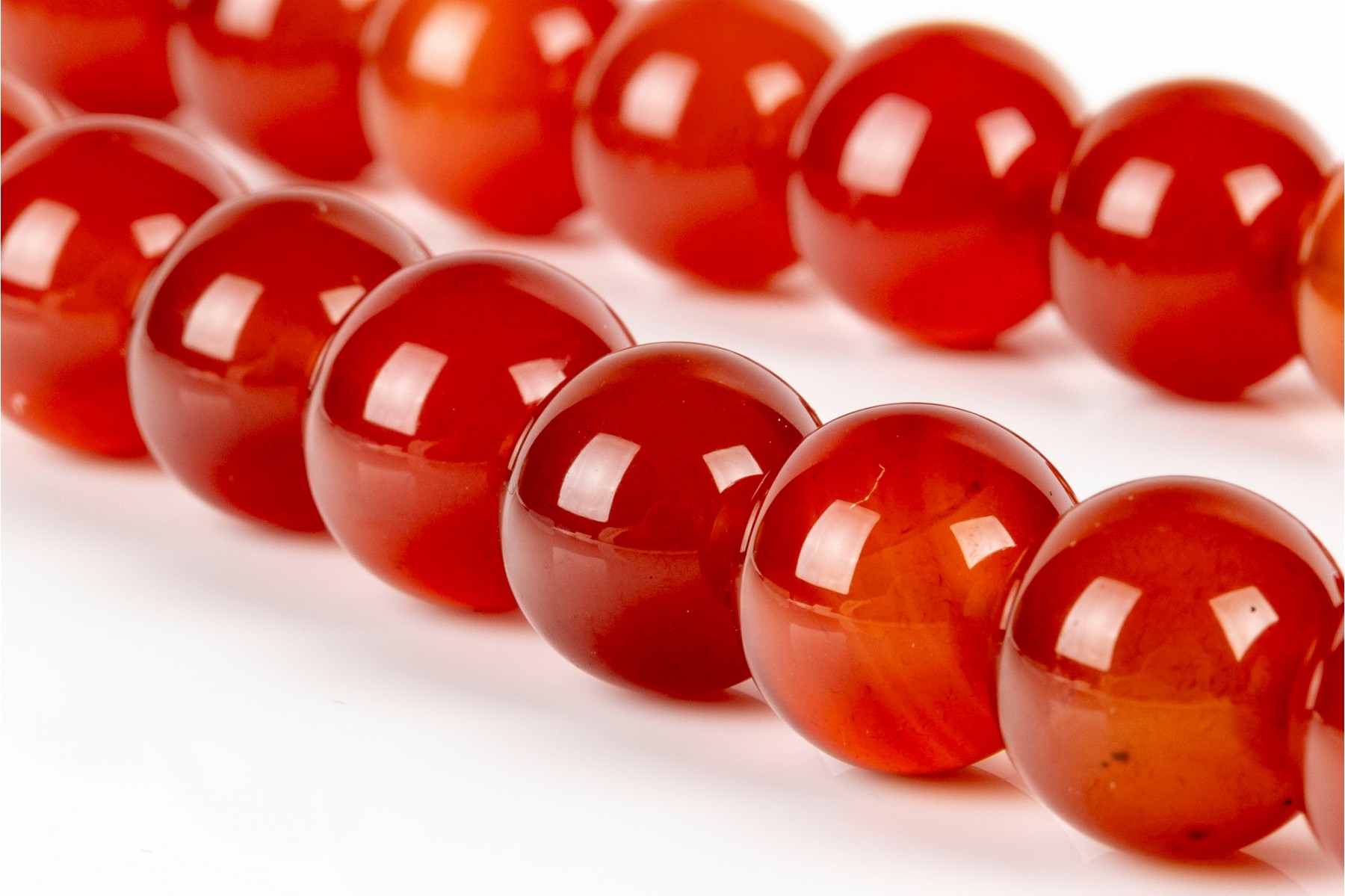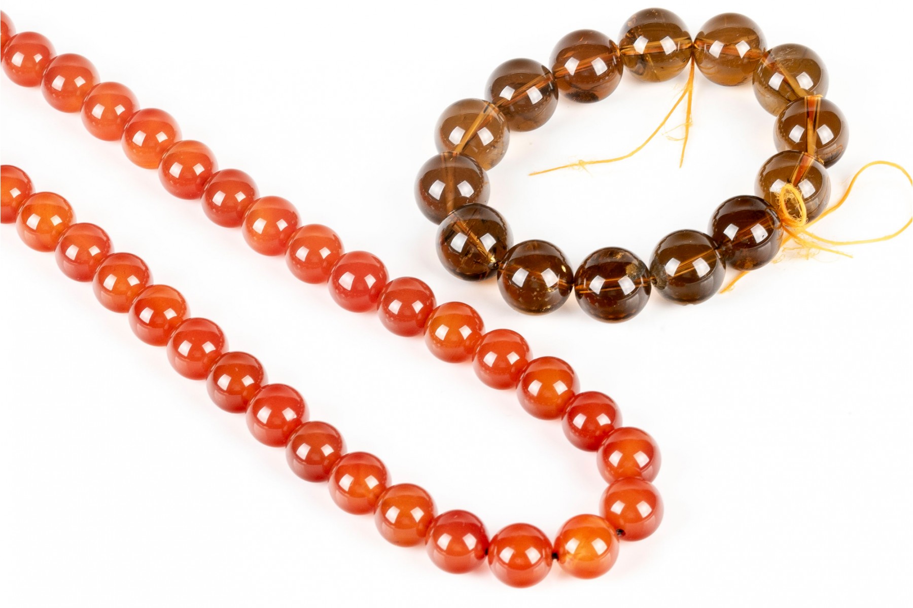 Carnelian beaded necklace and brown quartz beaded bracelet