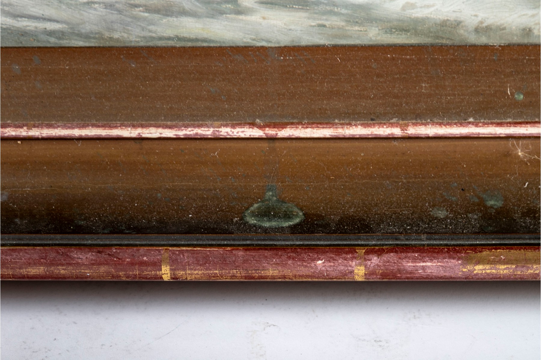 Displays well. The frame has wear commensurate with age including moderate gesso losses around the edges, finish wear, scuffs, nicks, discoloration. Please review the pictures as they are a part of the condition report.