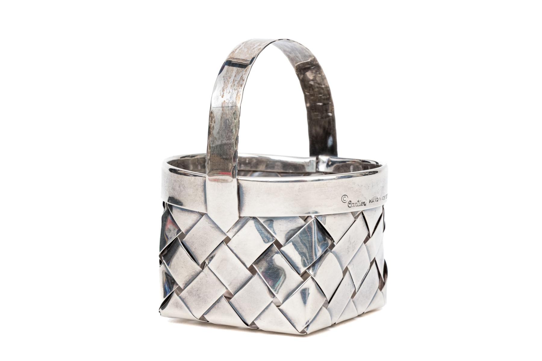 Cartier Hand- Made Sterling Silver Small Basket 1.585 Ozt.