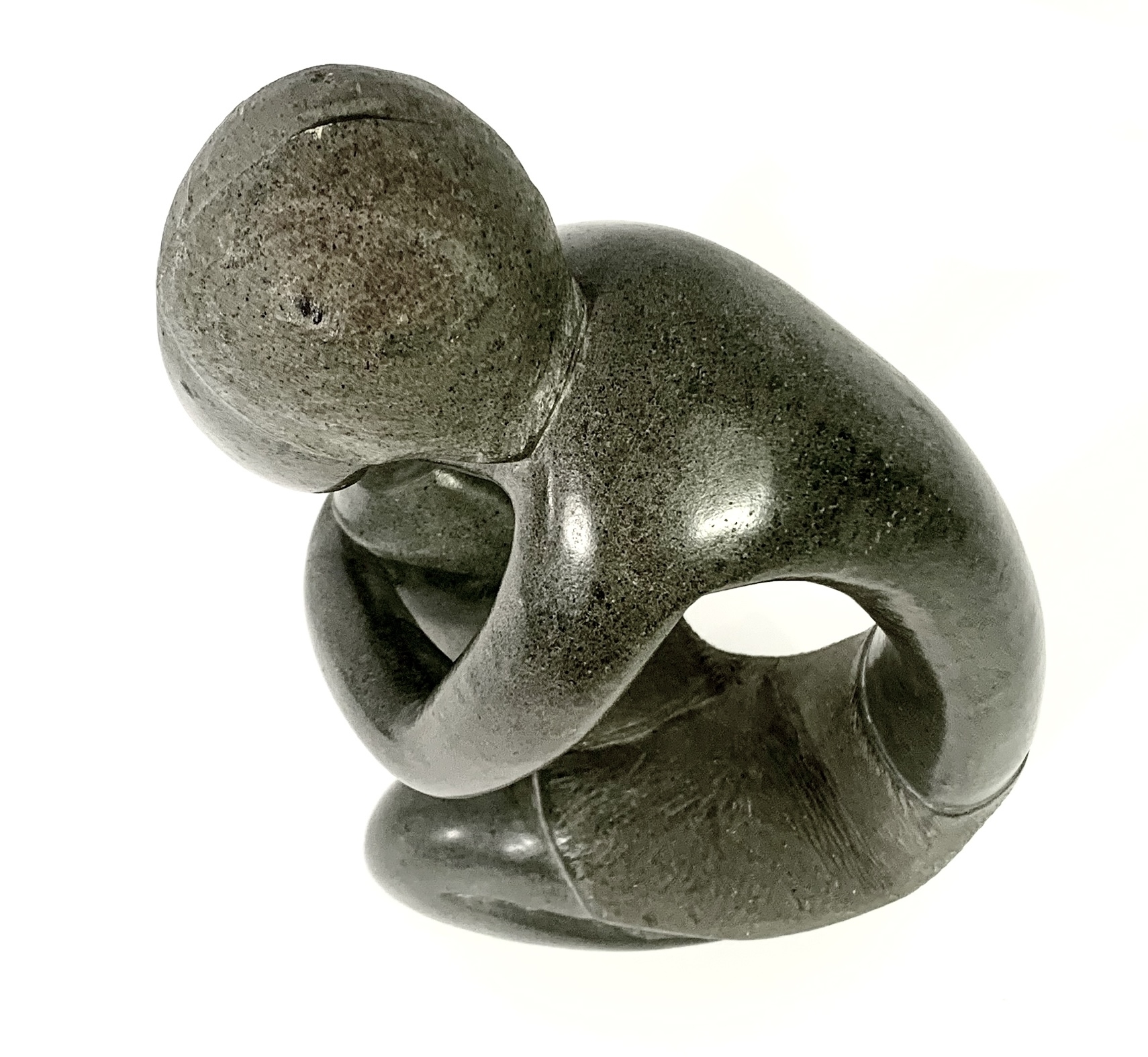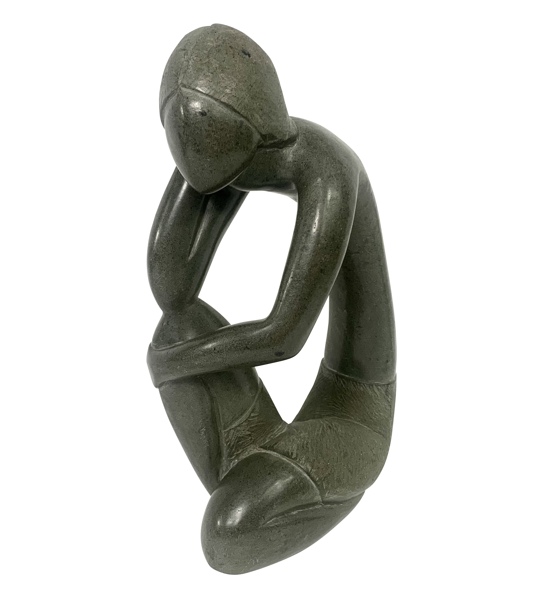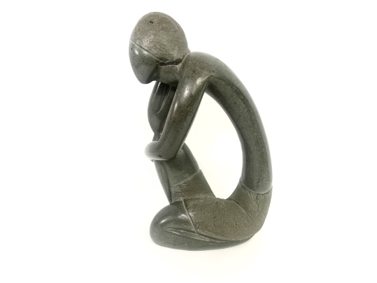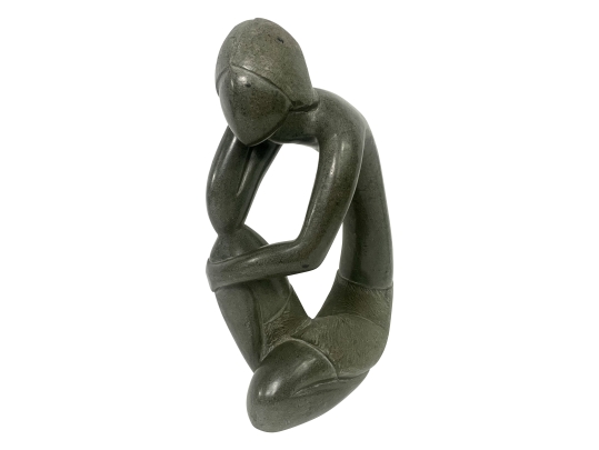 Carved Abstract Stone Sculpture Of A Figure In Thinking Position