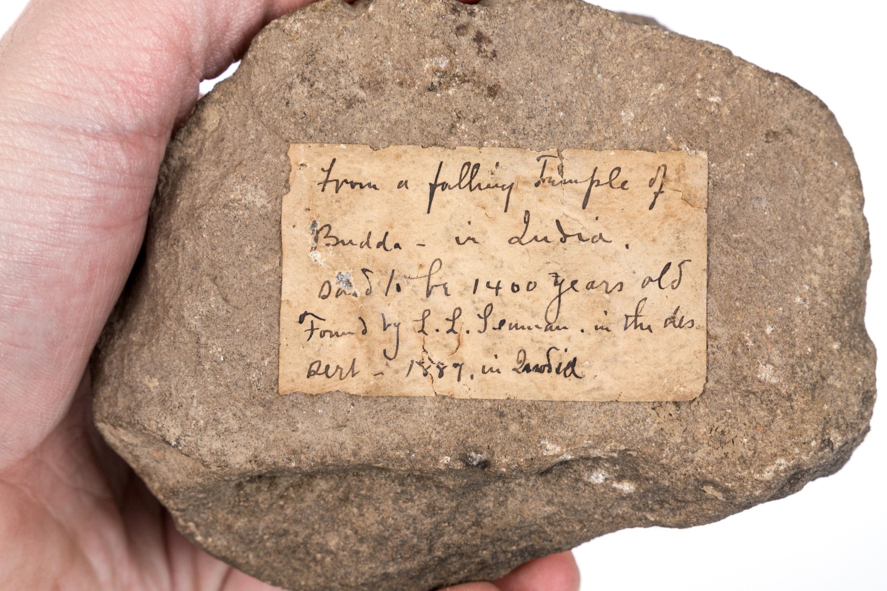 Marked underneath. Purportedly from India and is 1400 years of age.