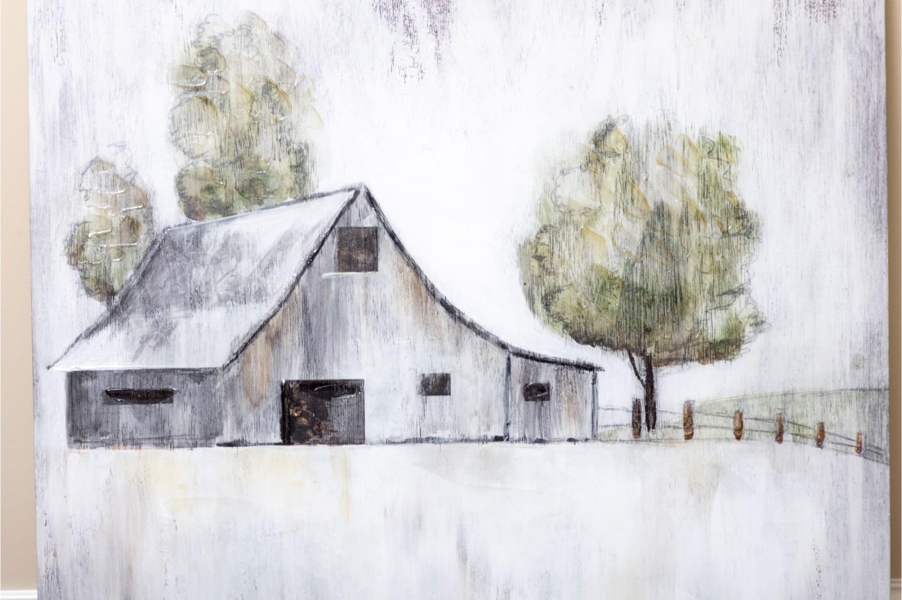 36x36" Weathered Barn canvas wall art by Casa Fine Arts. Item is displayed openly on stretched canvas with no external frame.