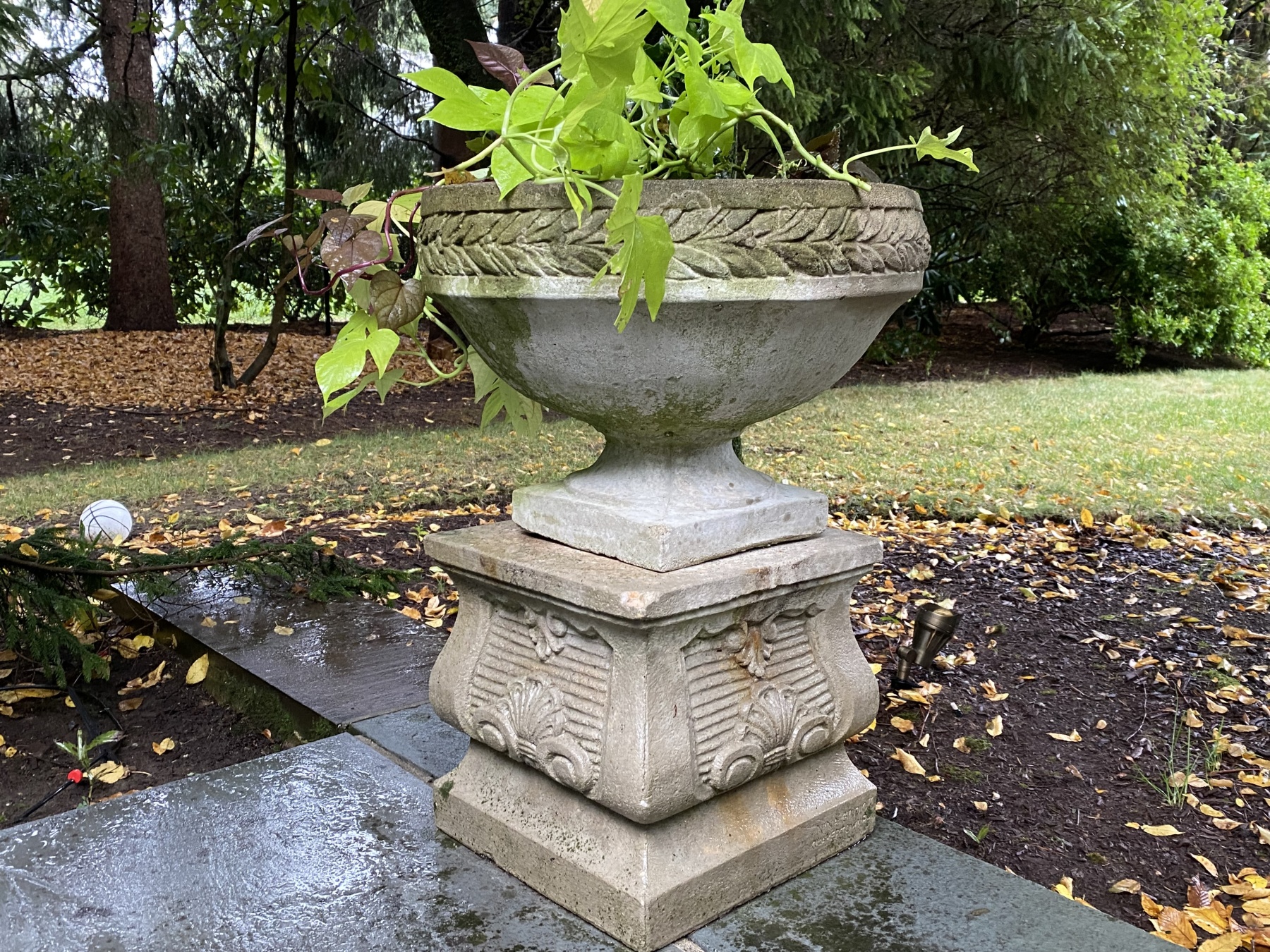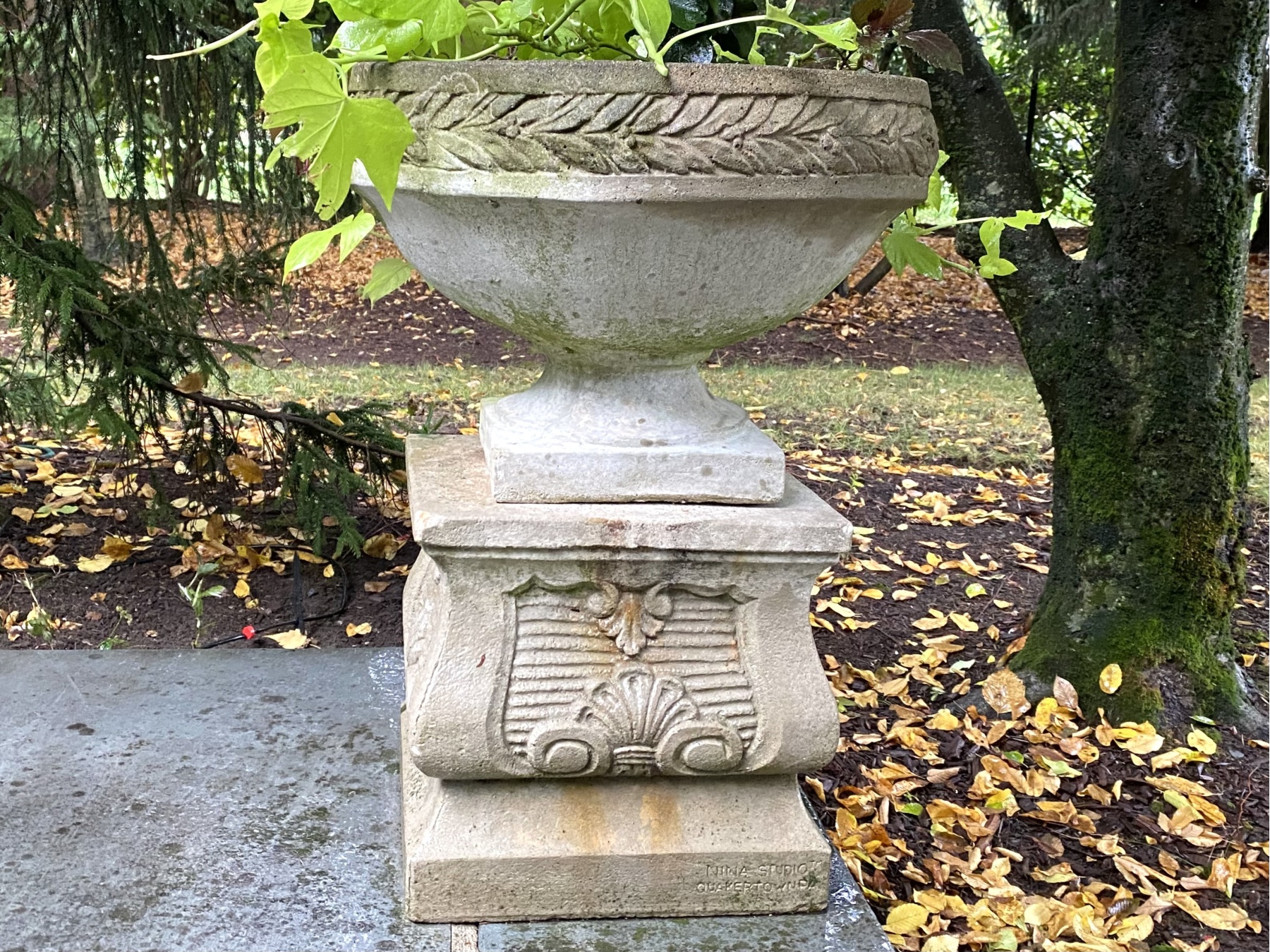 17 1/2" Dia urn x 13" SQ plinth x 25" total H