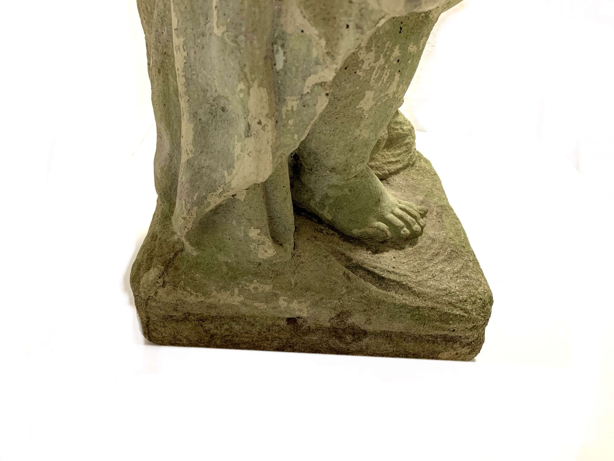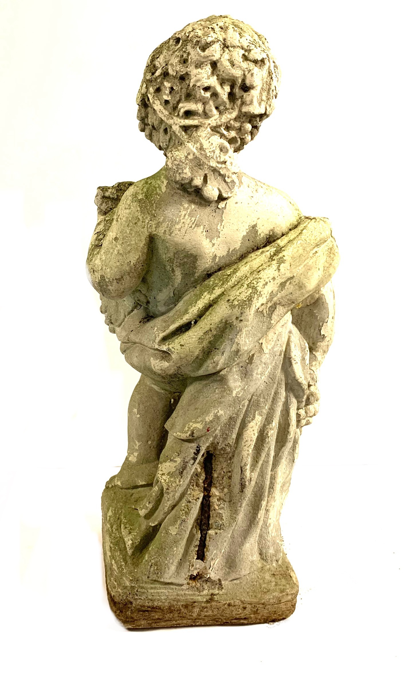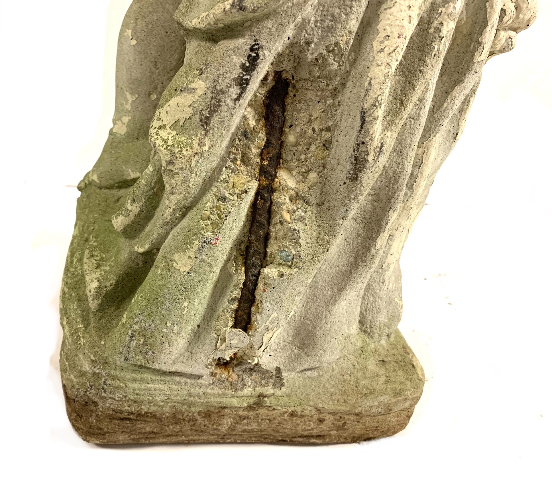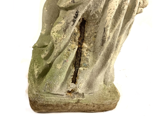 Condition: chip to back exposing the interior rebarb, weathered. Please see photos for details of condition.