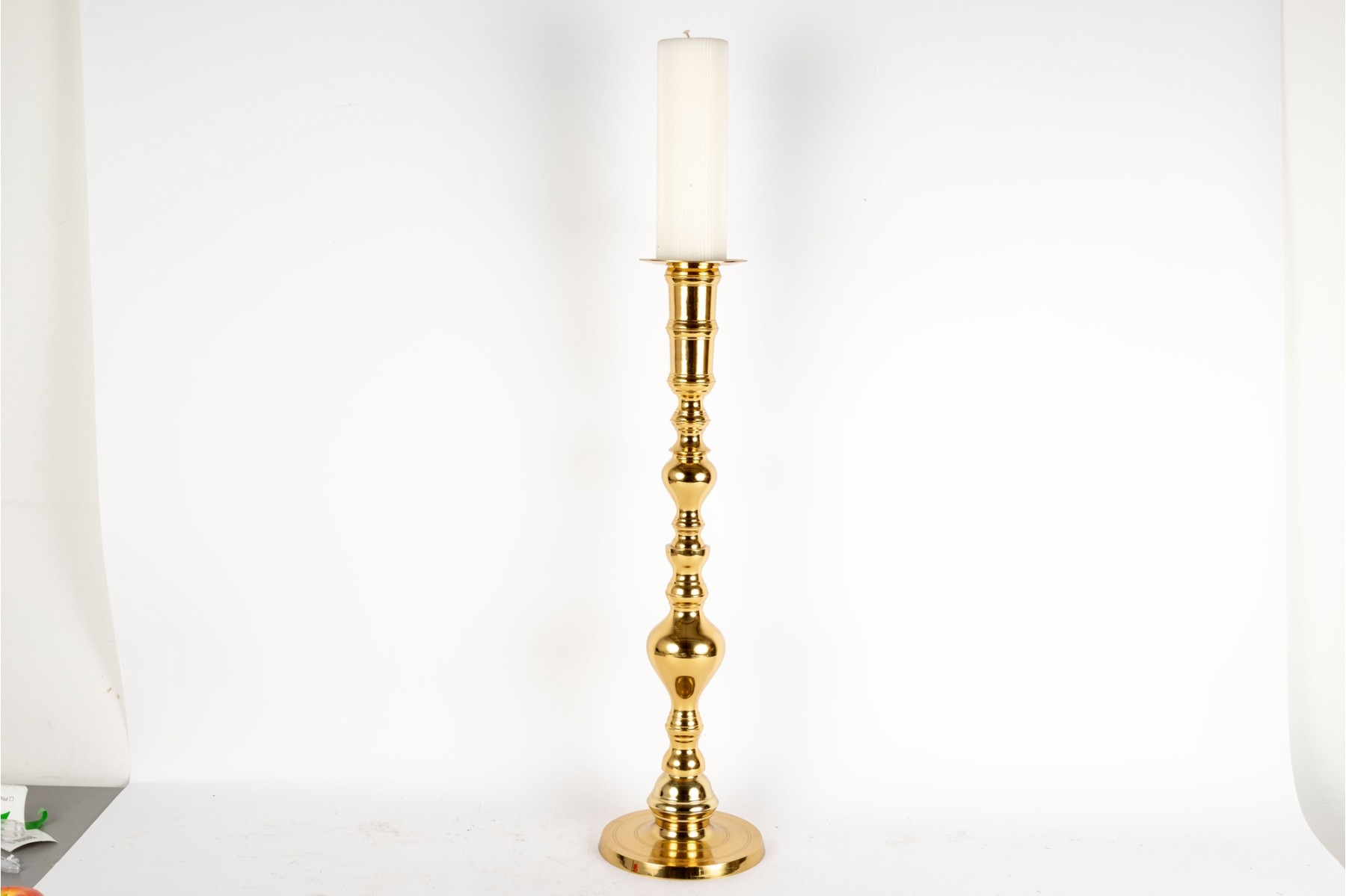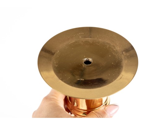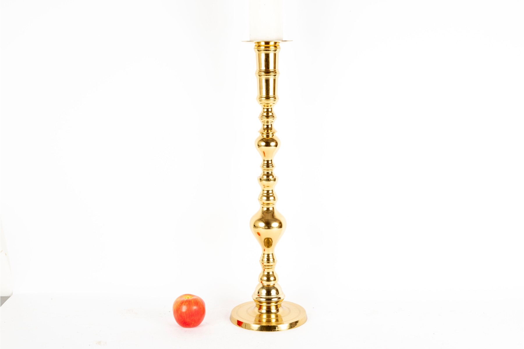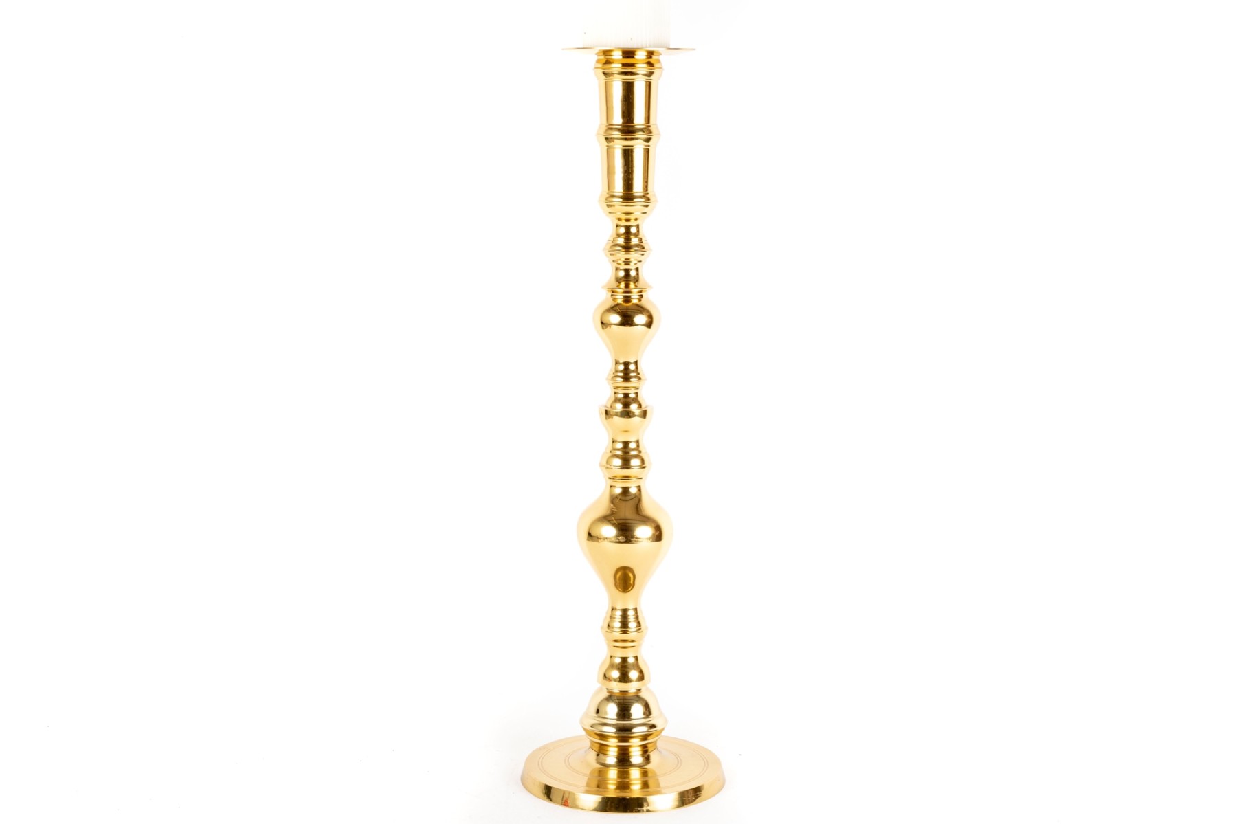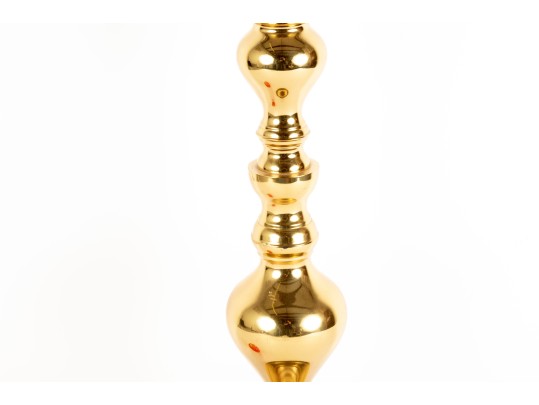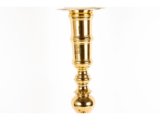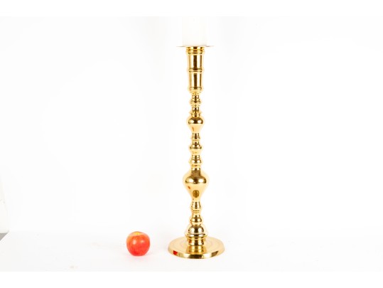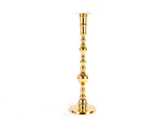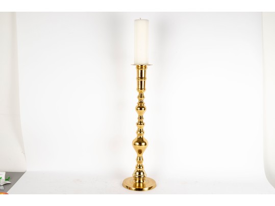 A large, 25" tall polished brass column candle holder by Castilian Imports.