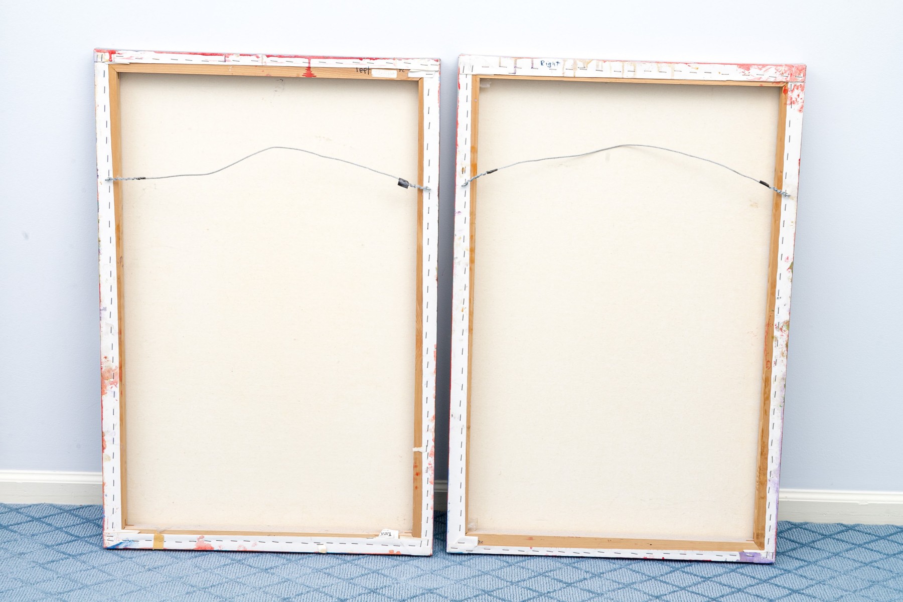 Fabulously painted dyptich, comprised of two oil on canvas paintings each pulled over their stretcher support and presented unframed.