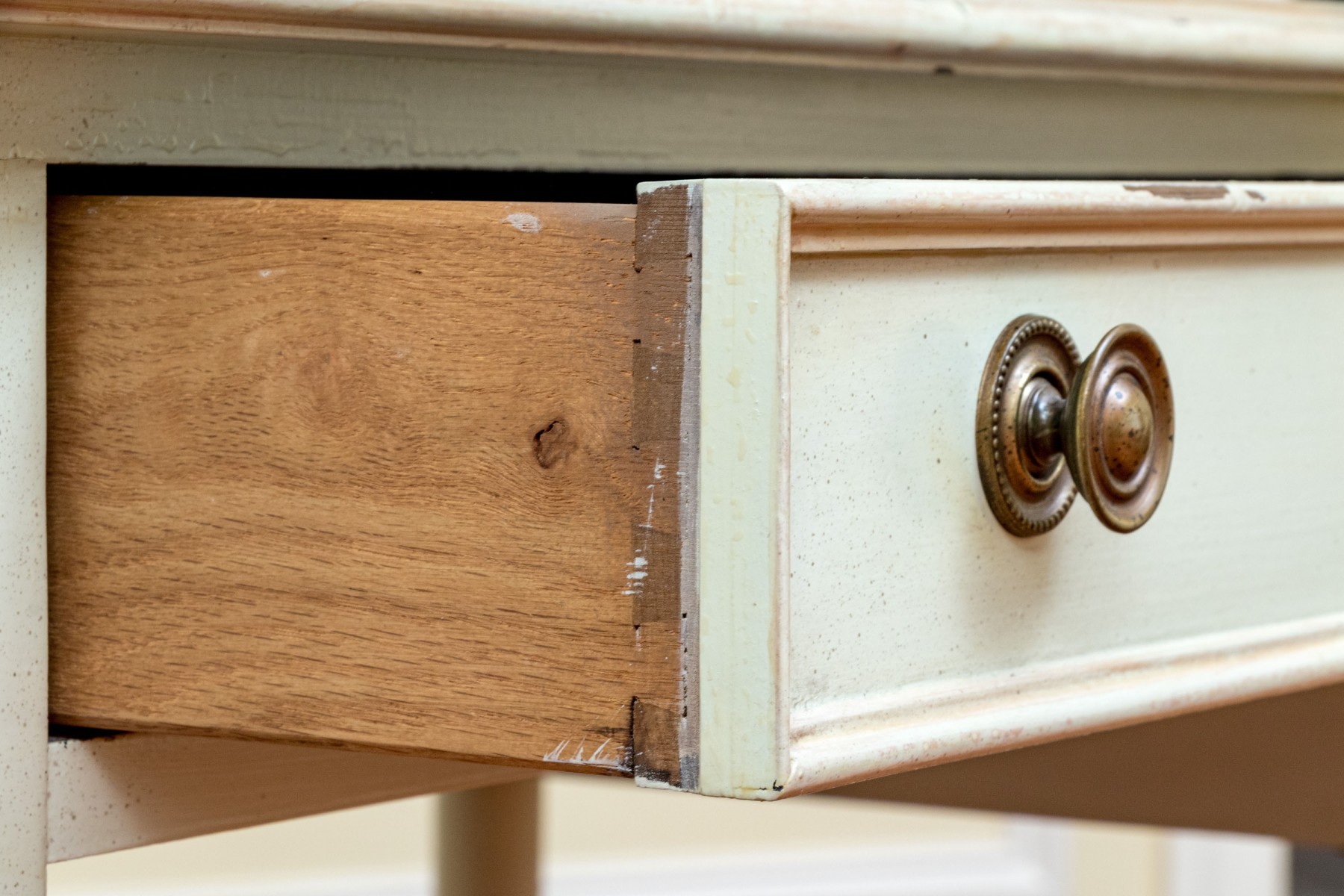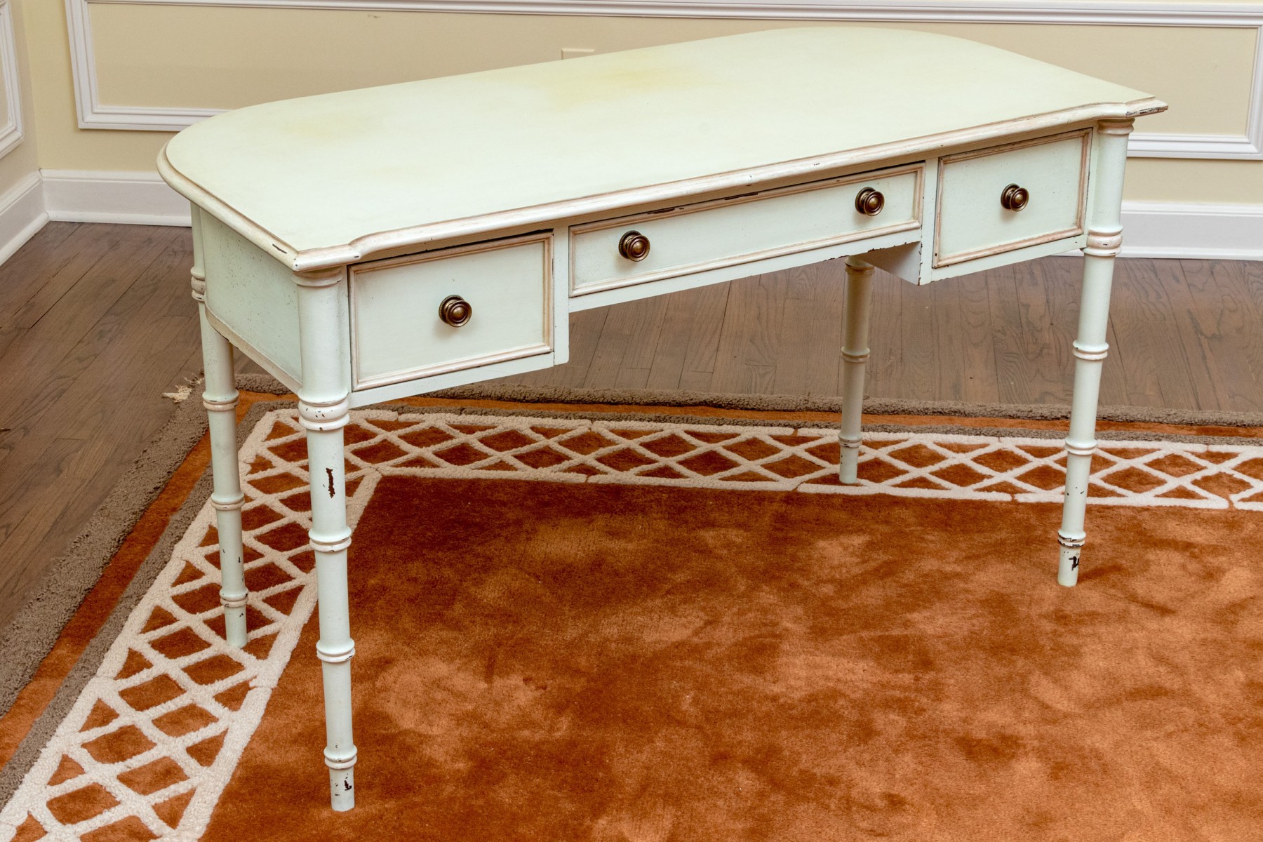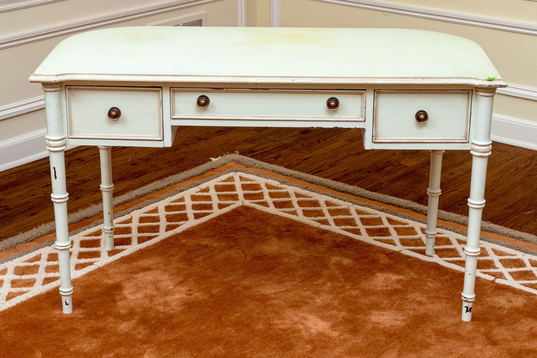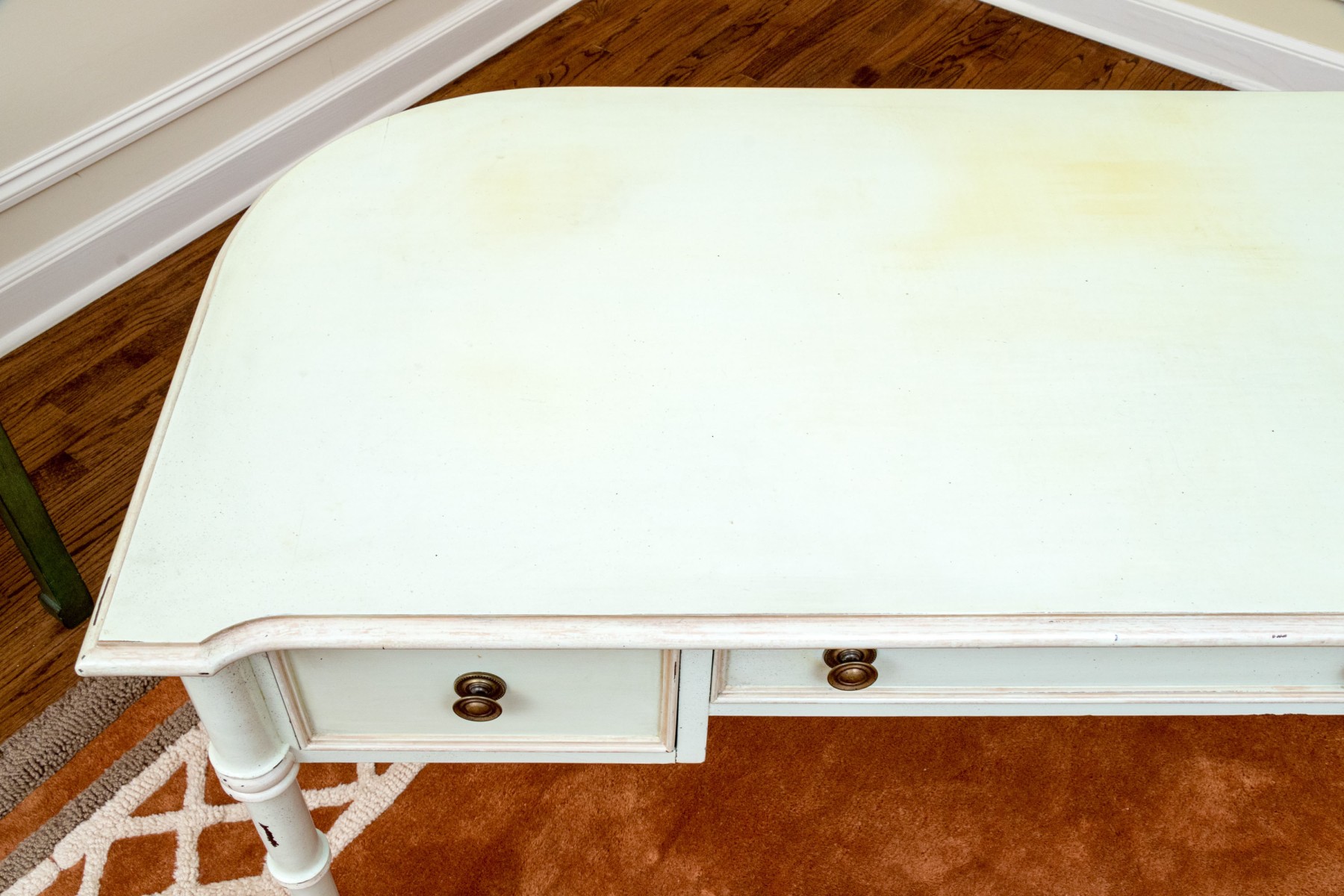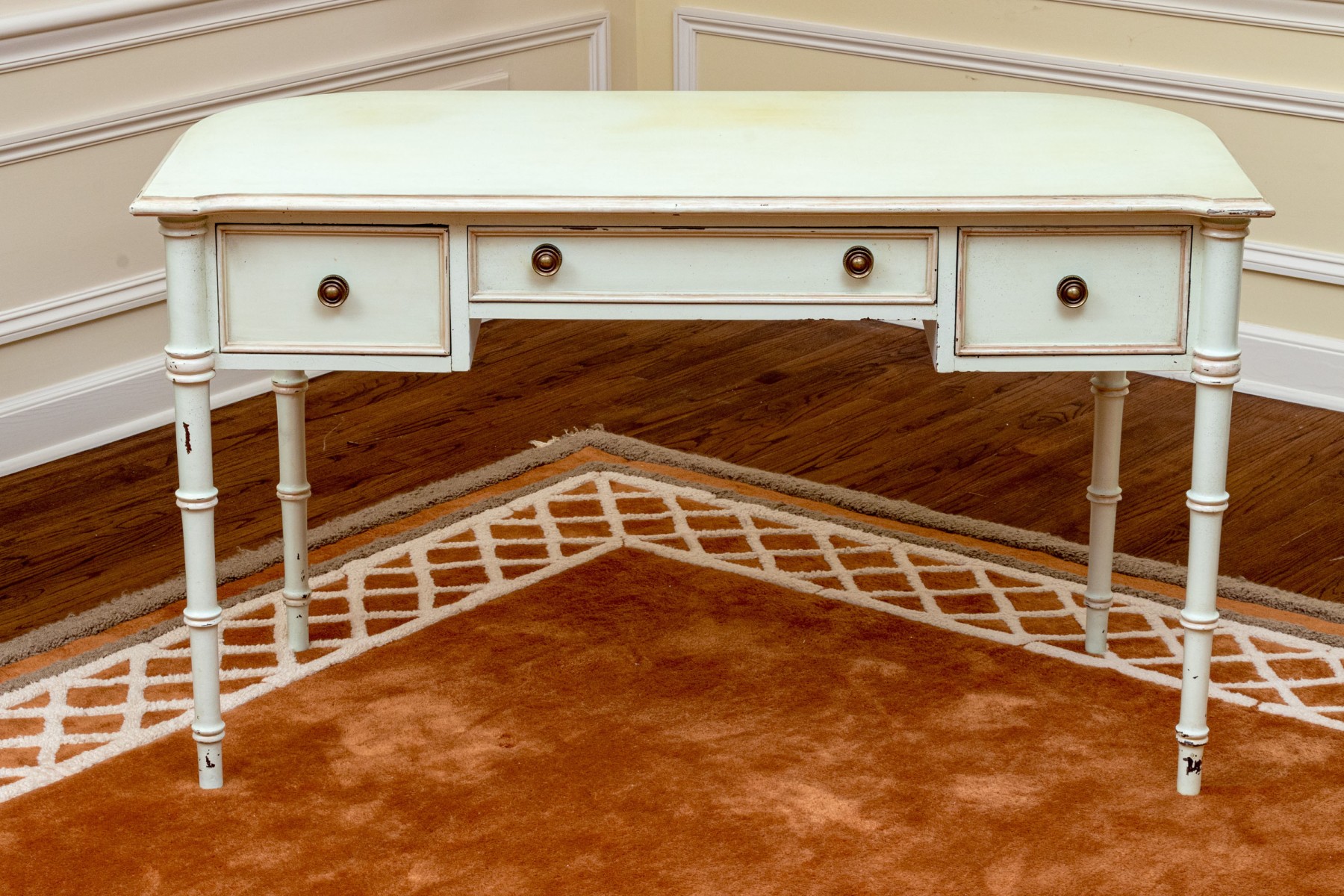 Some wear to the paint finish and chips to the trim edges but as a paint project or as is the desk presents well. Please review the photos as they are part of the condition report.