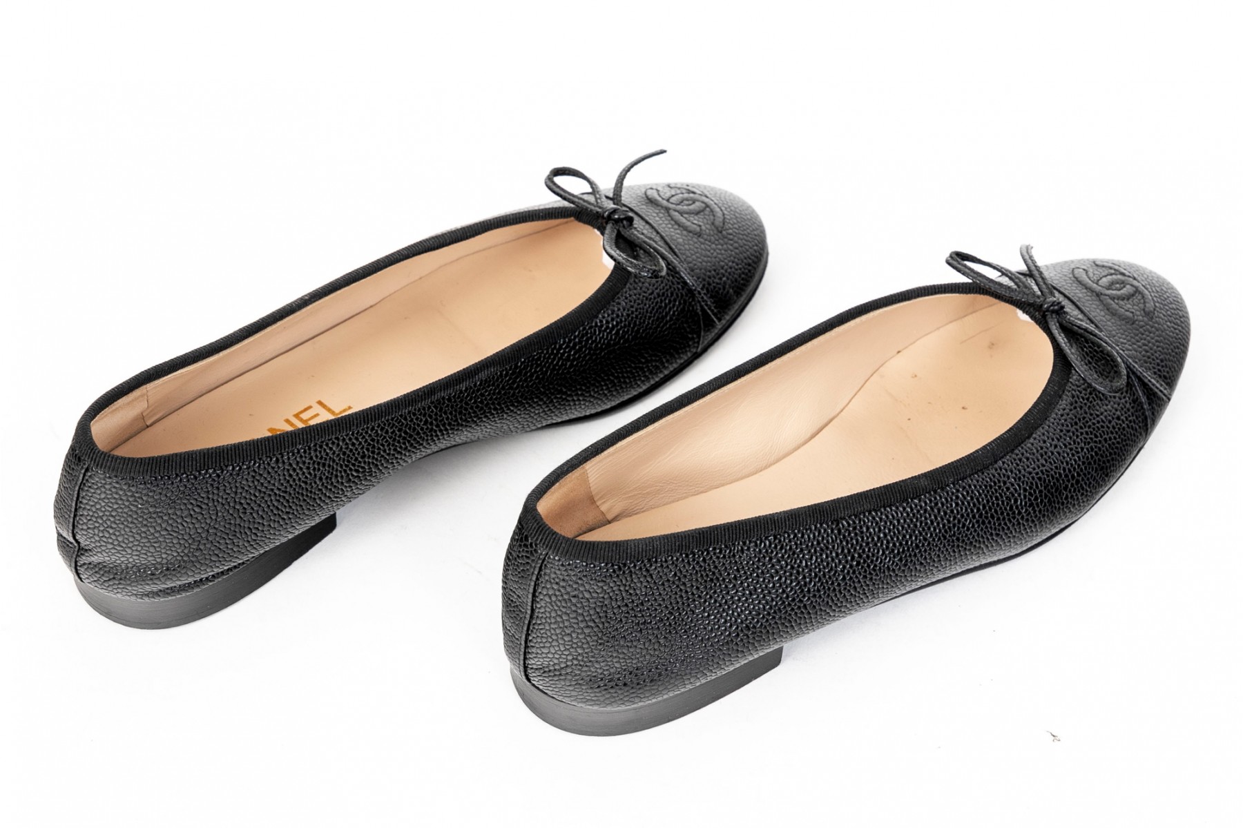 Chanel classic black leather ballet flats, size 37