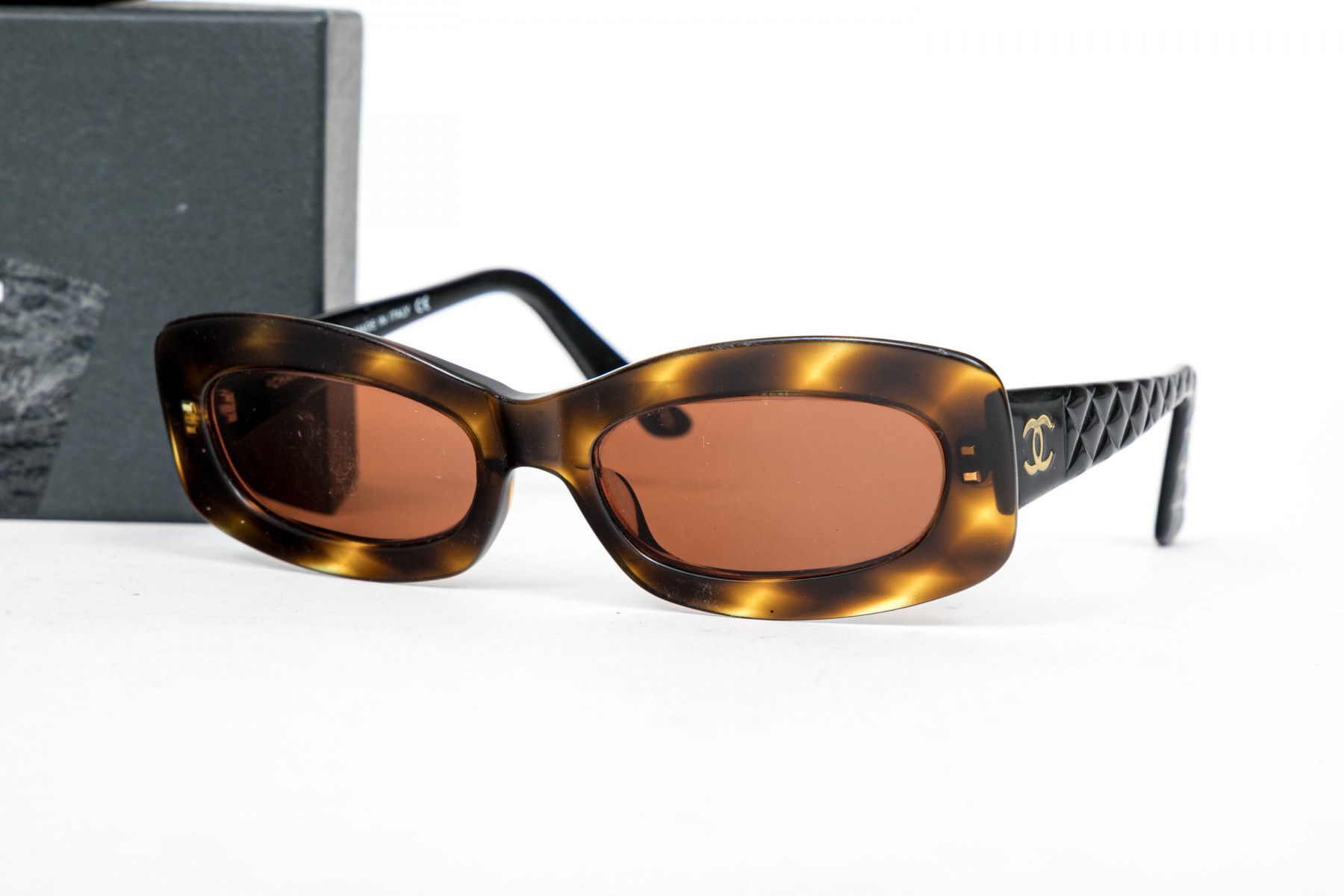 Chanel fabulous retro style acrylic sunglasses with black quilted frames