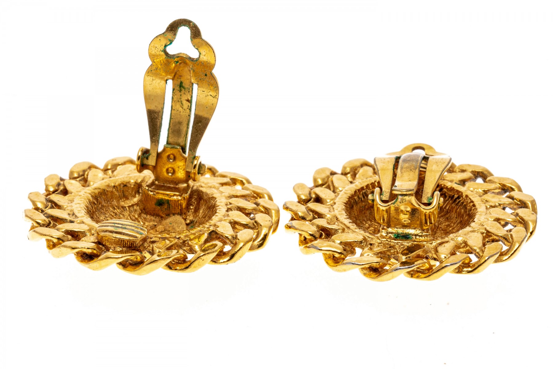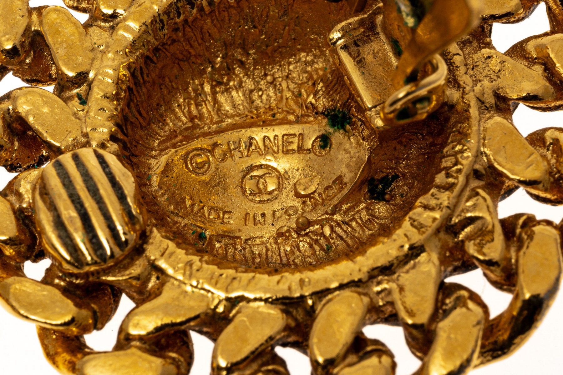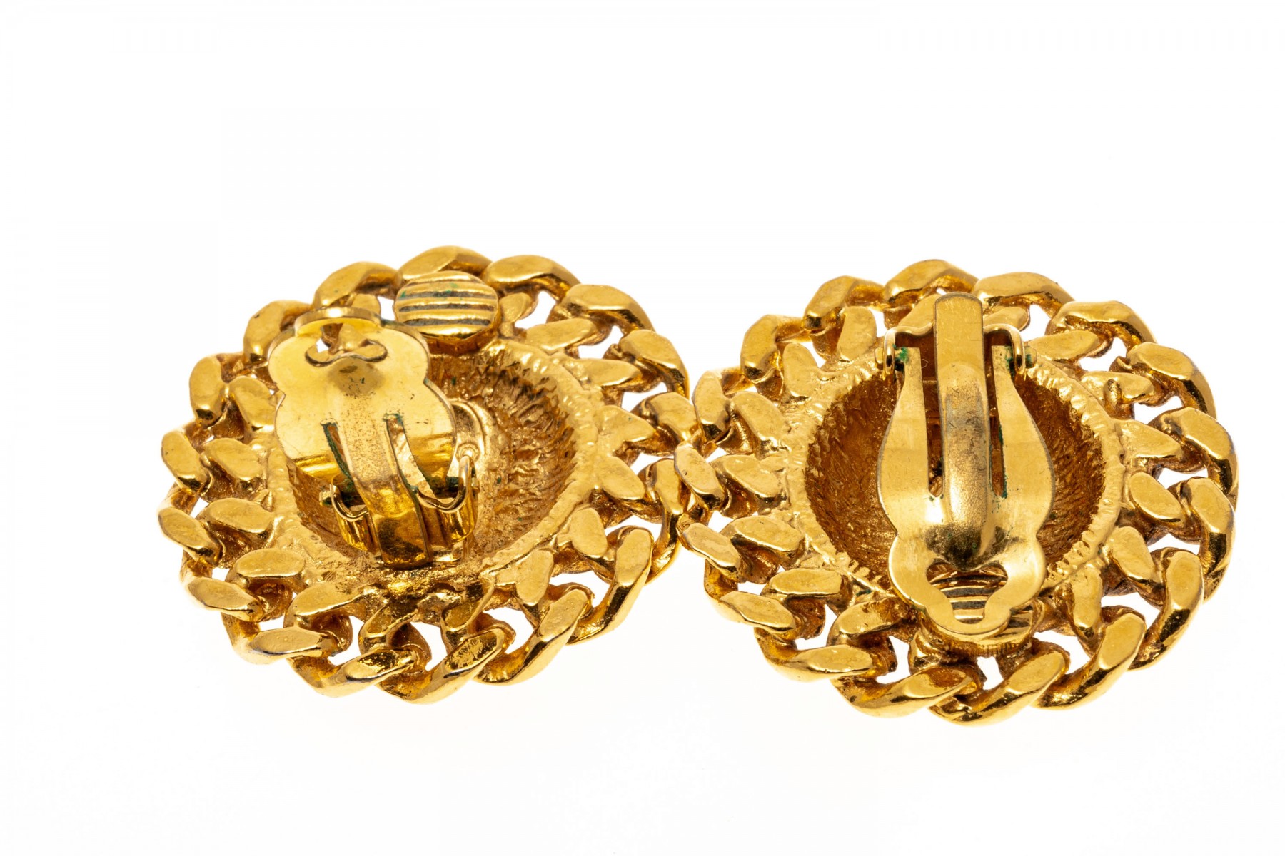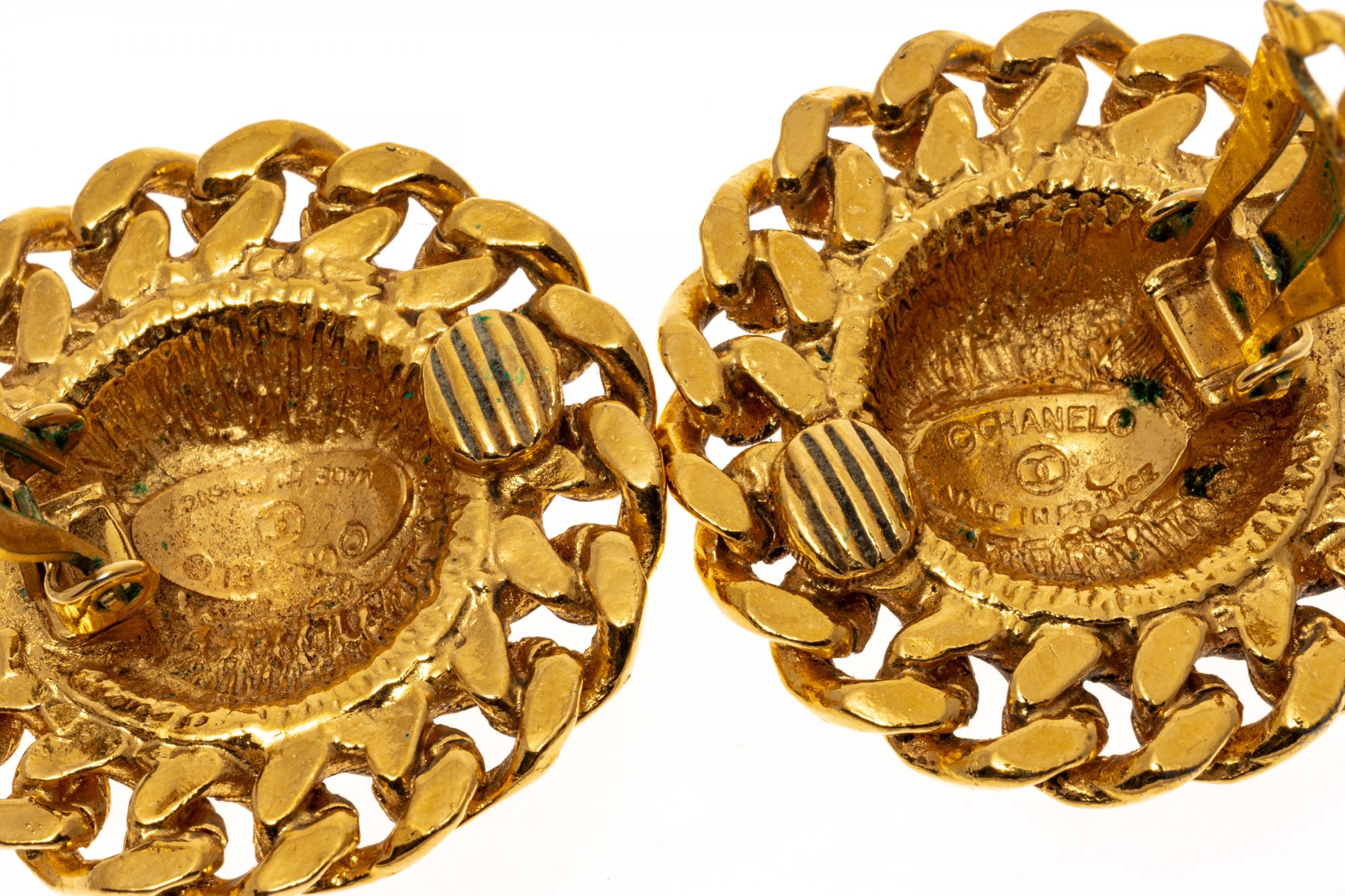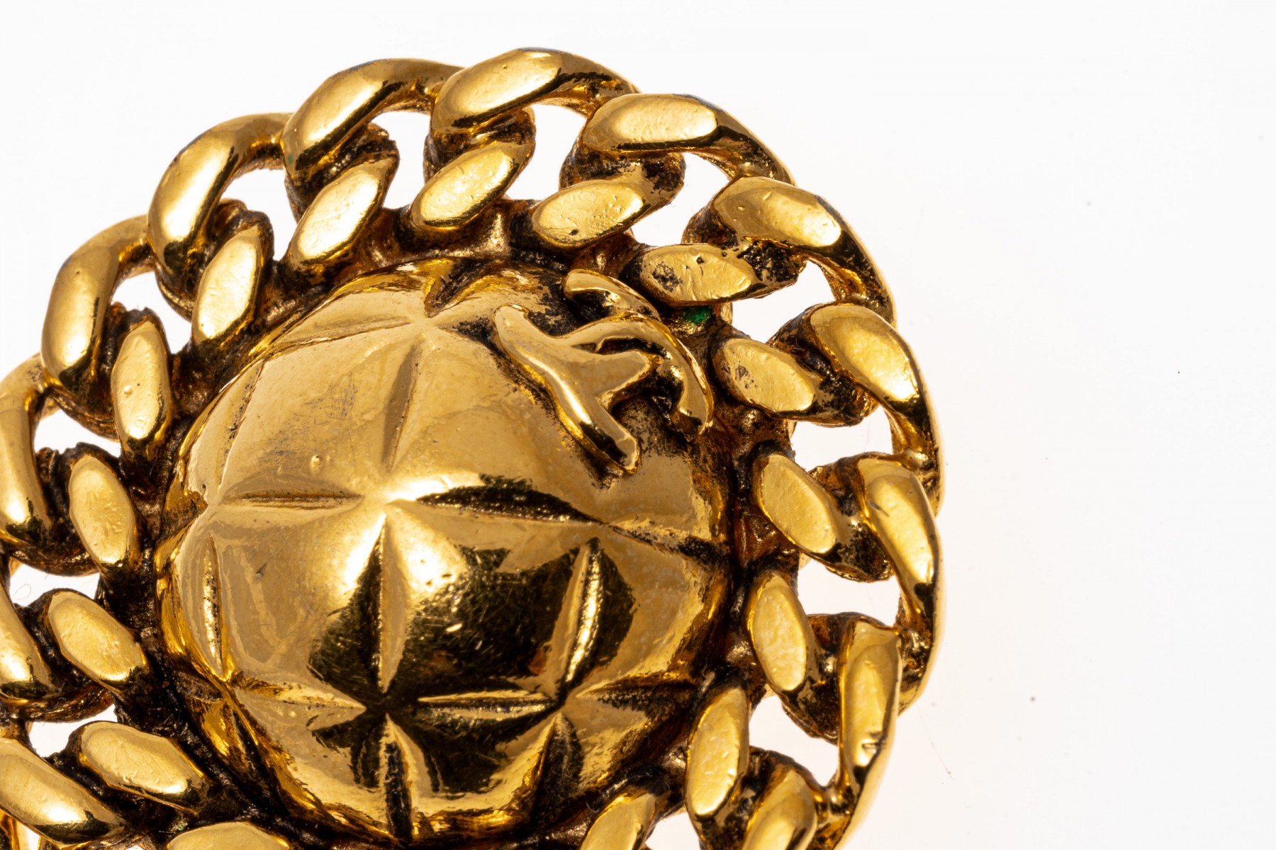 Chanel, France round quilted and chain motif gold tone costume earrings, clip on style backs