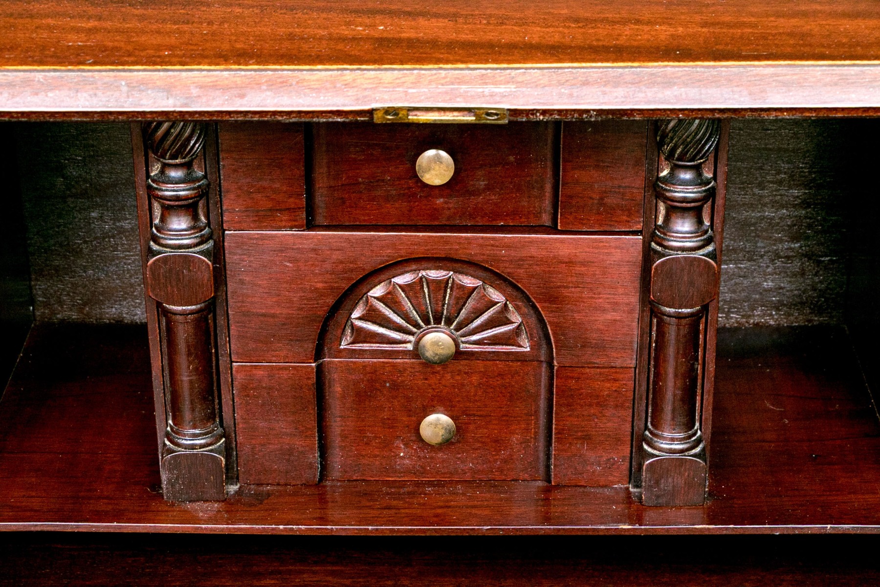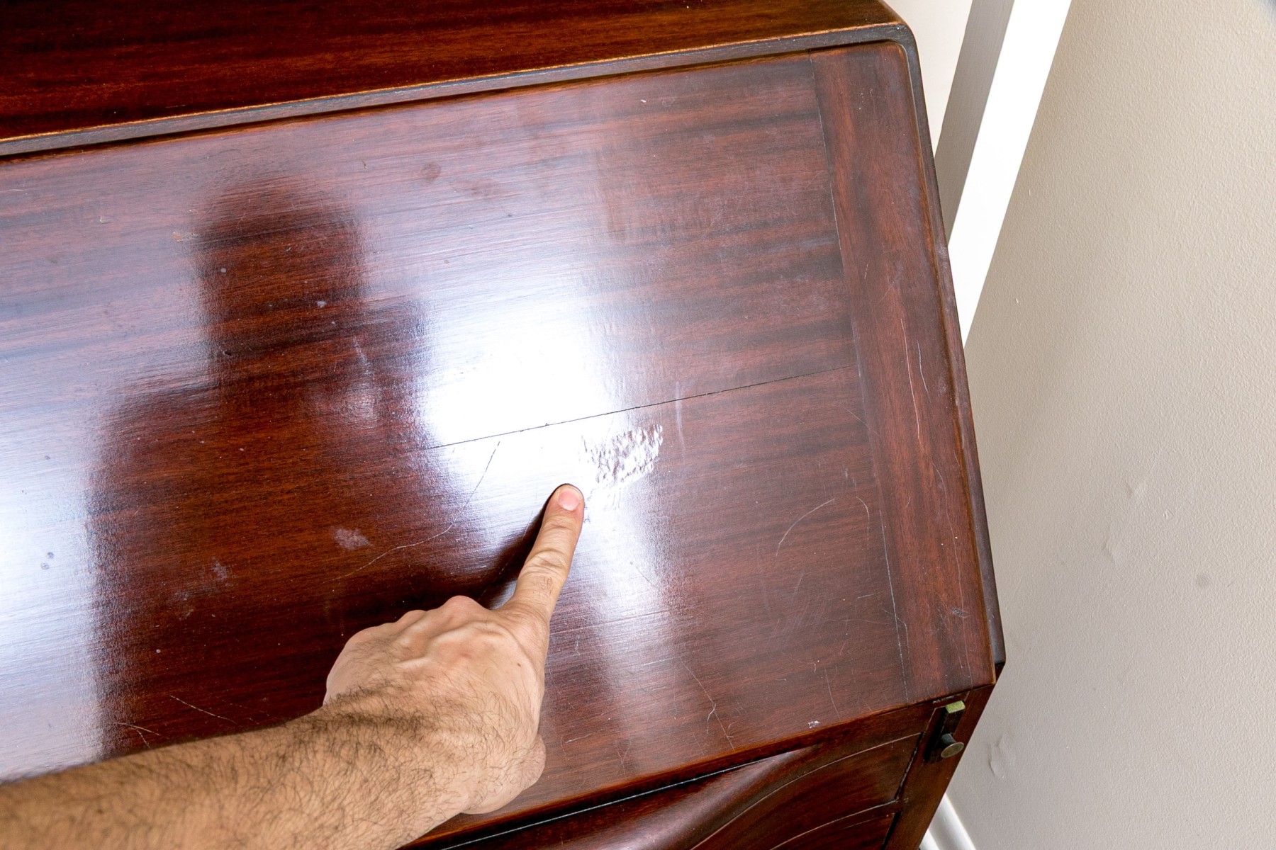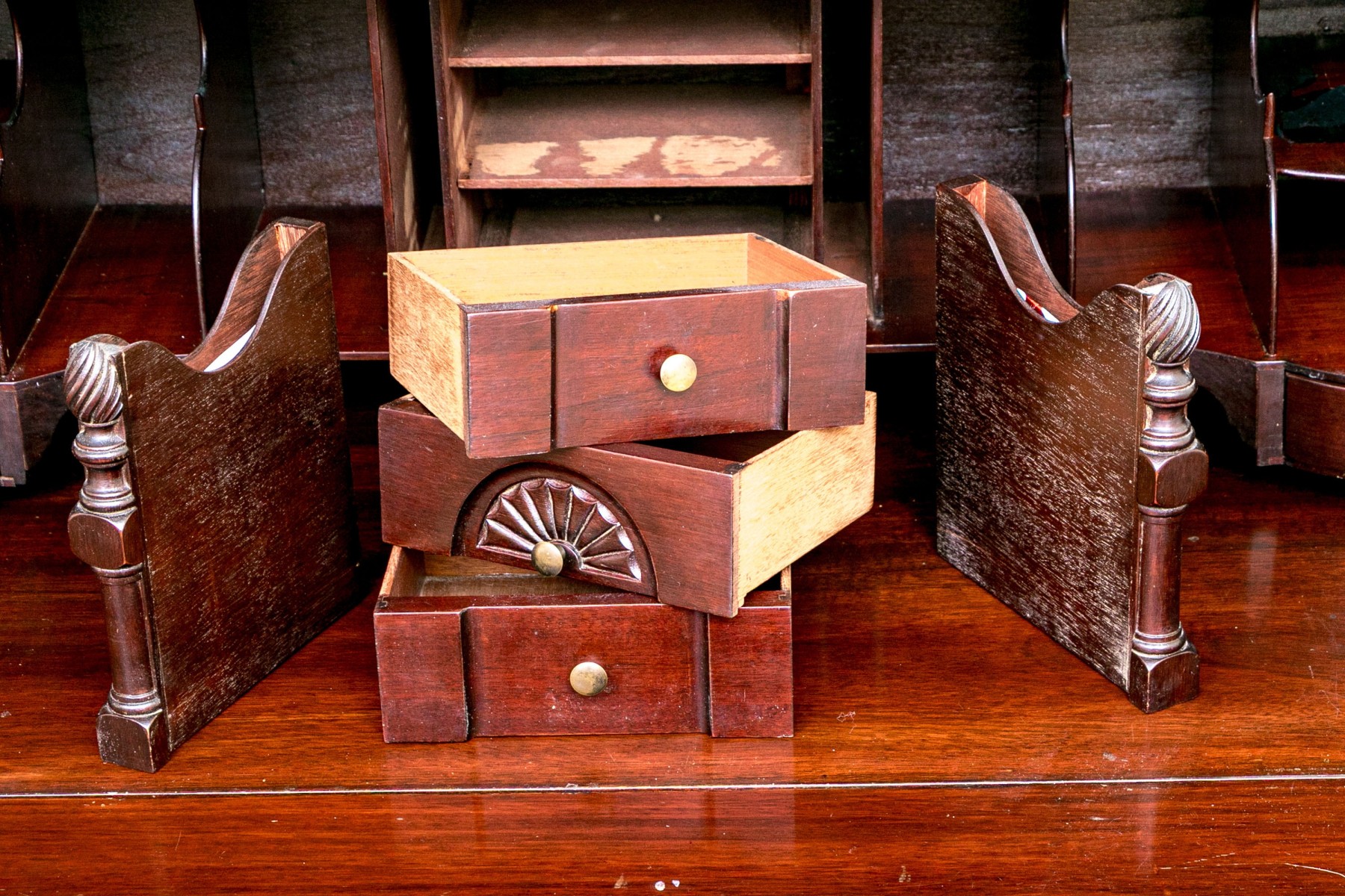 Chipping to a foot with scuffs and indented with slit to the slant front. Wear is commensurate with age and use but overall presents impressively well.