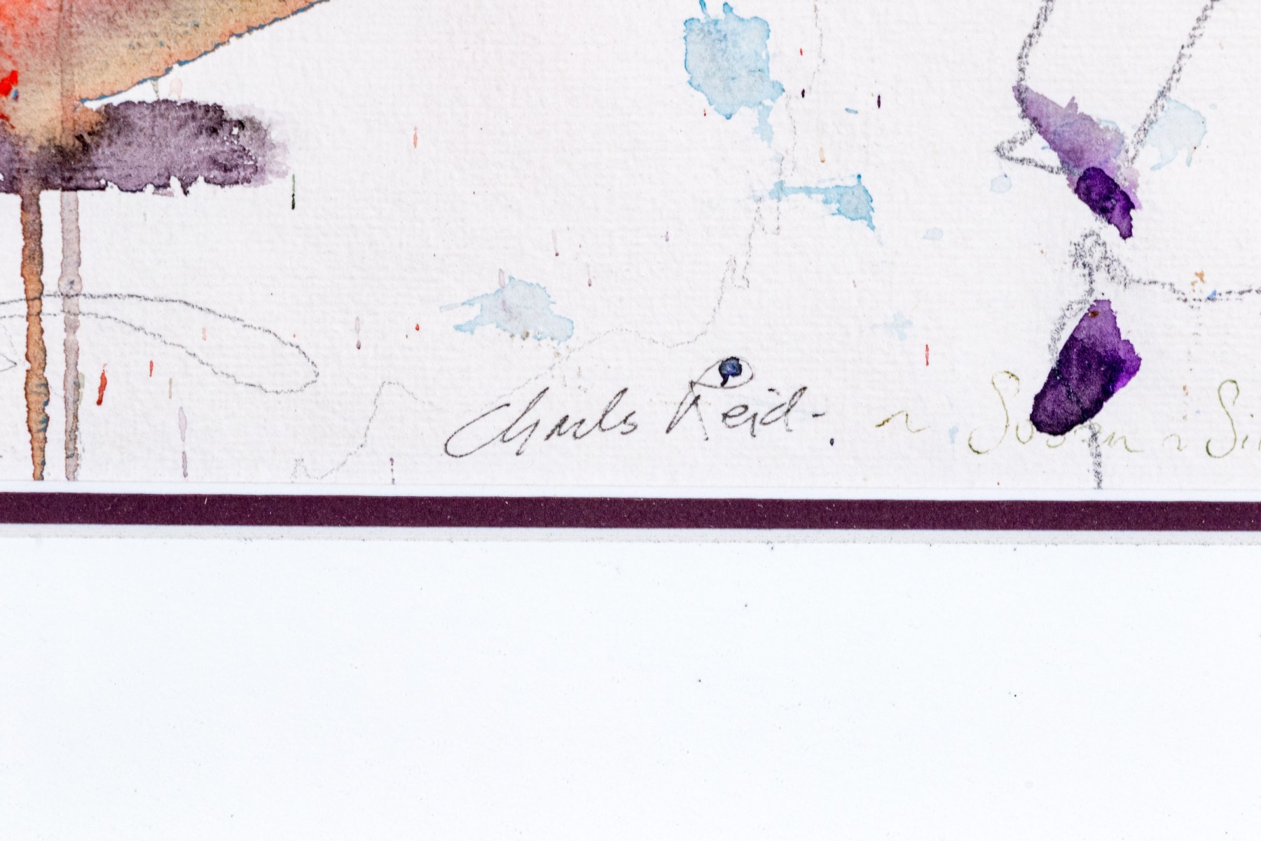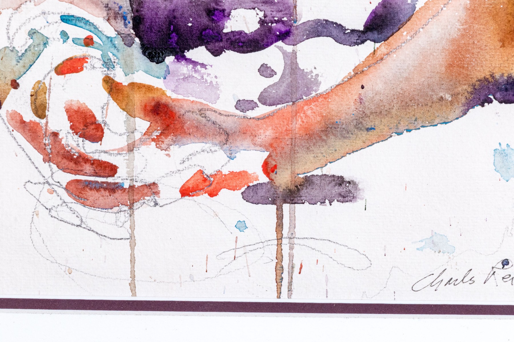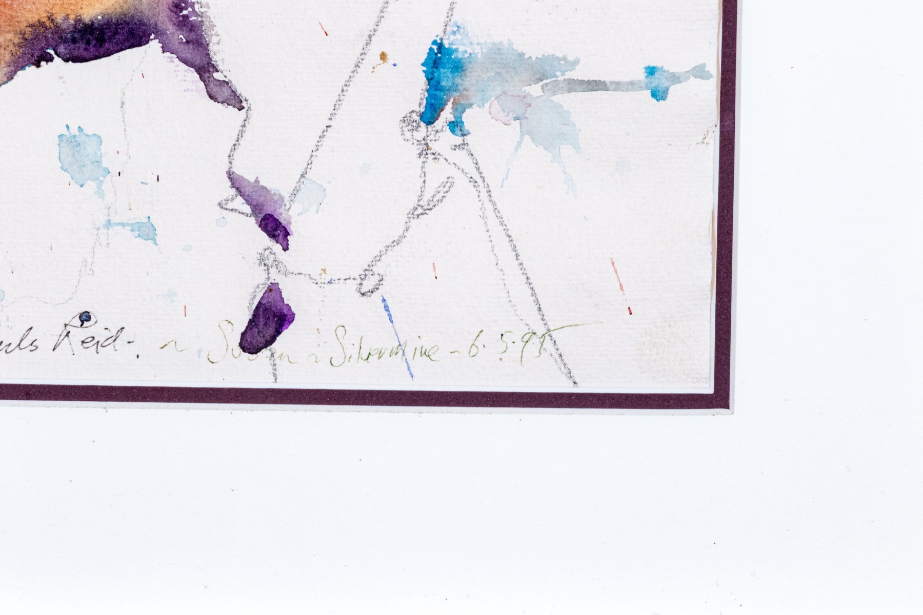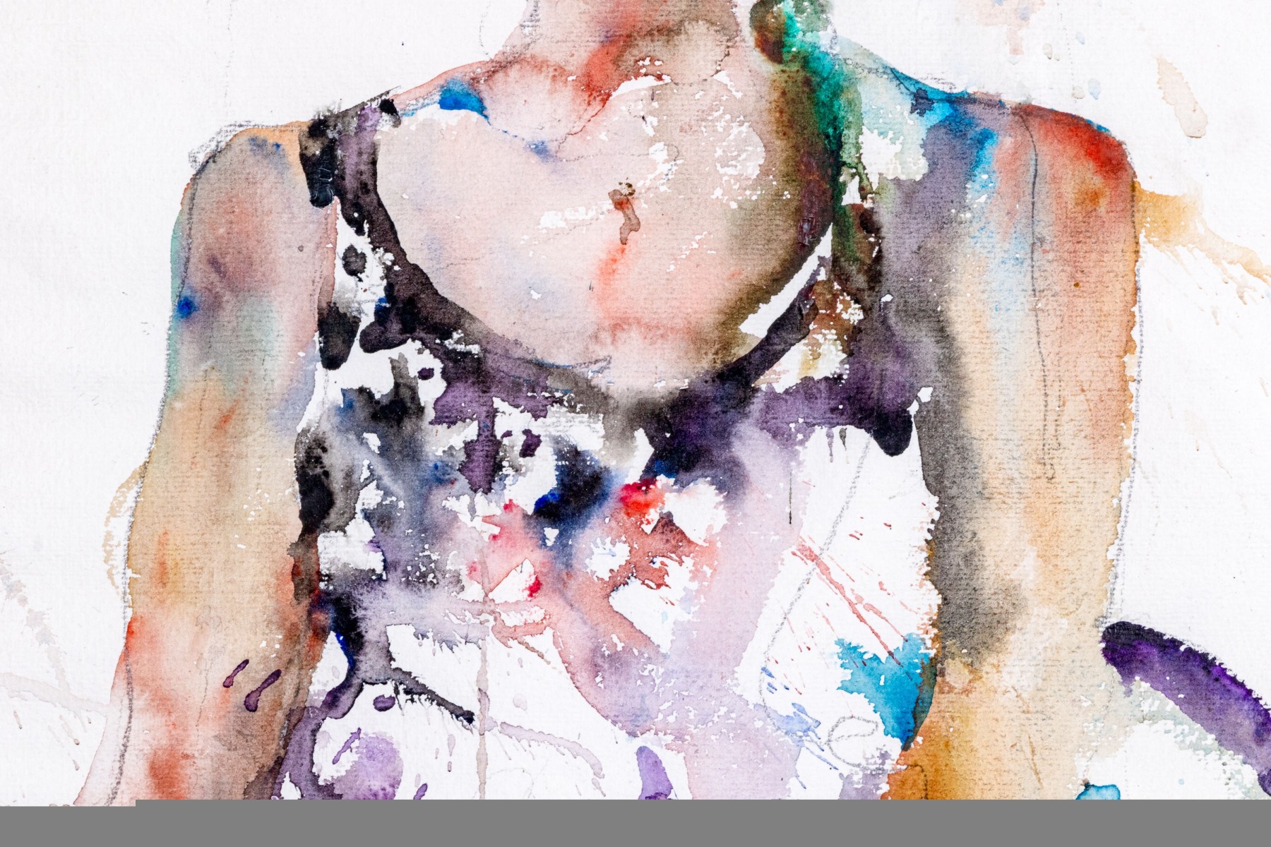 Charles Reid (American, 1937-2019) watercolor painting on paper portrait of Elizabeth Meissner Gaynor (American [Southport, CT], 1928-2024) seated while wearing a purple tank top. Beautifully rendered with great expressionist detail. Signed lower center and marked Susan Silvermine 6.5.95 lower right.
