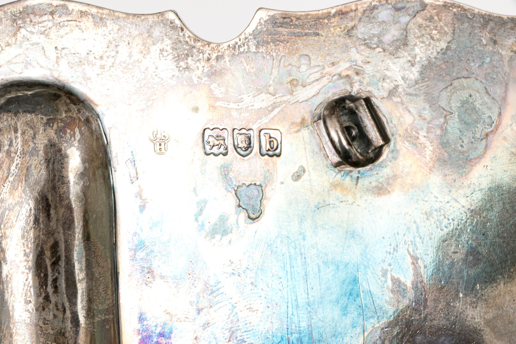 Lids of the bottles hallmarked as is the stand underneath.
