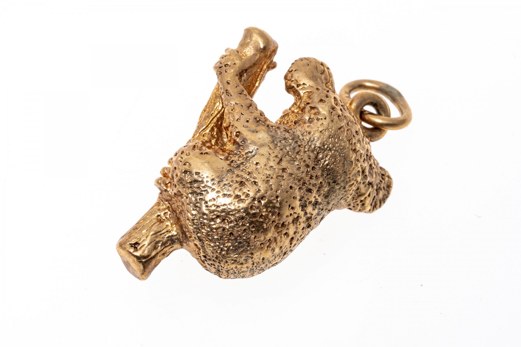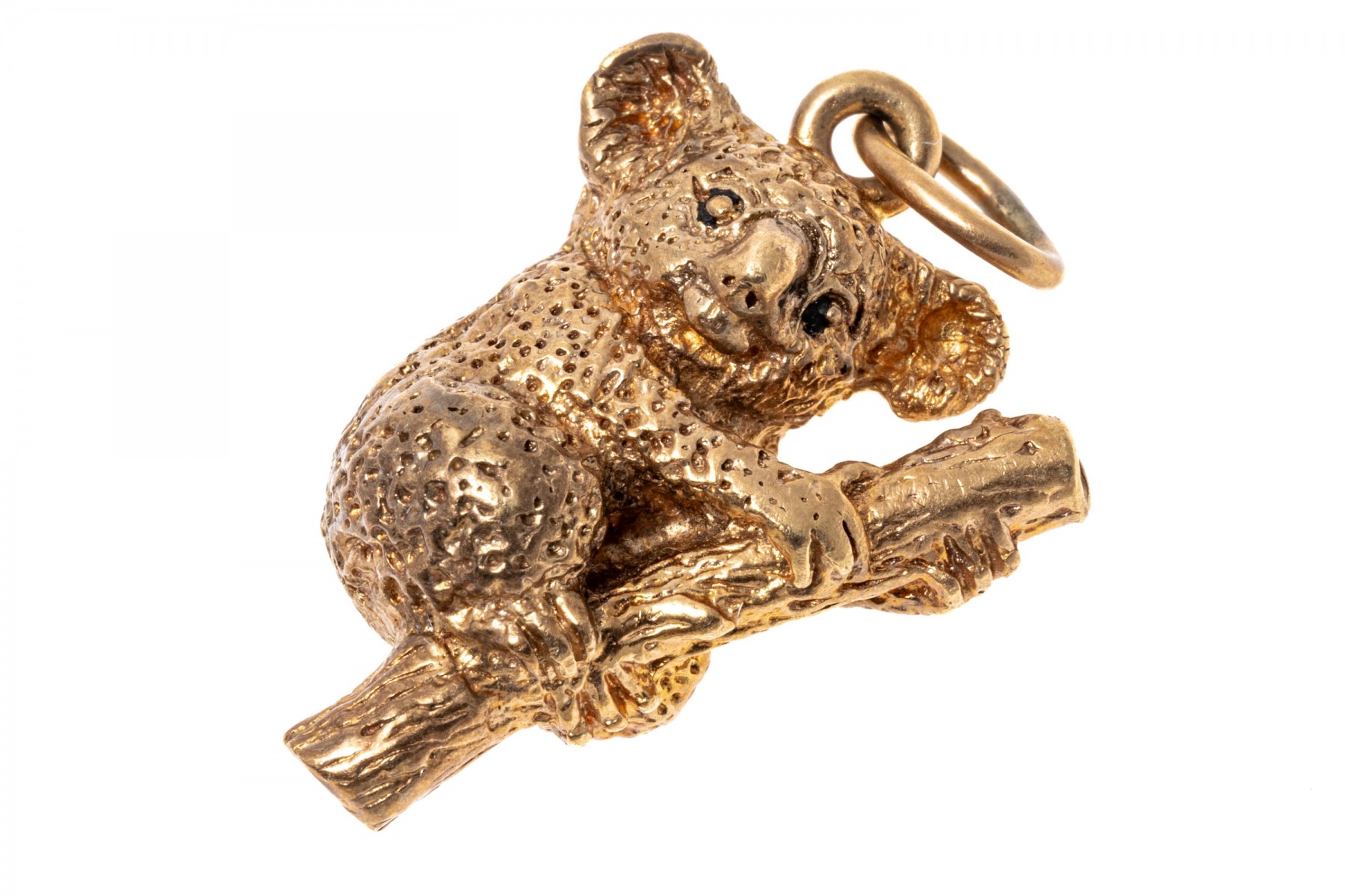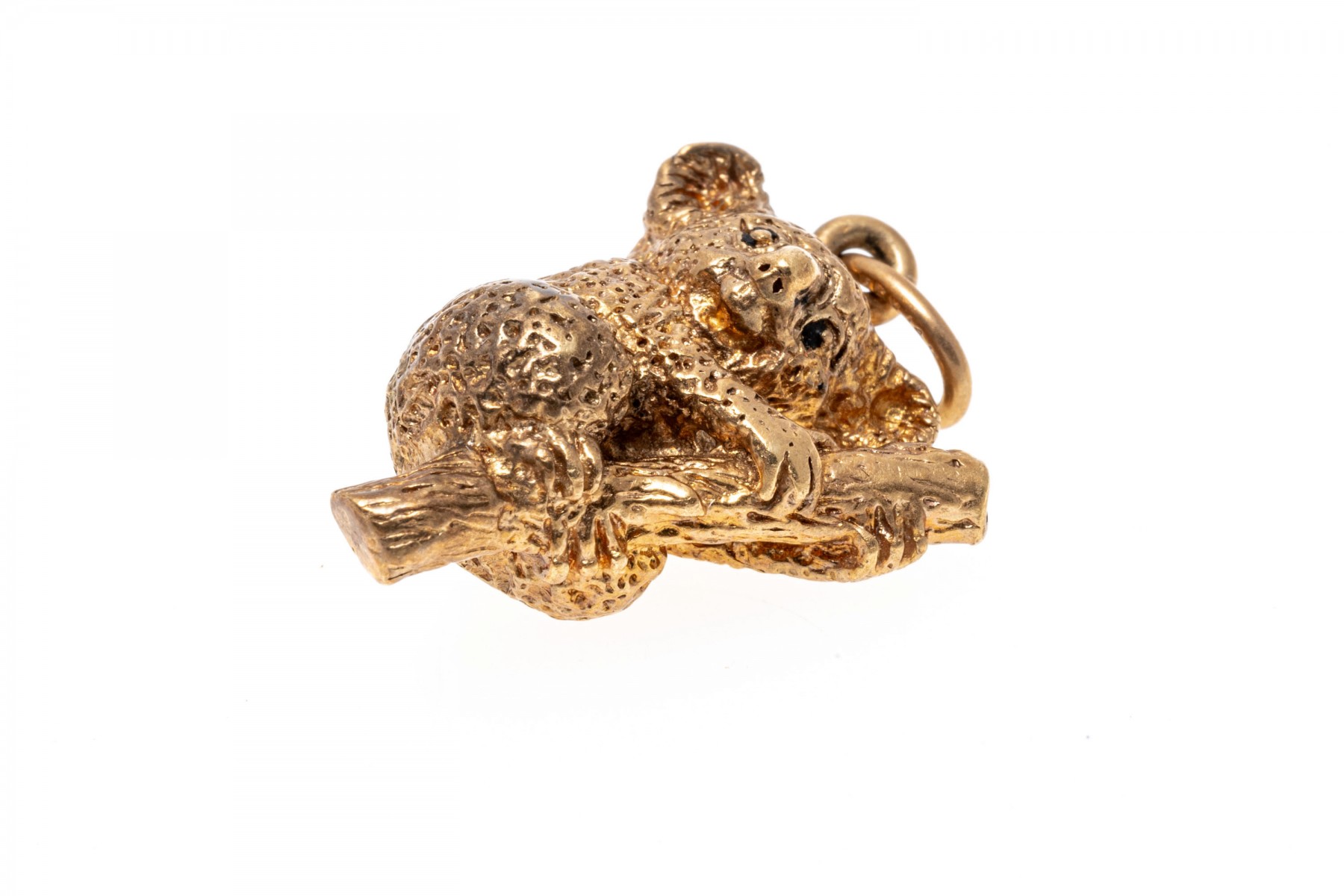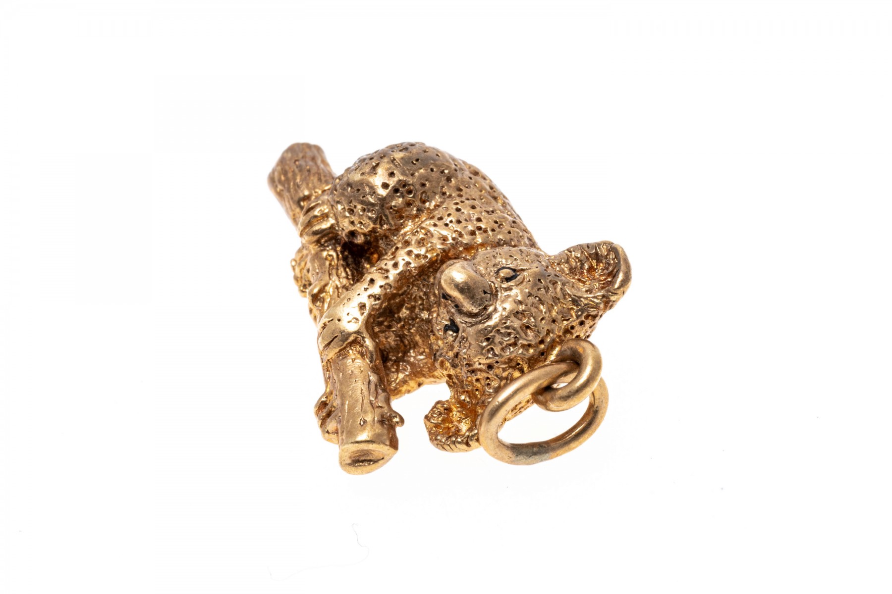 This charming 14K yellow gold pendant features a koala bear hanging on to a bamboo branch. Textured finish.