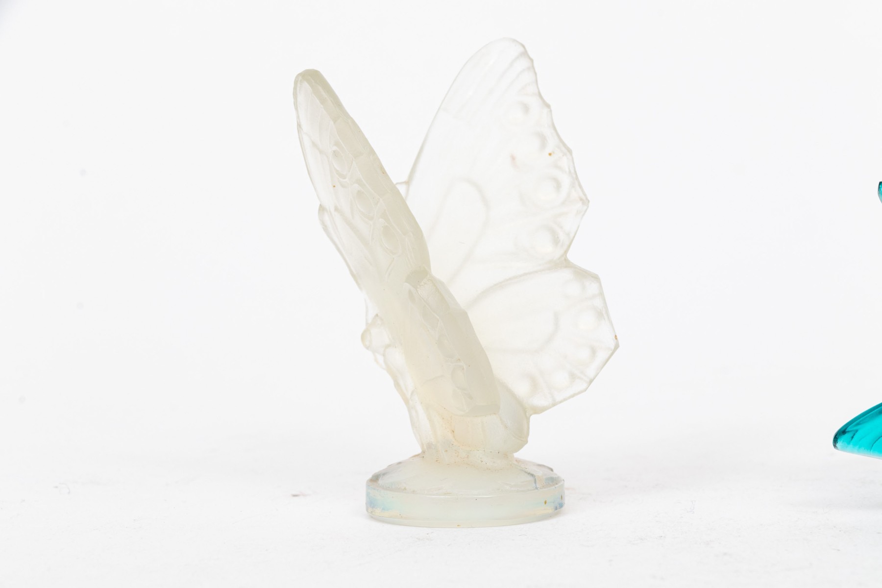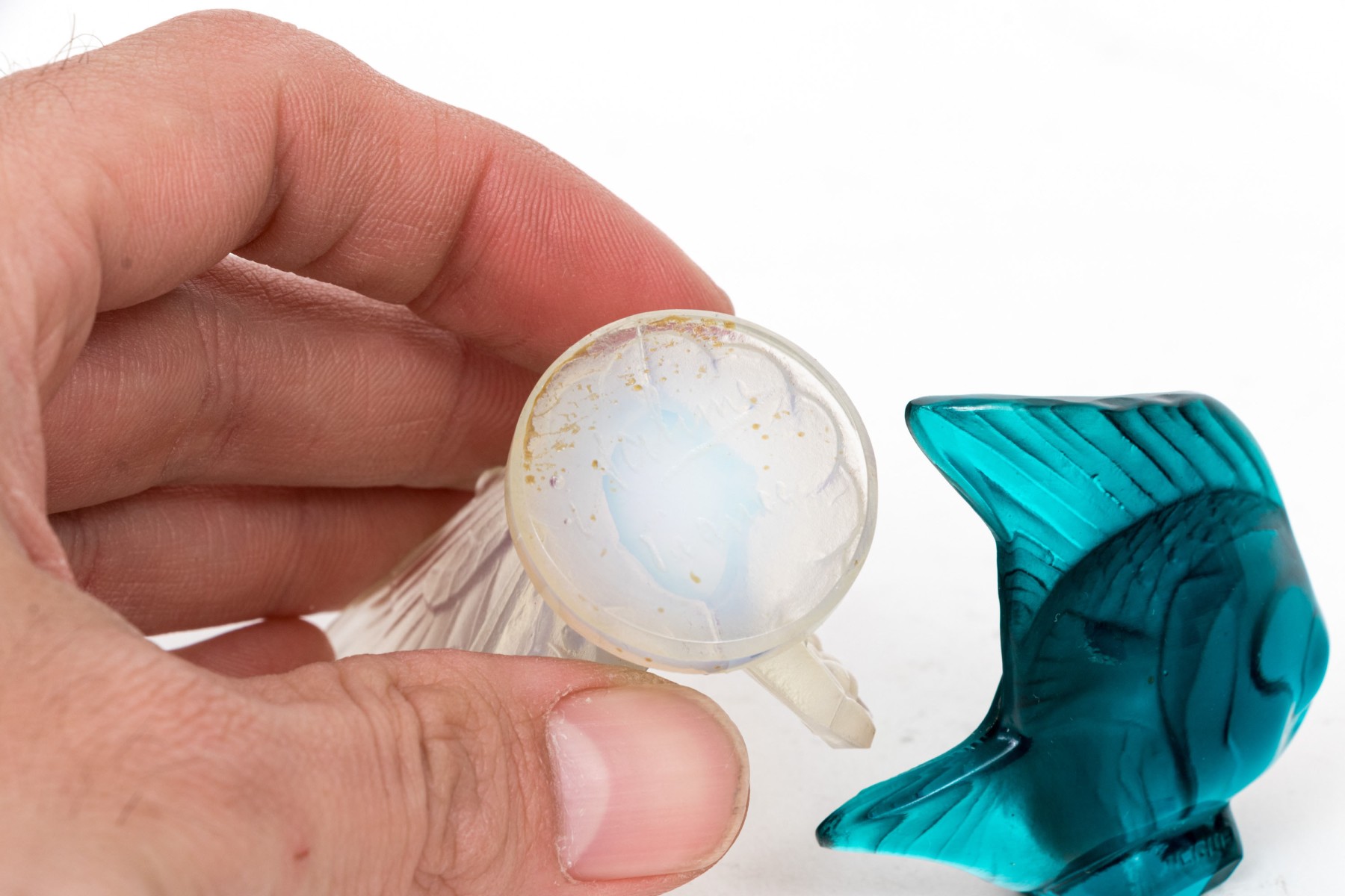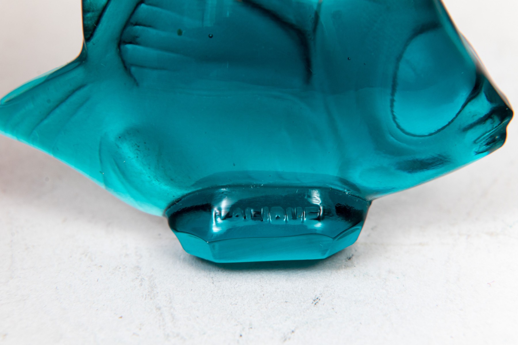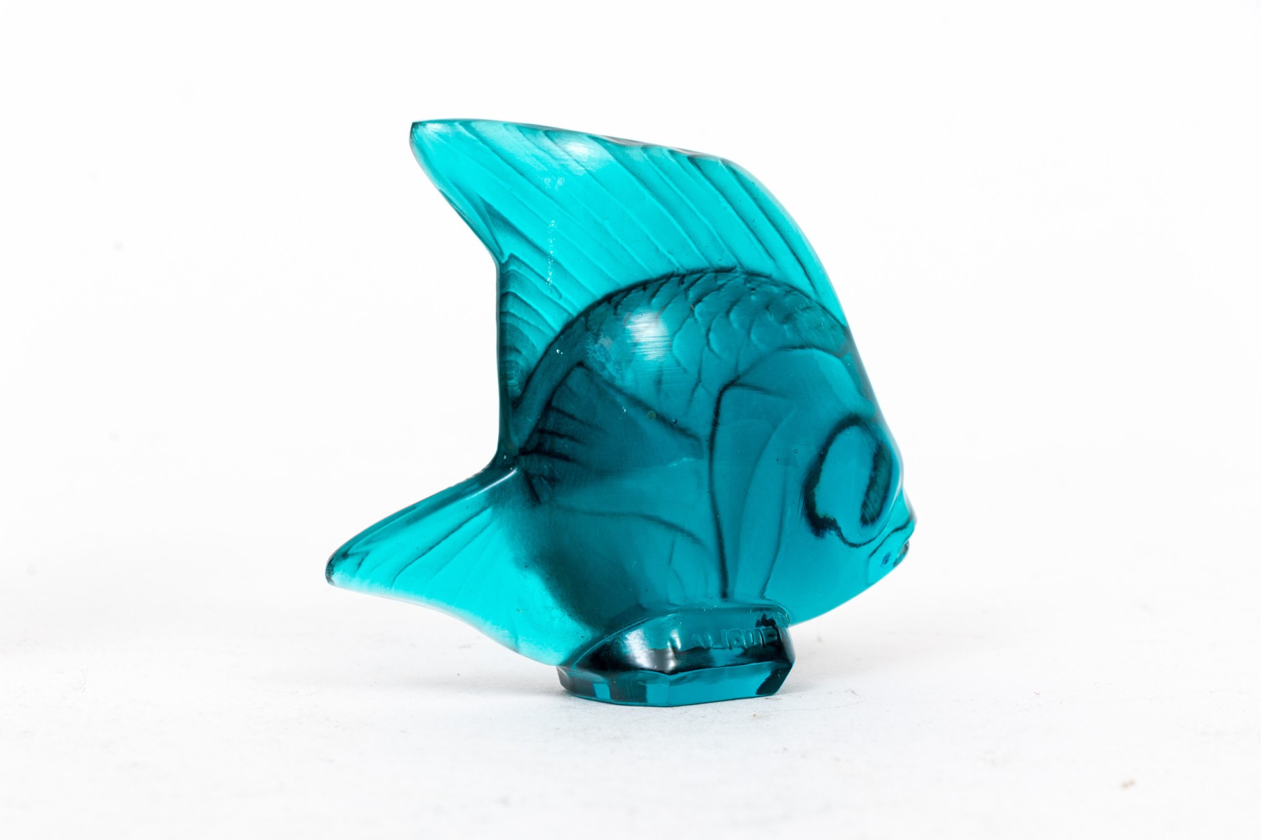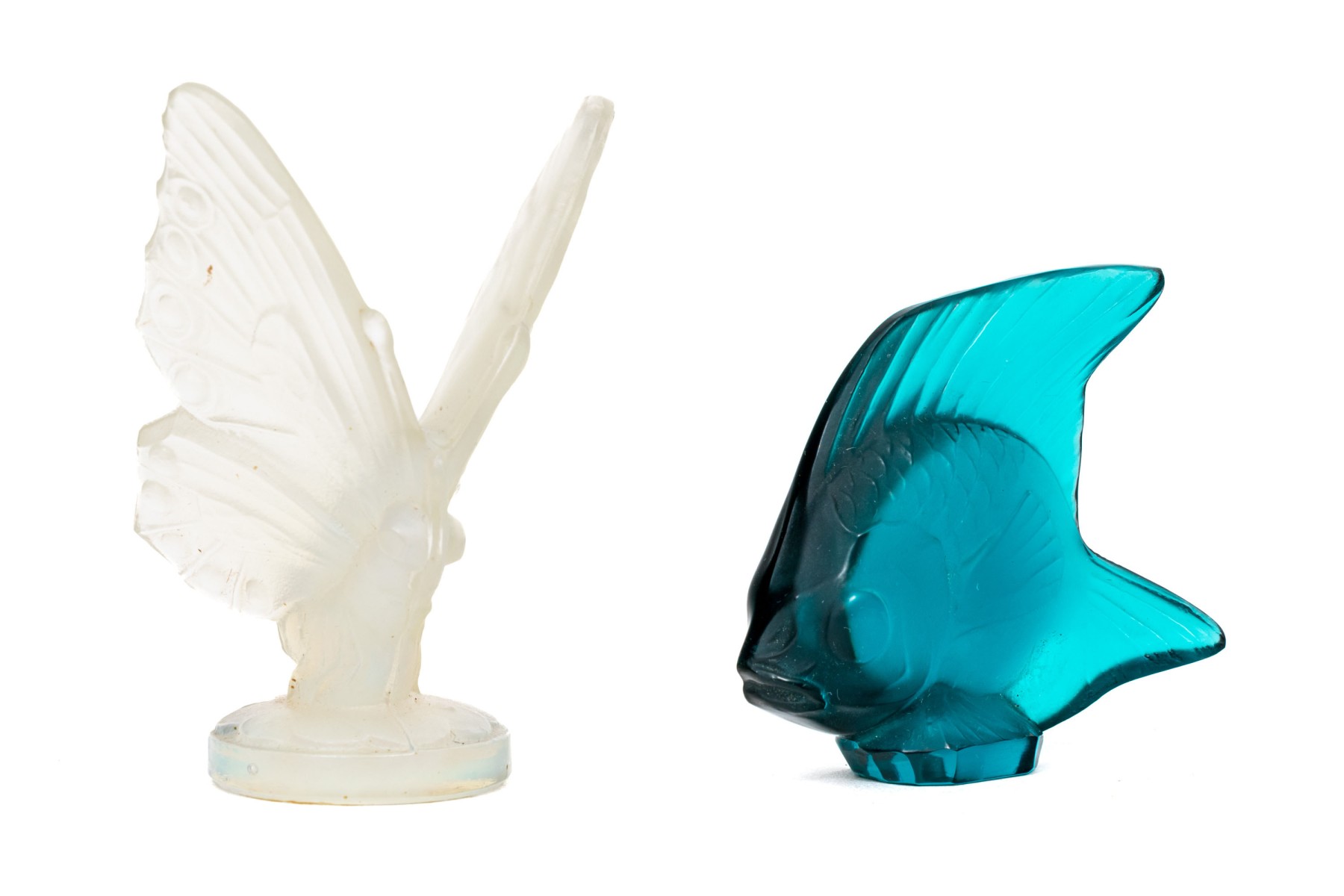 Charming blue green Lalique fish, boxed, with Sabino iridescent glass butterfly