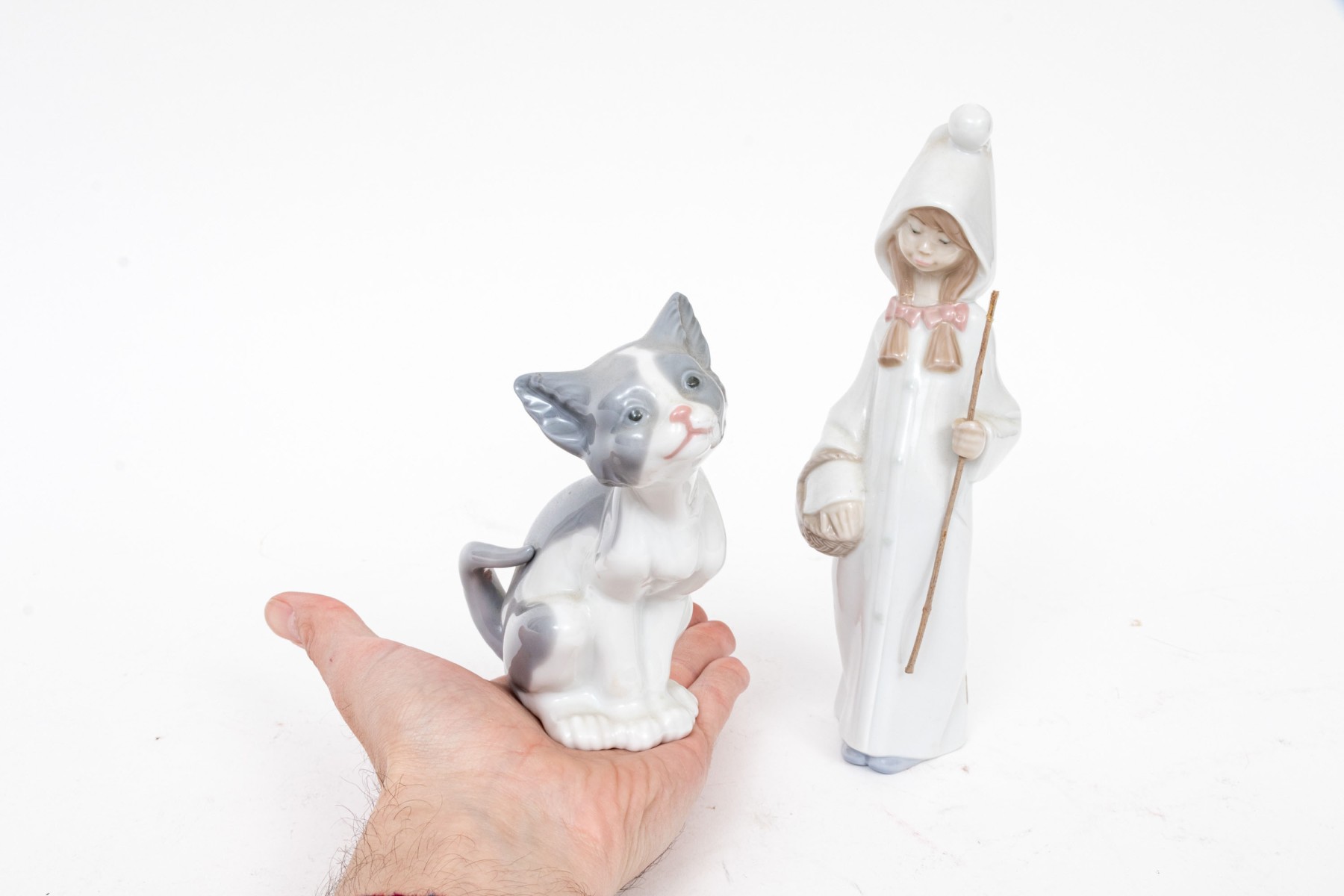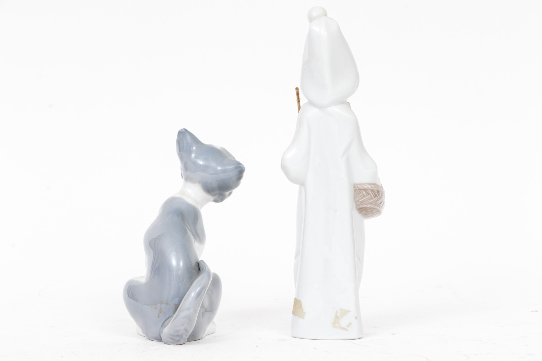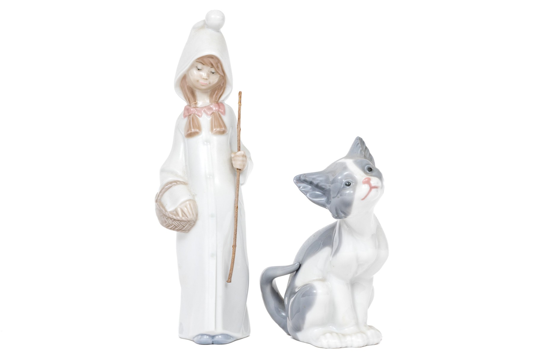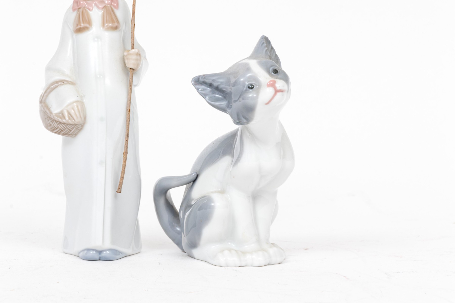 Charming pair of Lladro figurines, including a winsome cat and shepherdess