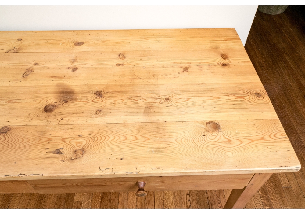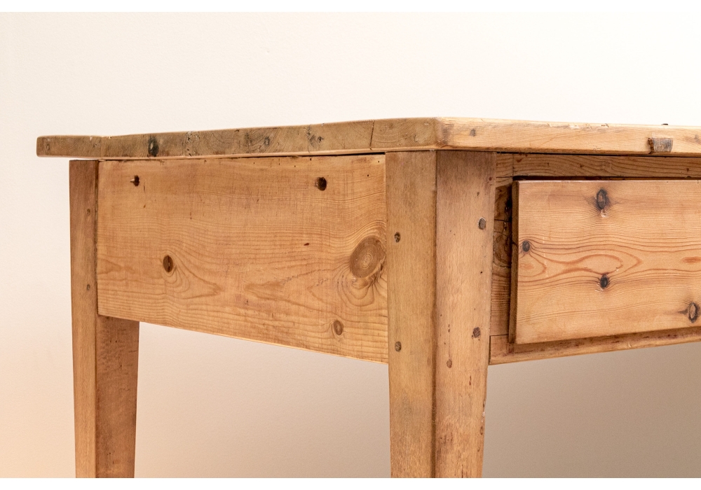Raised on four square, tapered legs, the provincial style pine table presents handsomely with rustic charm.