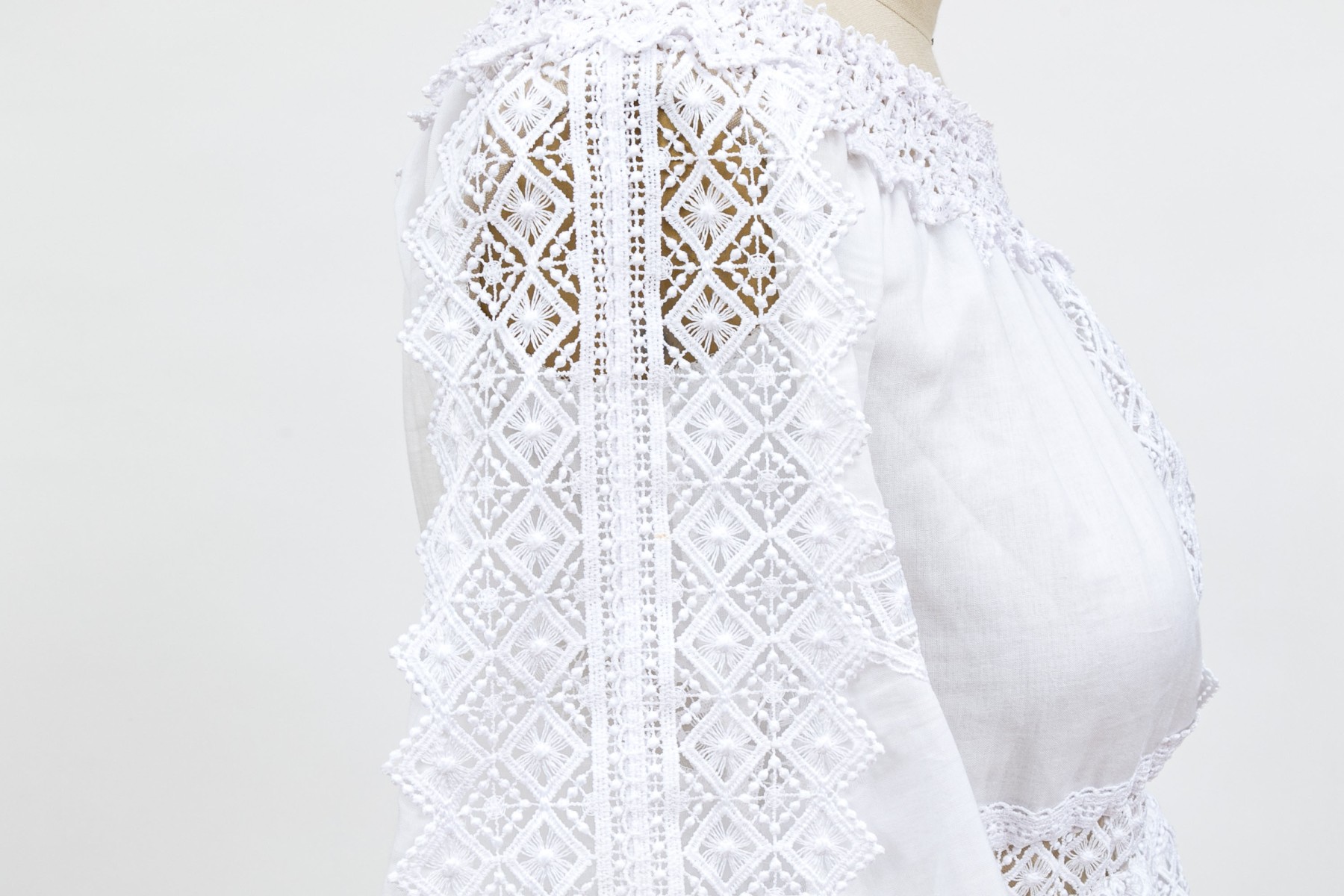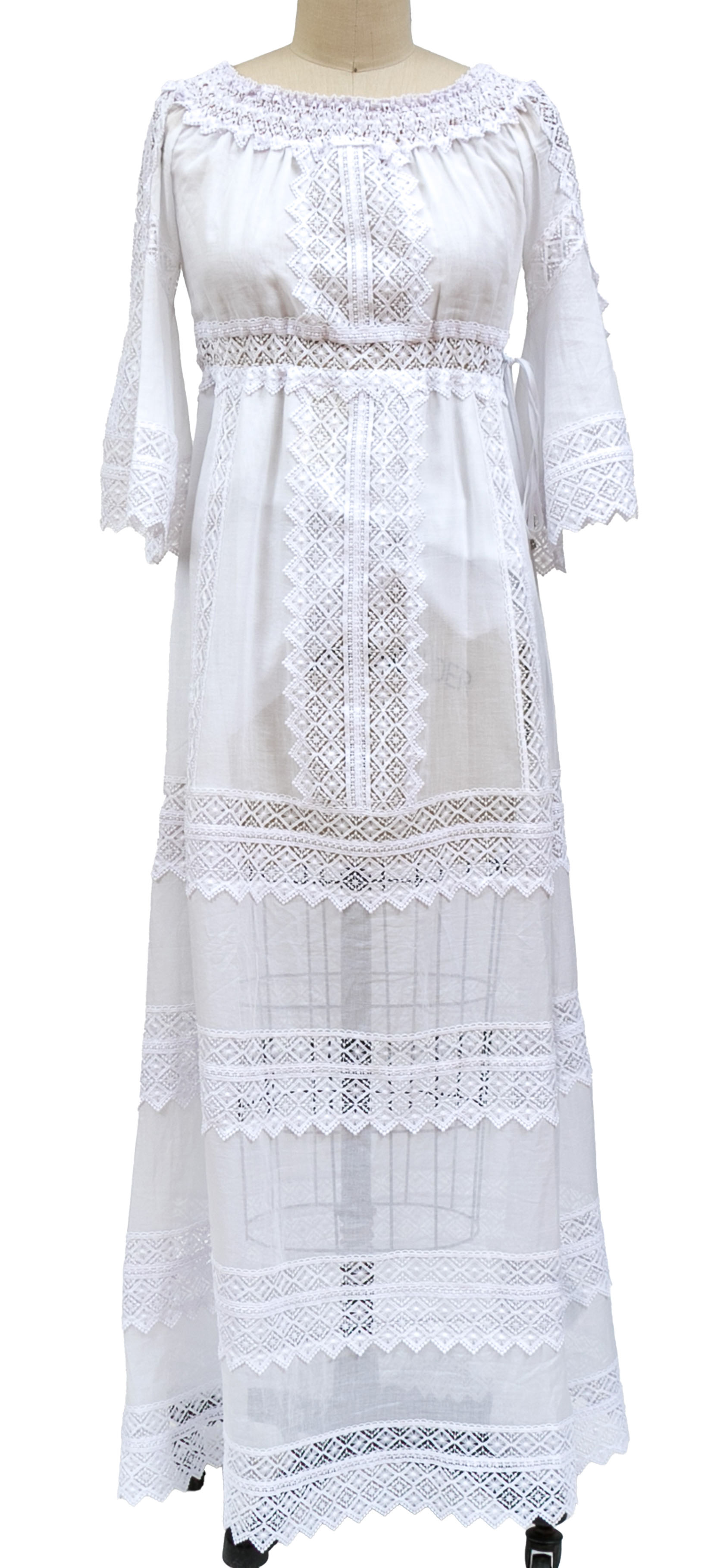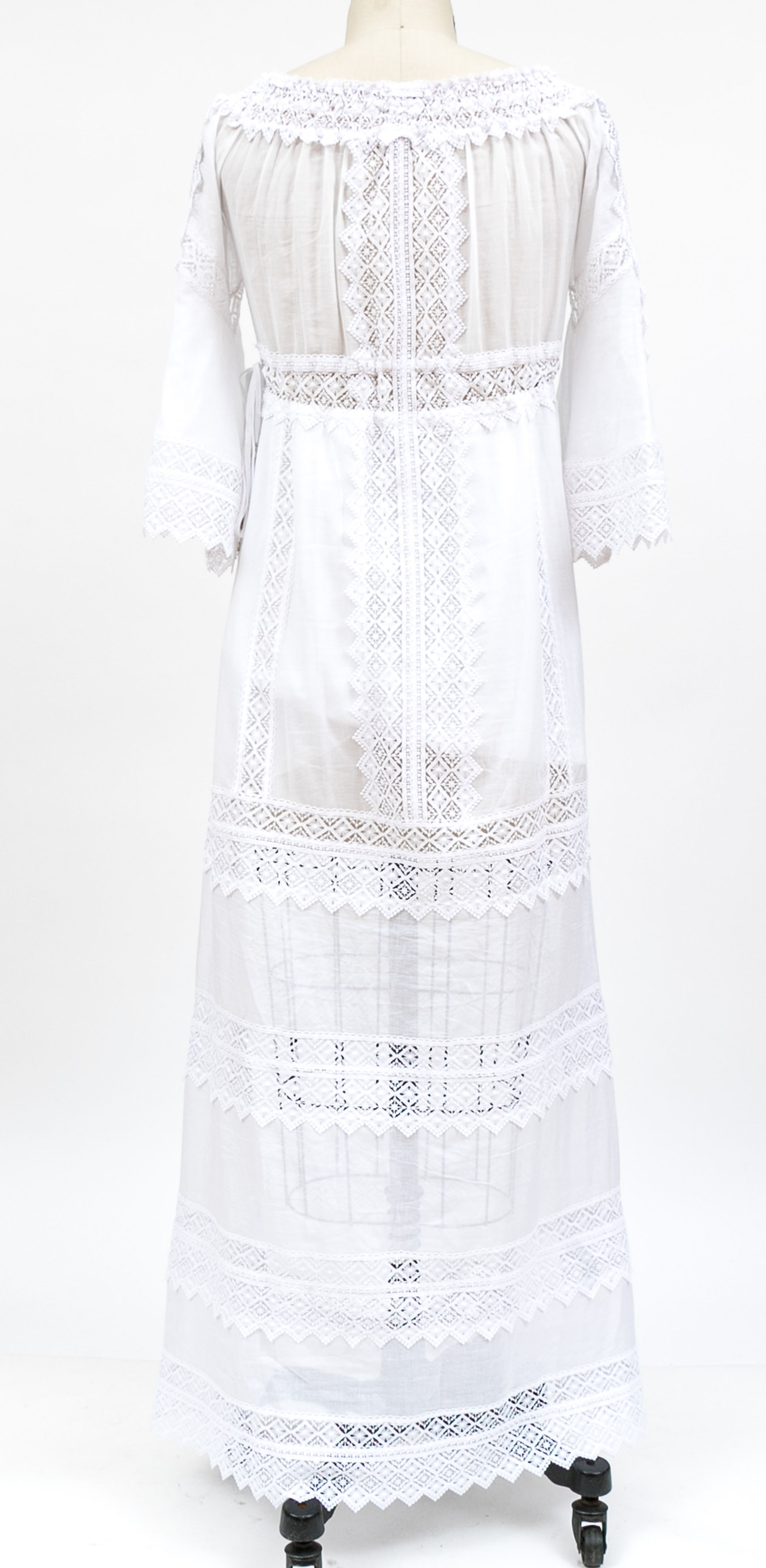 Charo Ruiz, Ibiza, lovely white cotton lace edged maxi dress, size M