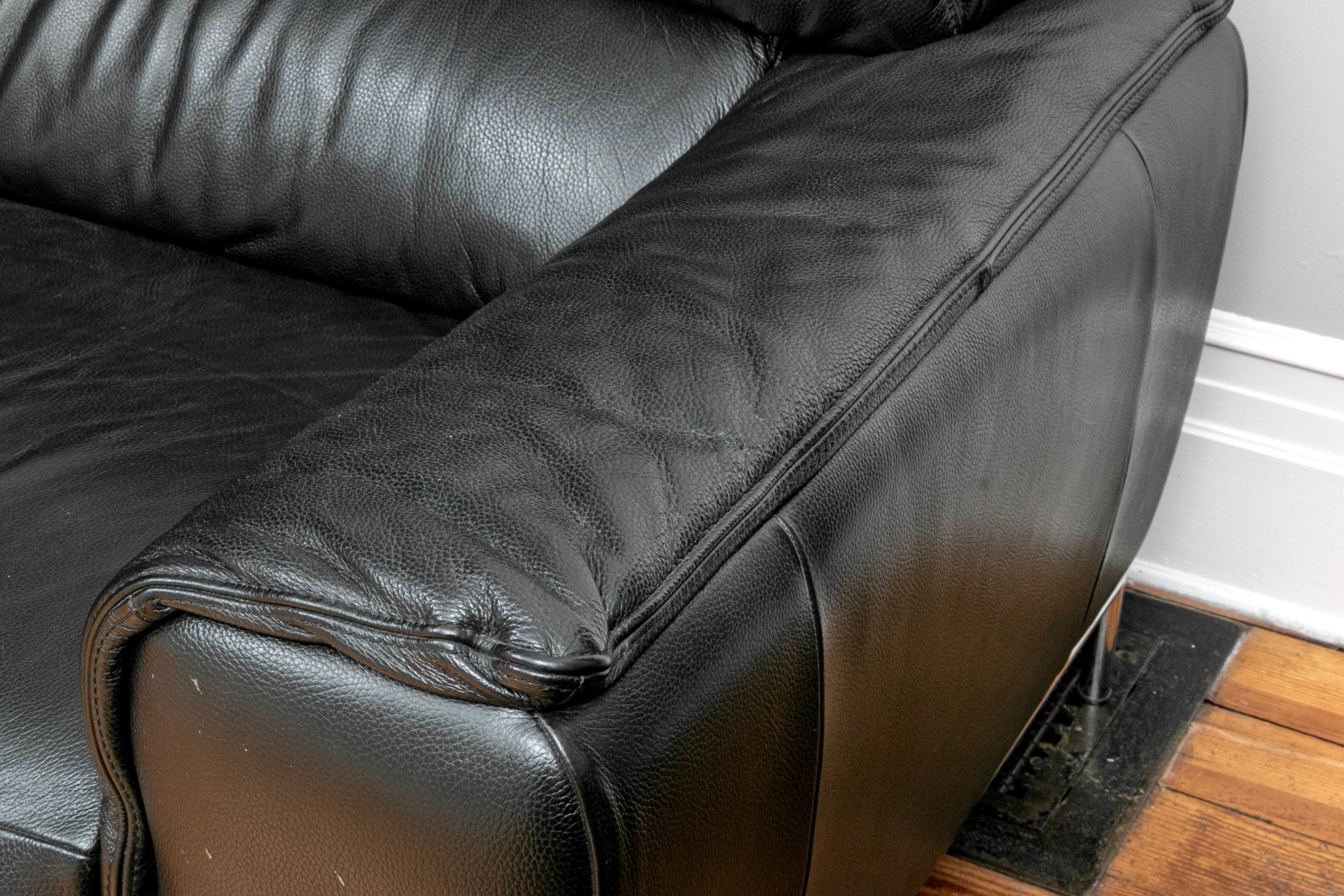 Presents well overall with light scuffs and leather wear. The seat cushions are affixed and do not remove.