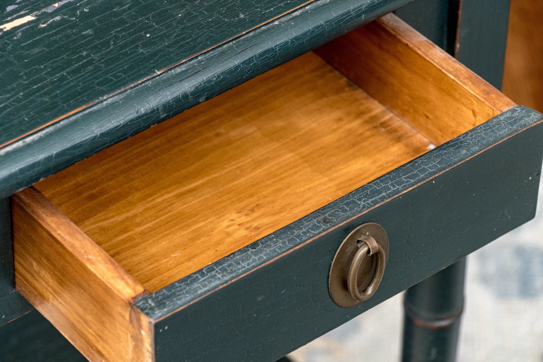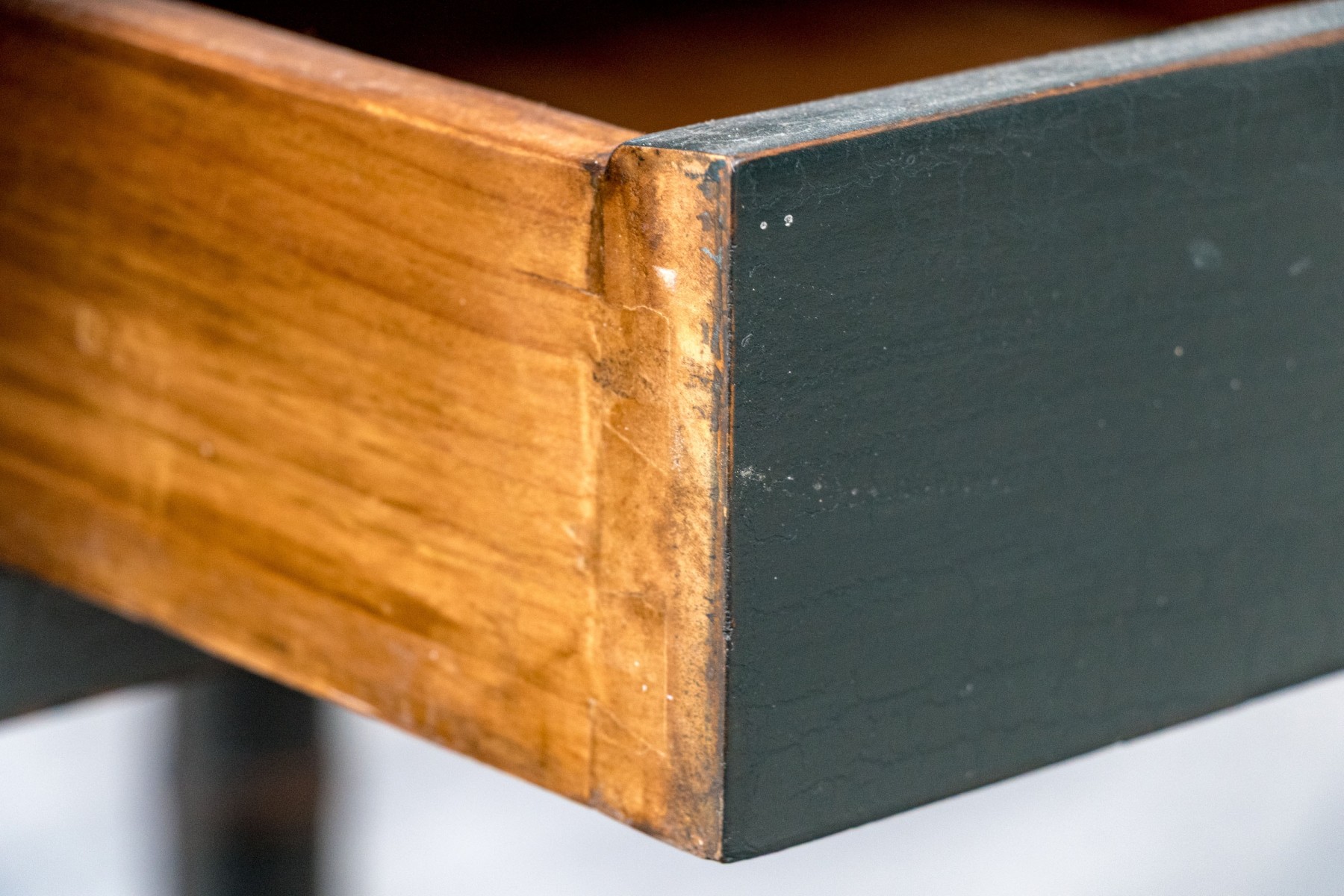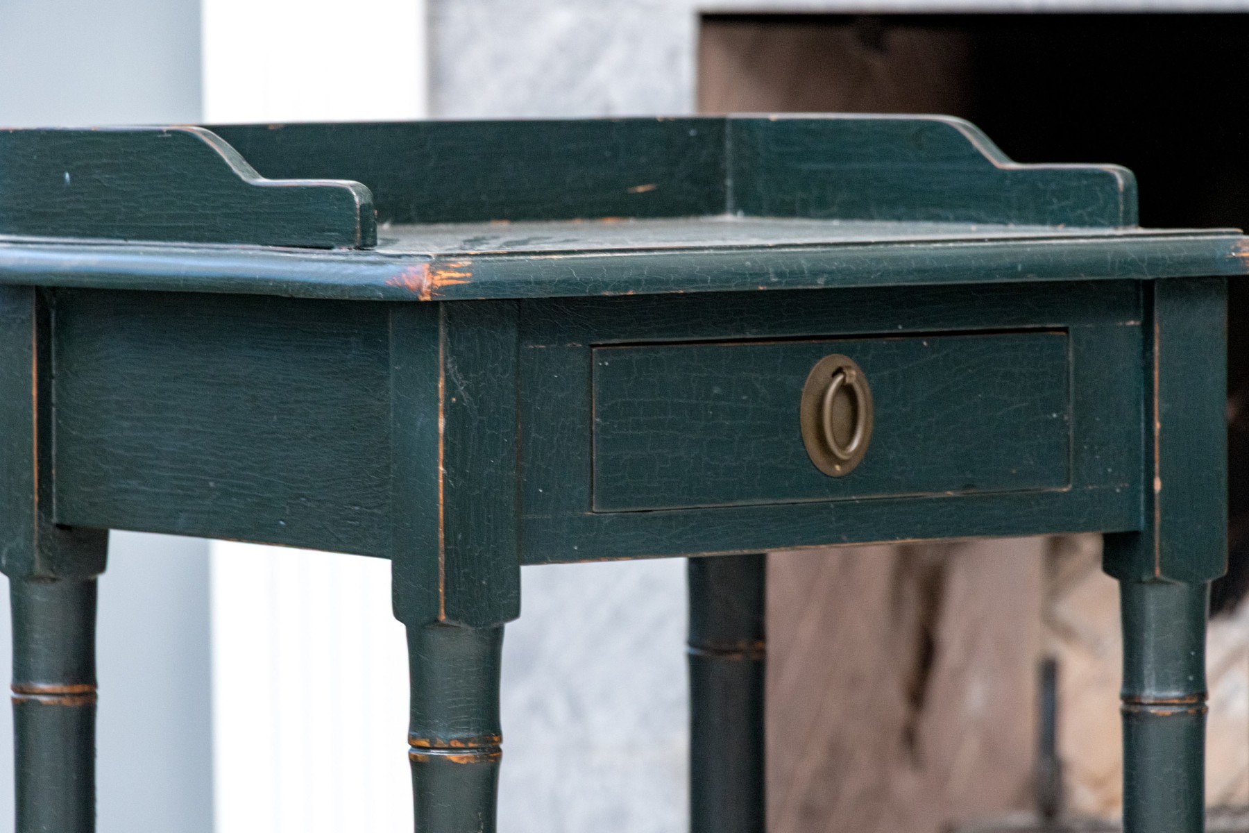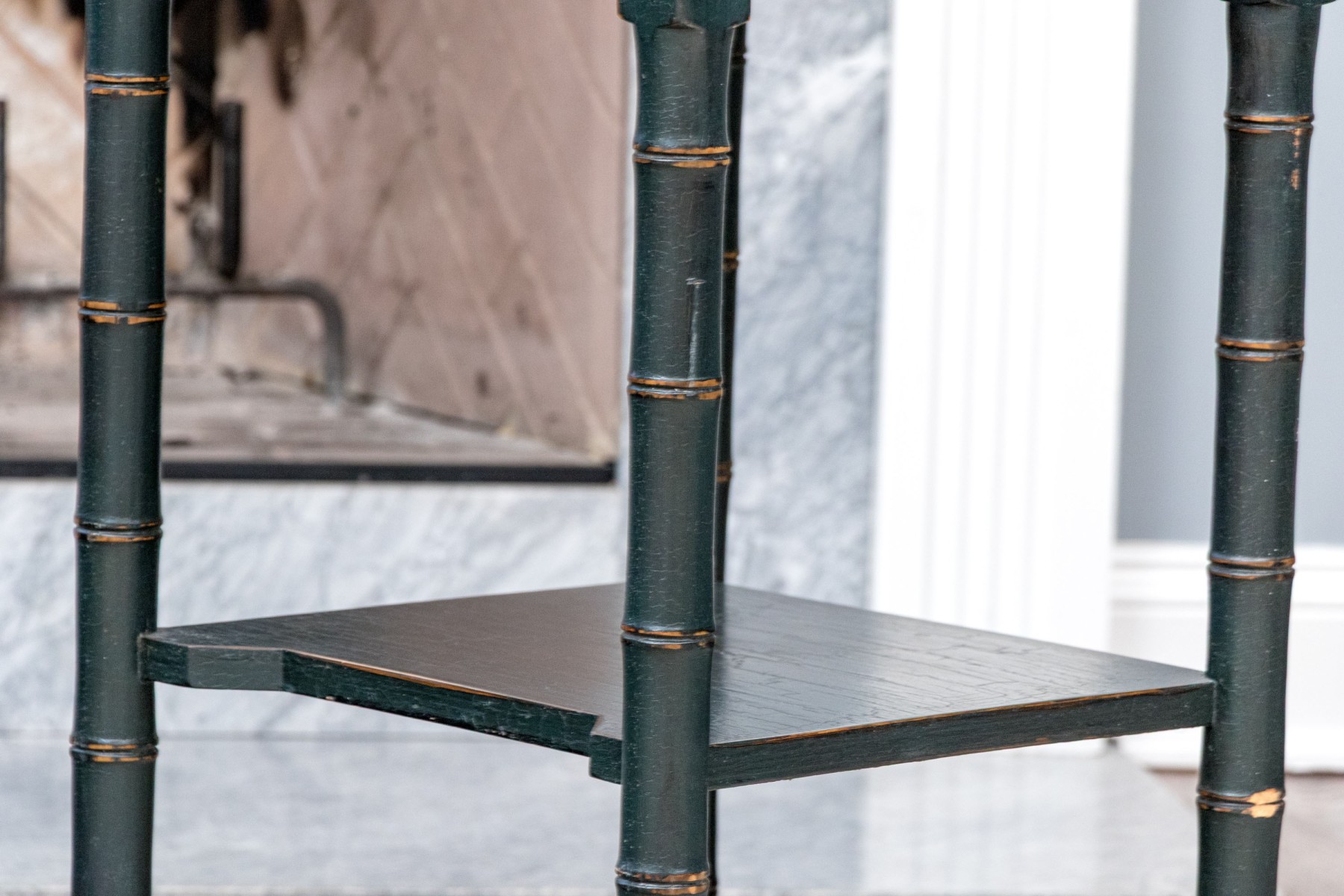 Distress to the painted finish with some chips and nics to the legs and paint finish. Despite gentle wear the two end tables presents well.