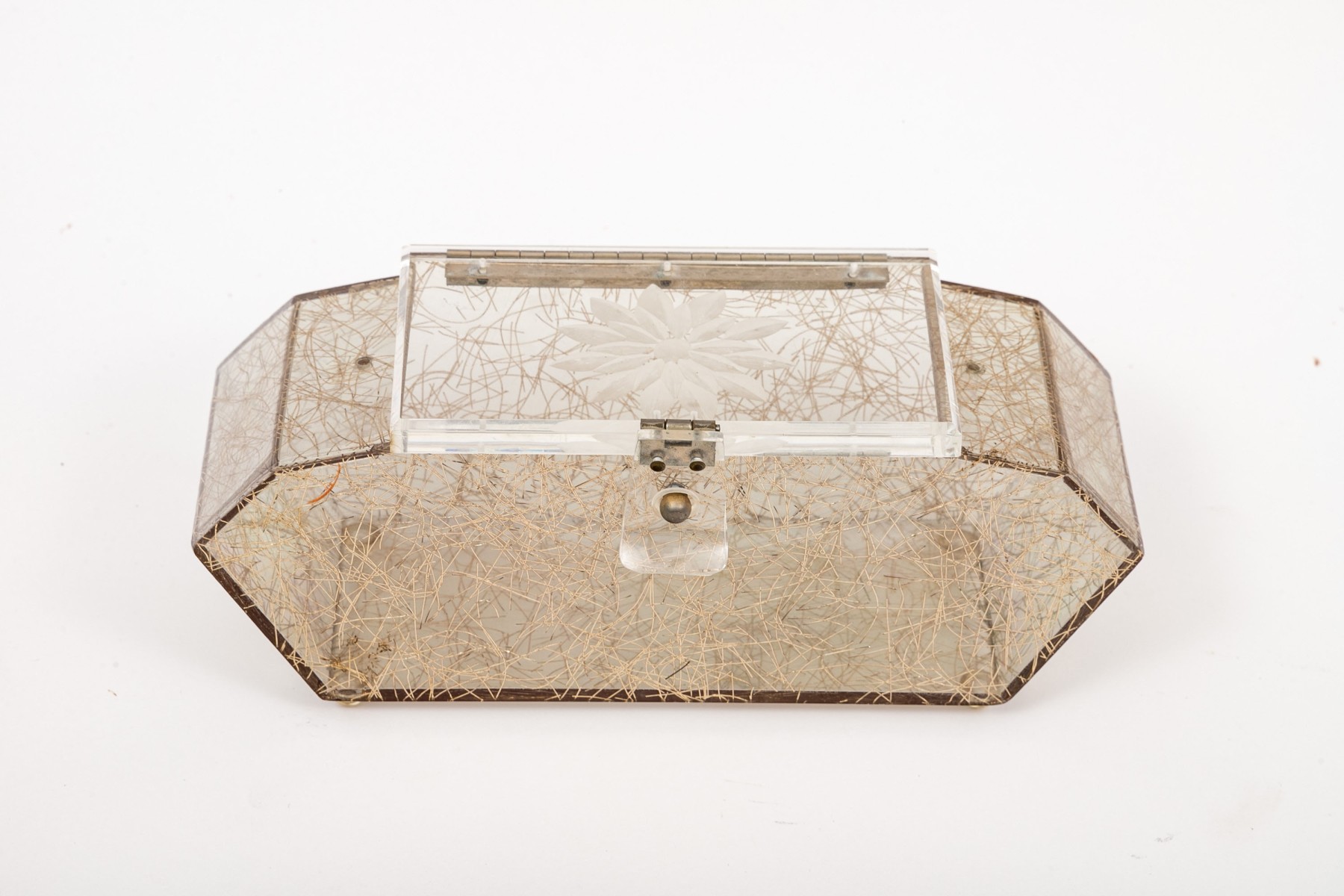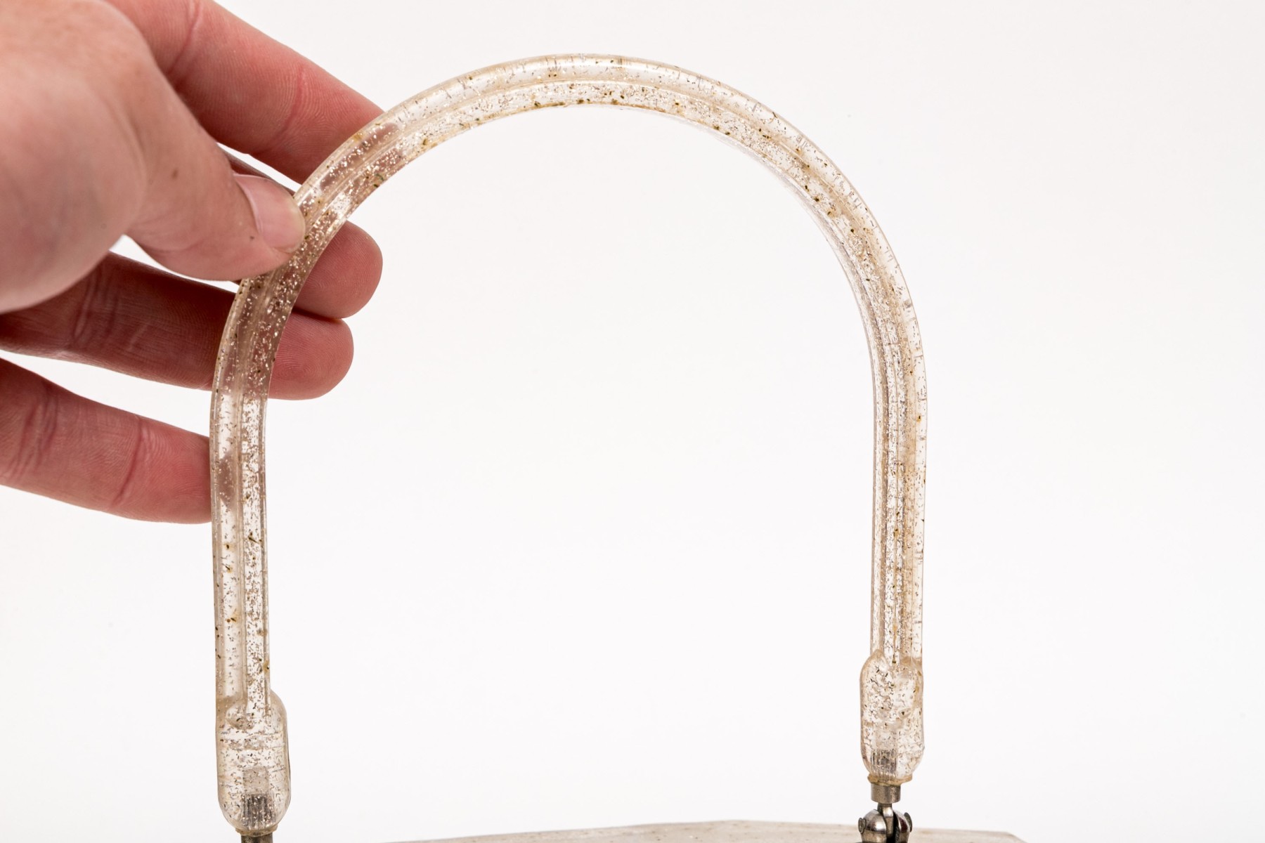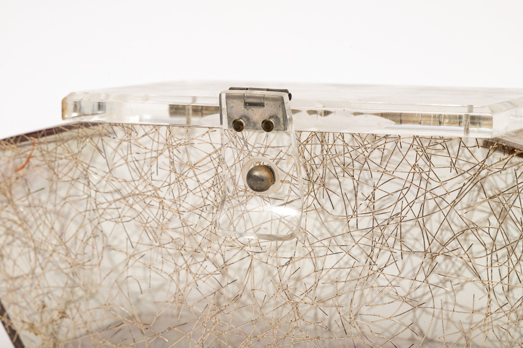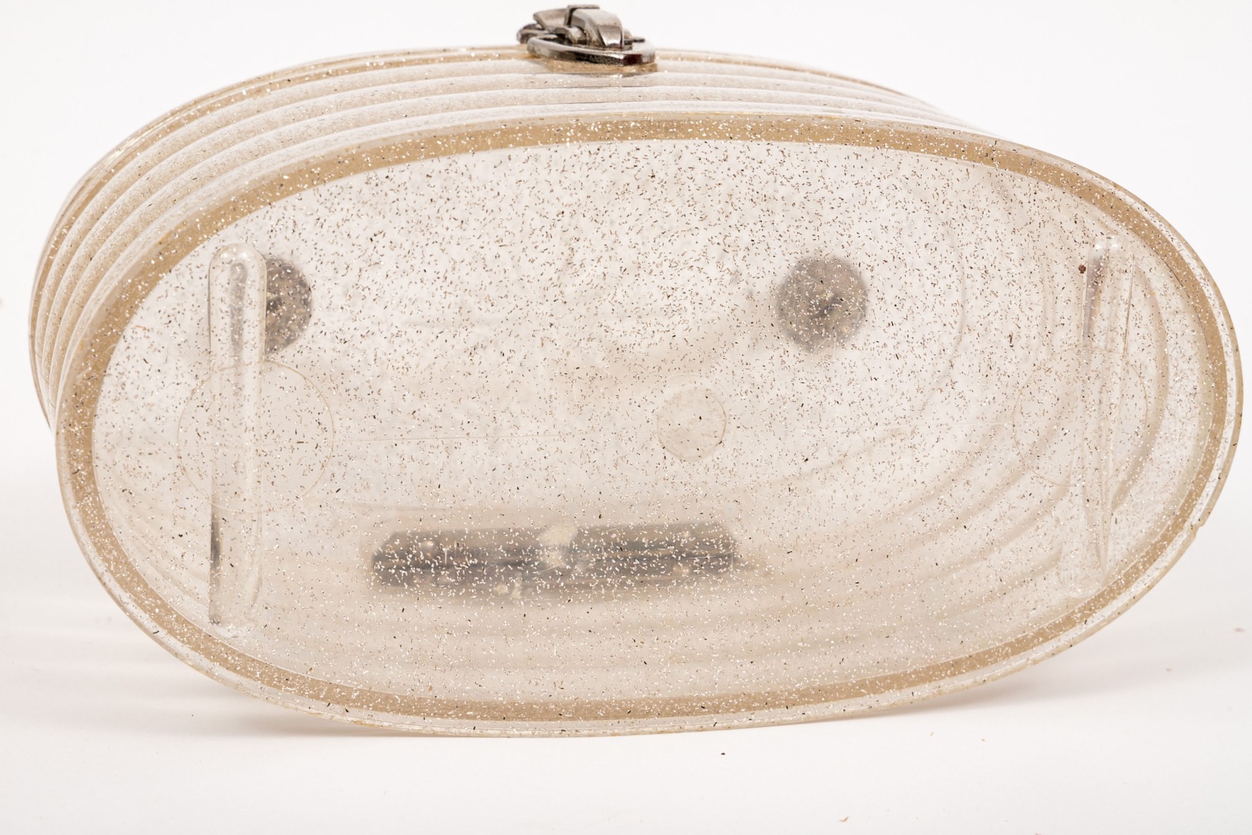 Some wear commensurate with some age and use along with storage. Slight wear to the mounts and lucite but overall a great lot of vintage handbags and dresser boxes. Please review the photos as they are part of the condition report.