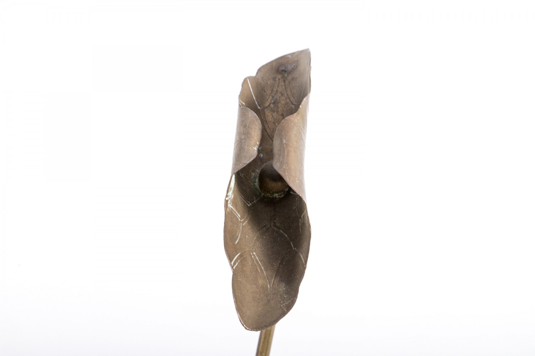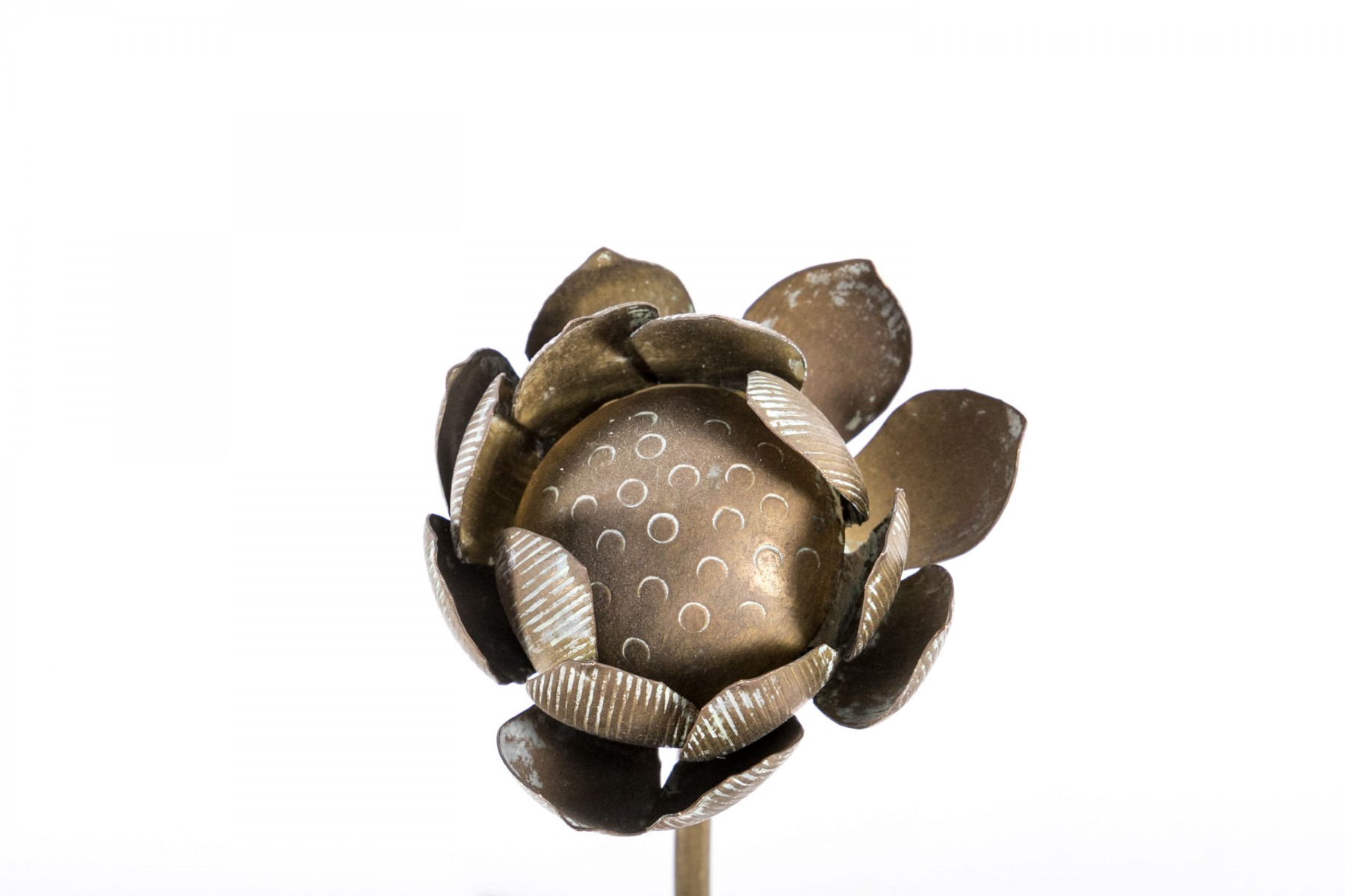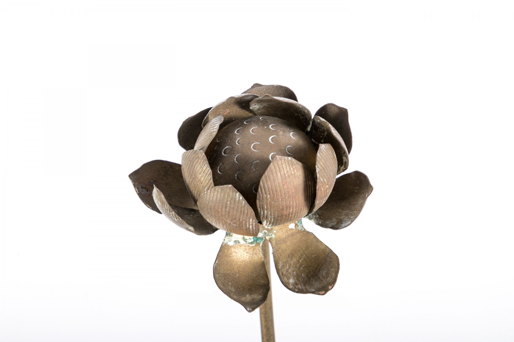 Condition: Displays well with scattered discoloration, some bending around the edges and petals, tarnishing. Please review the pictures as they are a part of the condition report.
