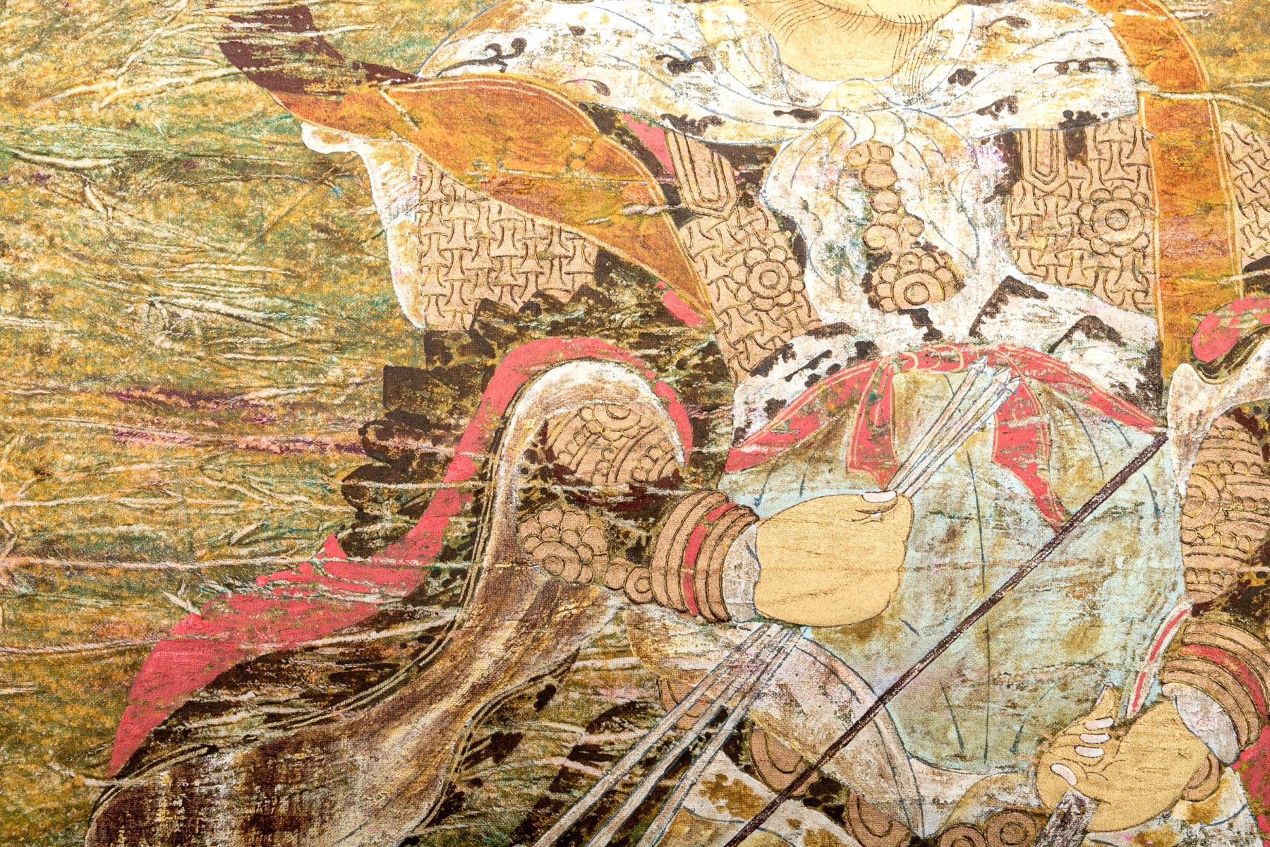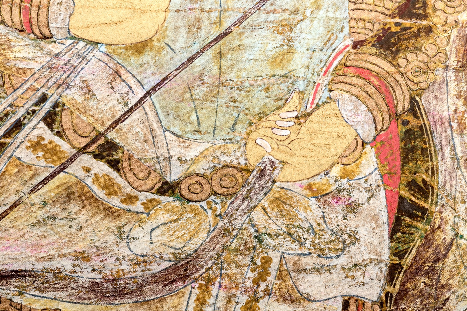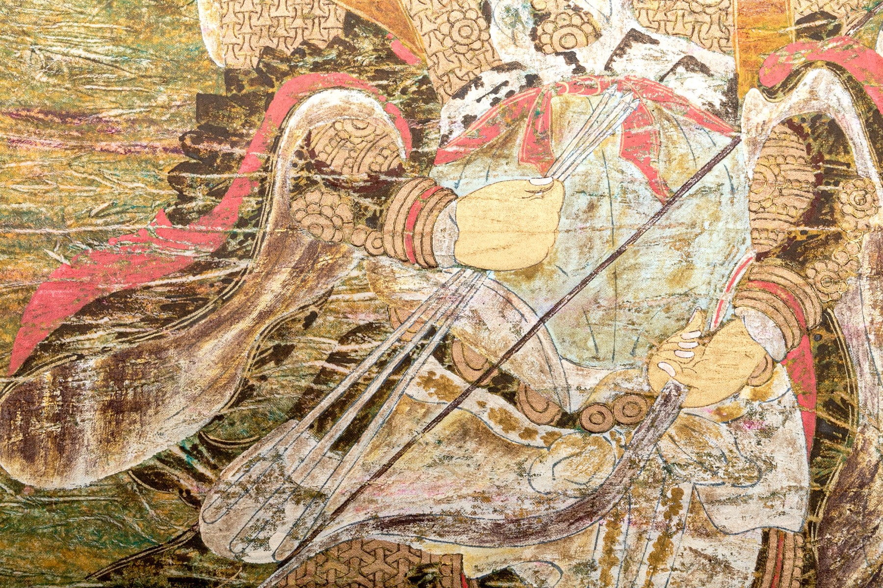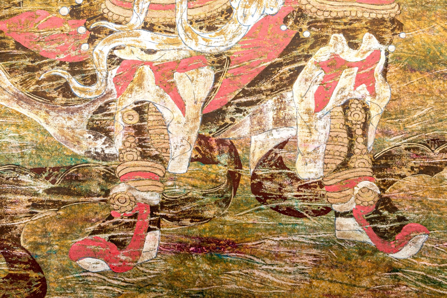 The current work is a decorative one after murals predominantly painted during the Ming Dynasty of China's illustrious history.