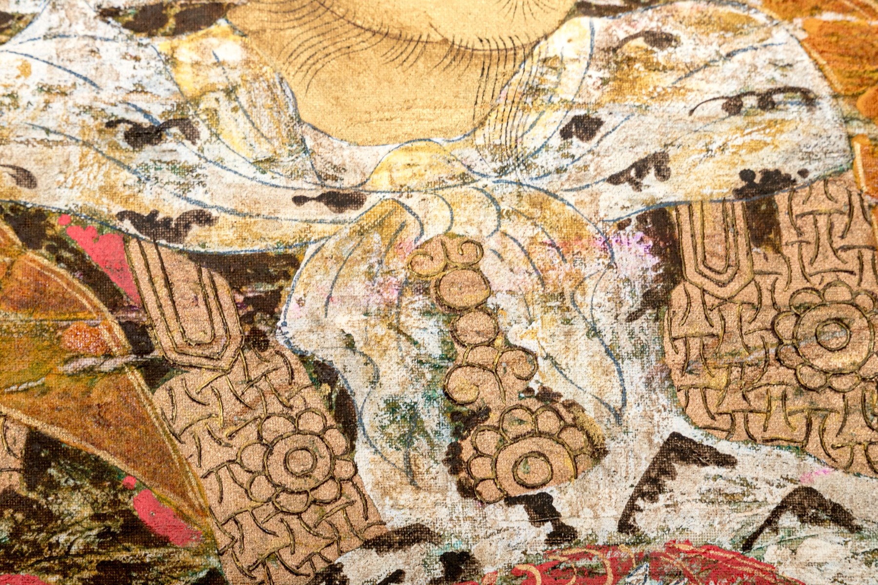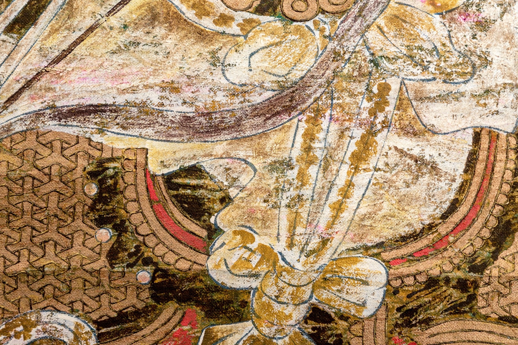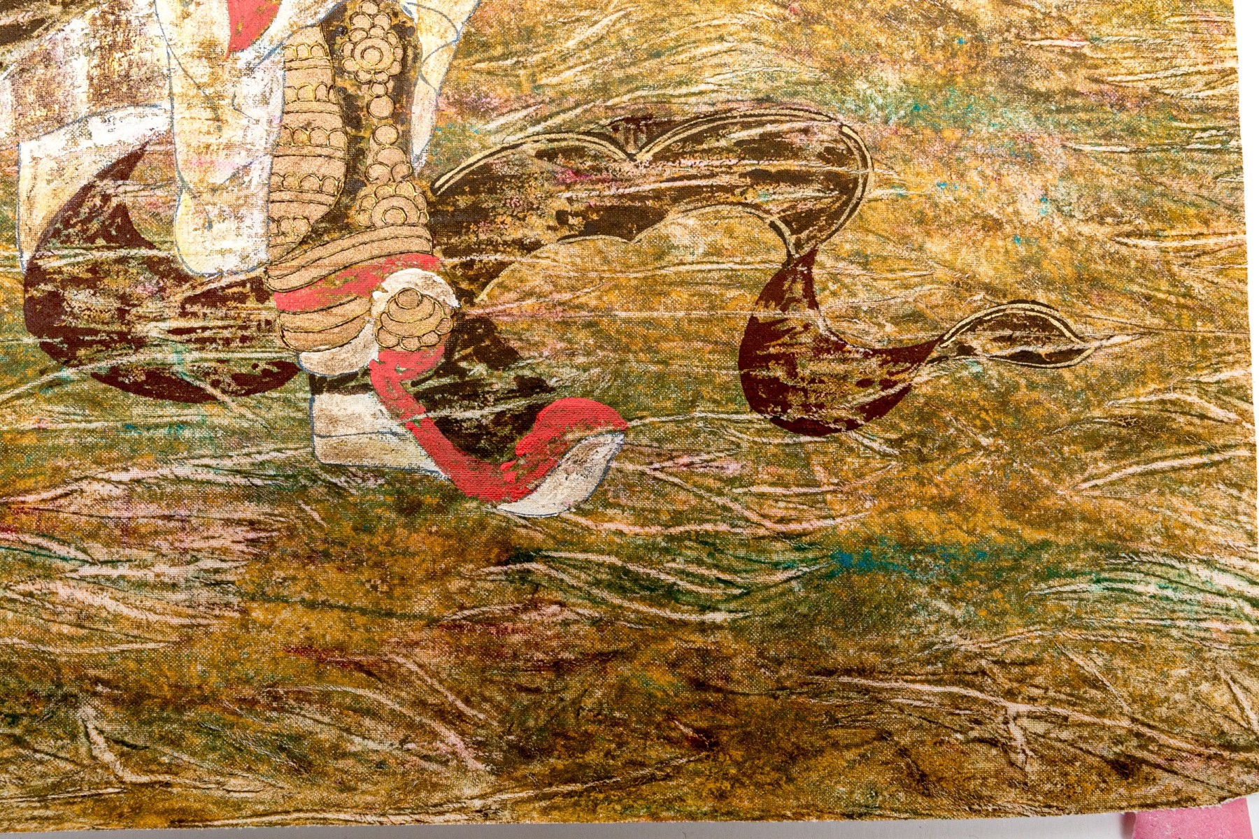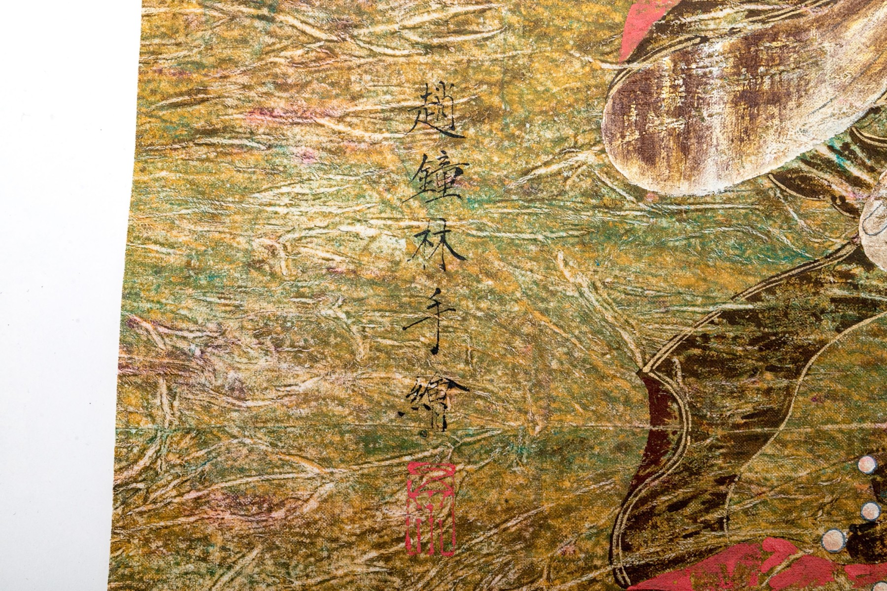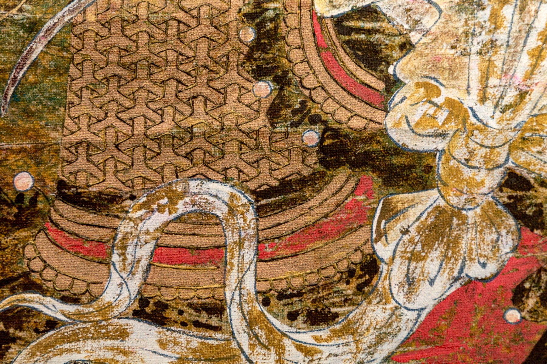 The current work is a decorative one after murals predominantly painted during the Ming Dynasty of China's illustrious history.