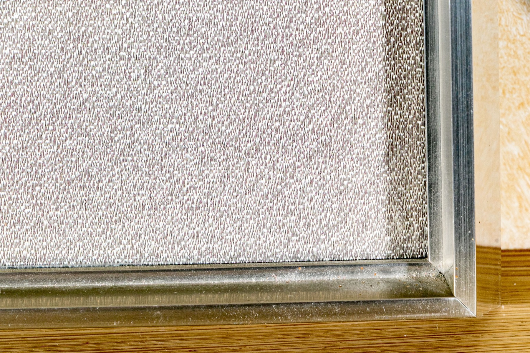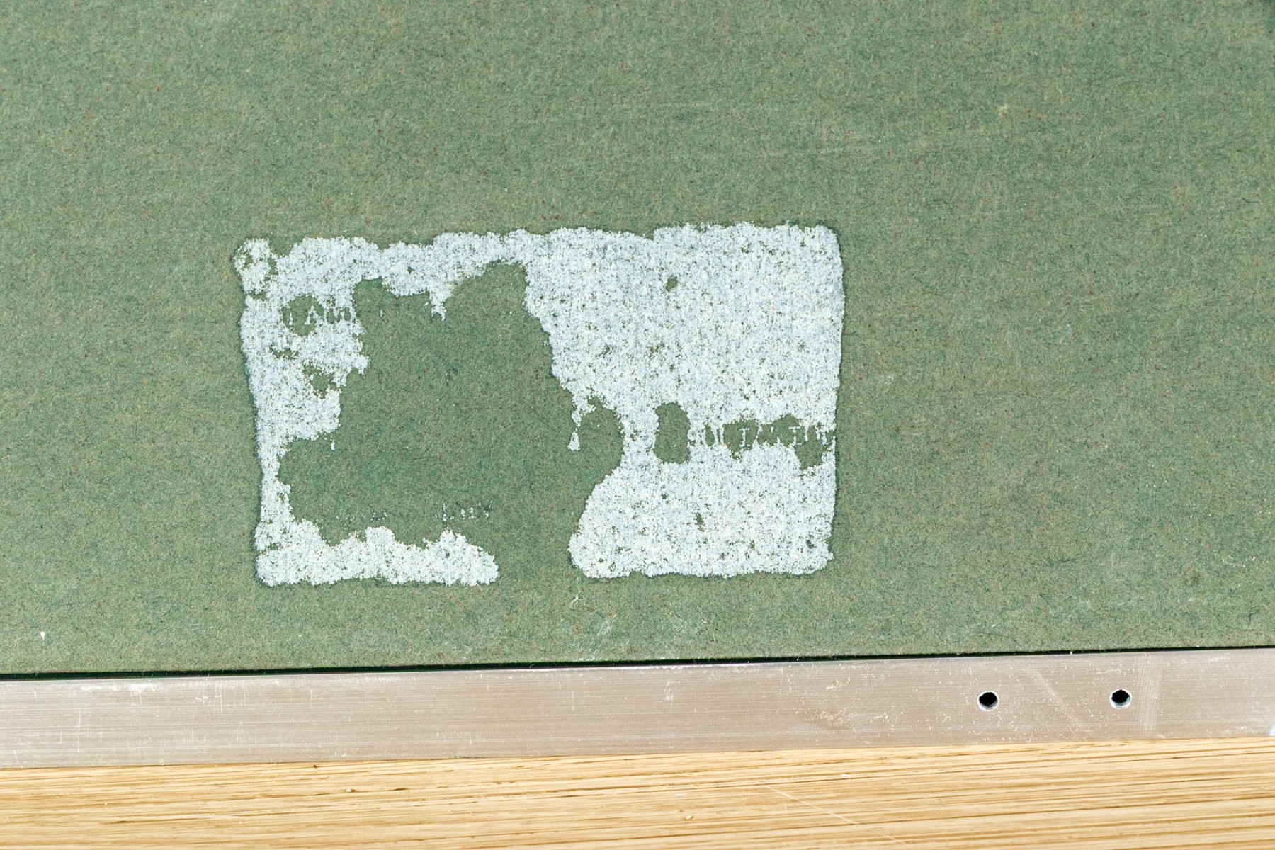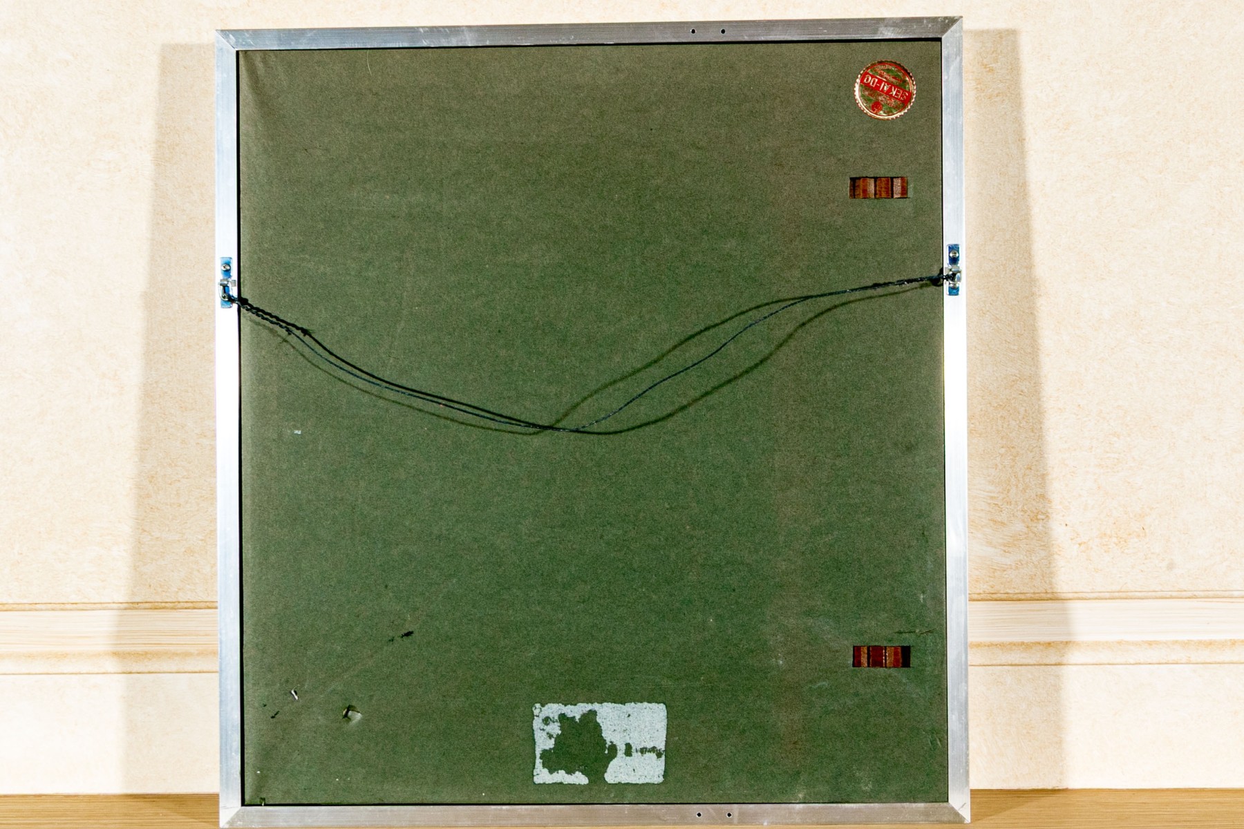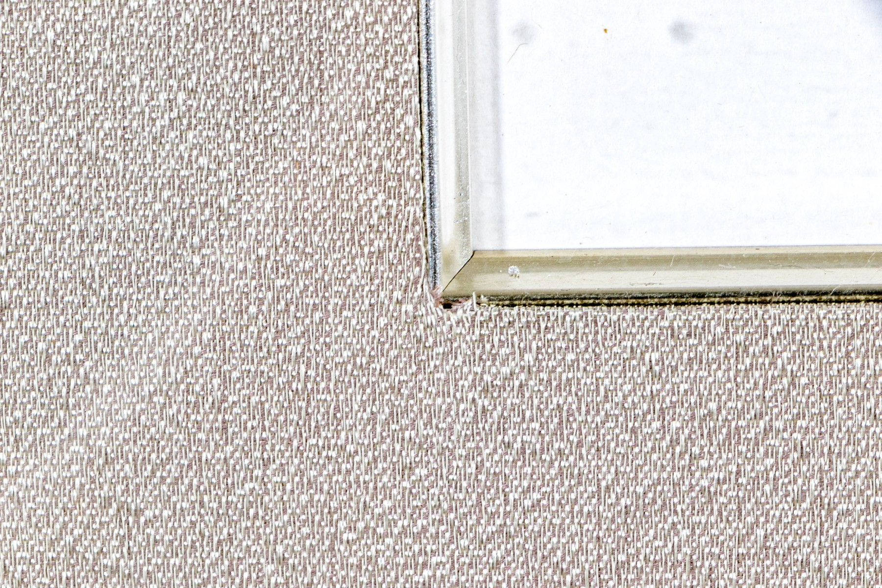 A wonderful Chinese calligraphy depicting the character "耐" (nài) meaning to endure, withstand, or bear. With a red chop seal lower left. Displayed with a metallic gray mat and fillet in a metallic gray frame.