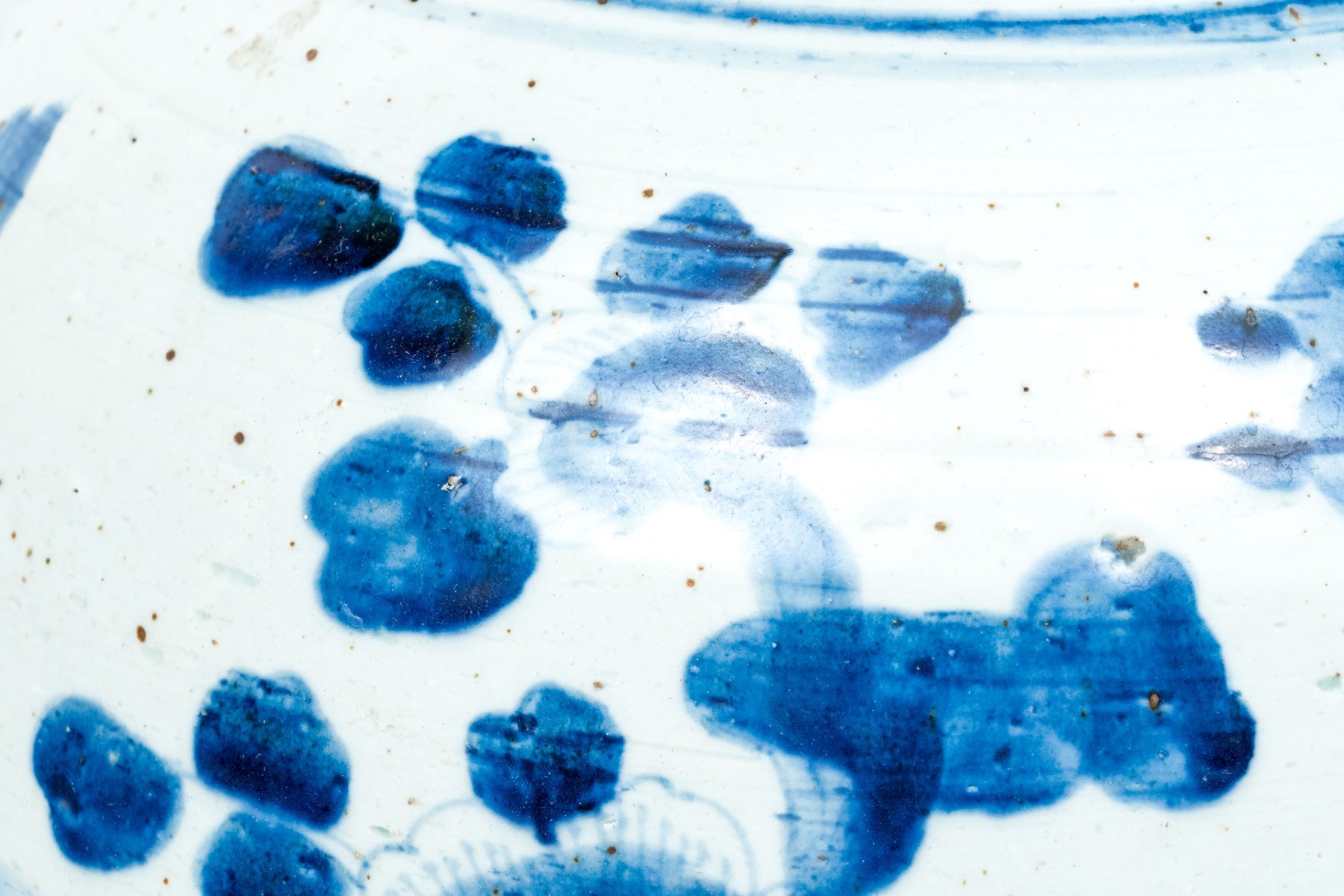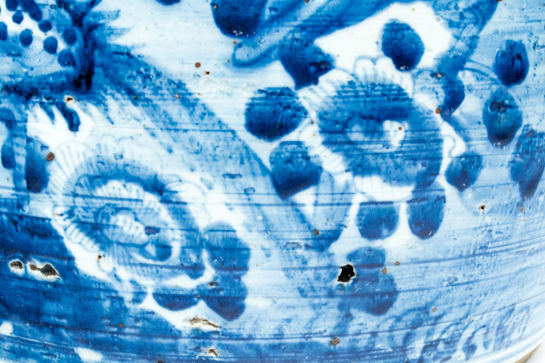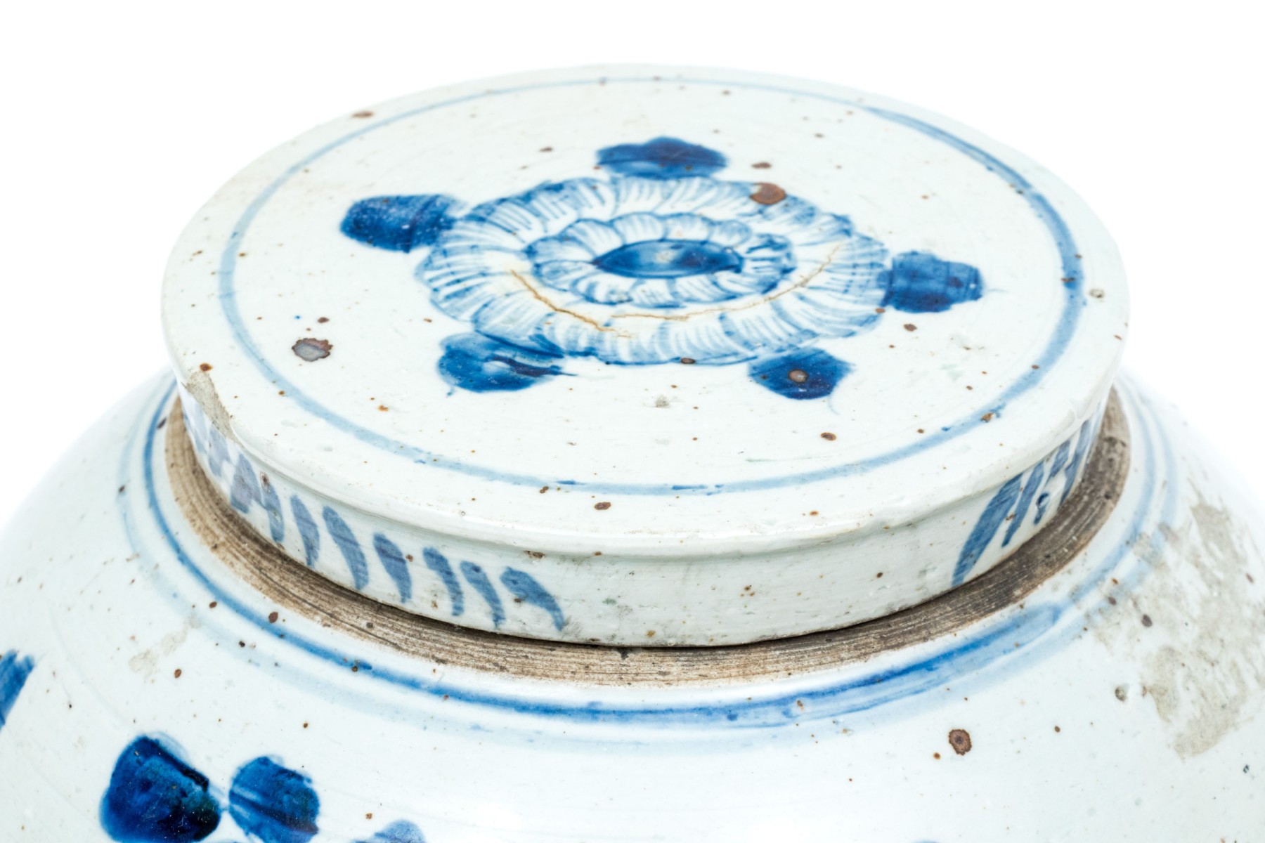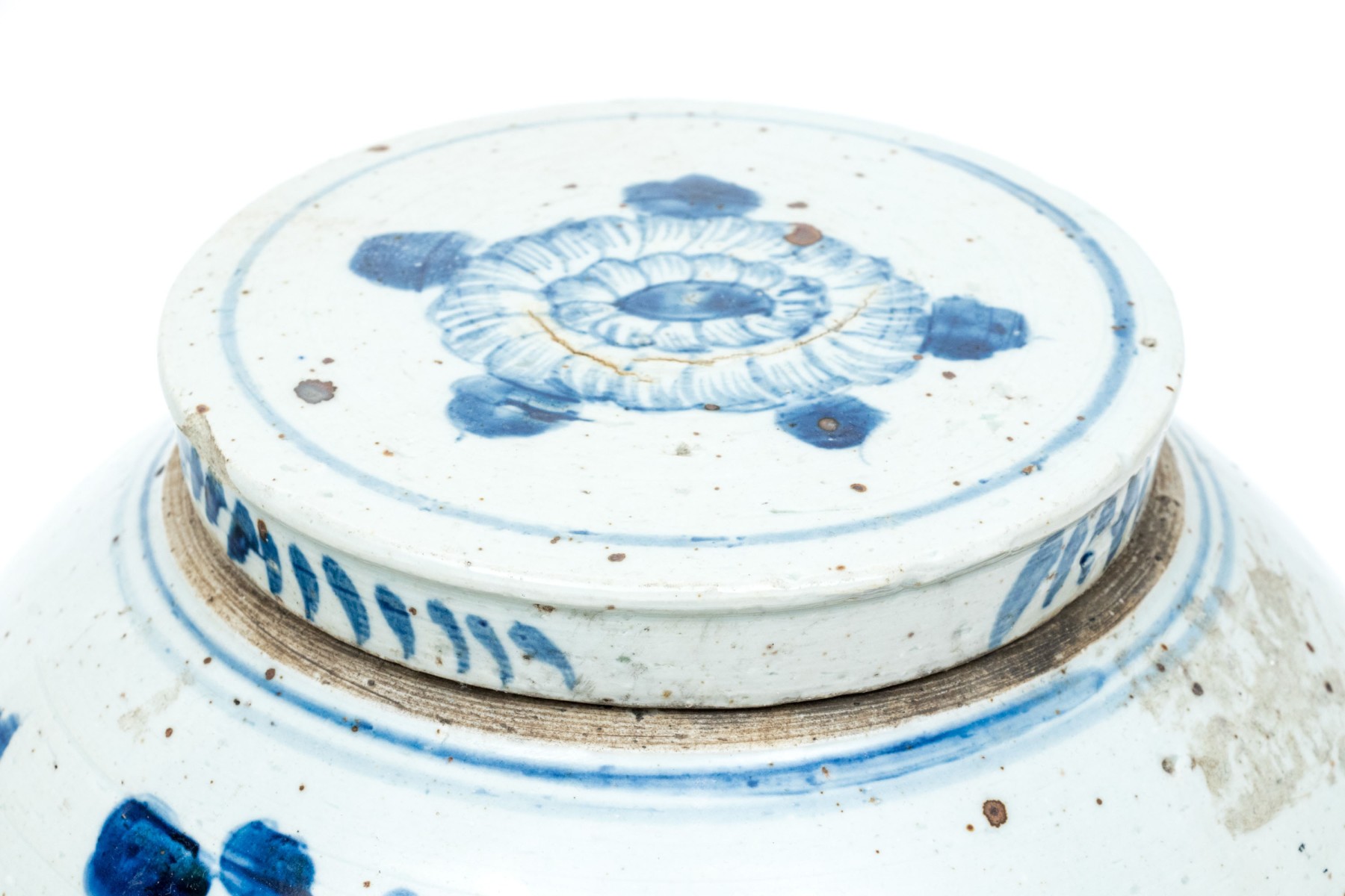 A Chinese export style blue and white oversized porcelain ginger jar with its circular lid.