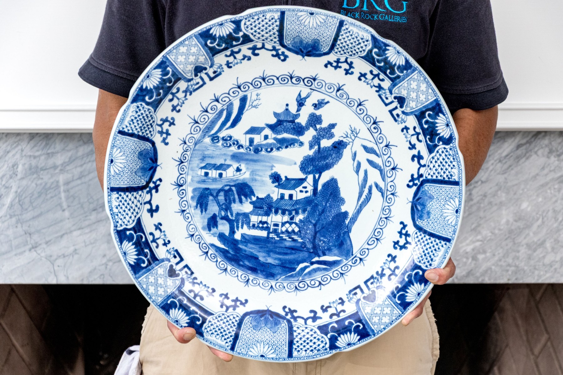 Chinese Export Blue Willow Porcelain Charger, 20th C. #452290. Black Rock Galleries provides high end estate liquidation services through online estate auctions and a 50,000 sq ft designer showroom. estate liquidator, estate sale, online auction, antiques, fine art, liquidation, clean outs, auction, consignment, interior design, fine jewelry, collectibles, appraisals, estate appraisals, estate services, decor, furniture, furniture consignment, antique center, consignment shop. We offer appraisal services and specialize in fine art, jewelry, antiques and decorative arts. Sell with us. Black Rock Galleries is the tri-state's largest estate liquidator serving New England and the greater New York City area. We are the trusted source for expert appraisals, auction services, estate sales, and consignments. Black Rock Galleries is the east coast's largest and most trusted estate liquidator, with locations in Connecticut, greater Boston, MA and Raleigh, NC, Fairfield, Southport, Apex, TX. We are the best source for expert appraisals, auction services, estate sales and consignments. We have served thousands of families and estates with compassion, professionalism and expertise. BRG works with attorneys, executors, realtors and families to bring the greatest return on personal and estate property in the current market. Our unique combination of services make us the easy choice to get the job done in a timely and stress-free manner. We are with you from the initial consultation to the final clean out. Our house-built online auction software platform offers clients a dynamic approach to liquidating their personal property. This venue is most successful in bringing the best return with the least amount of disruption for our clients. See our services page for a complete description of this offering. Chinese Export Blue Willow Porcelain Charger, 20th C. #452290