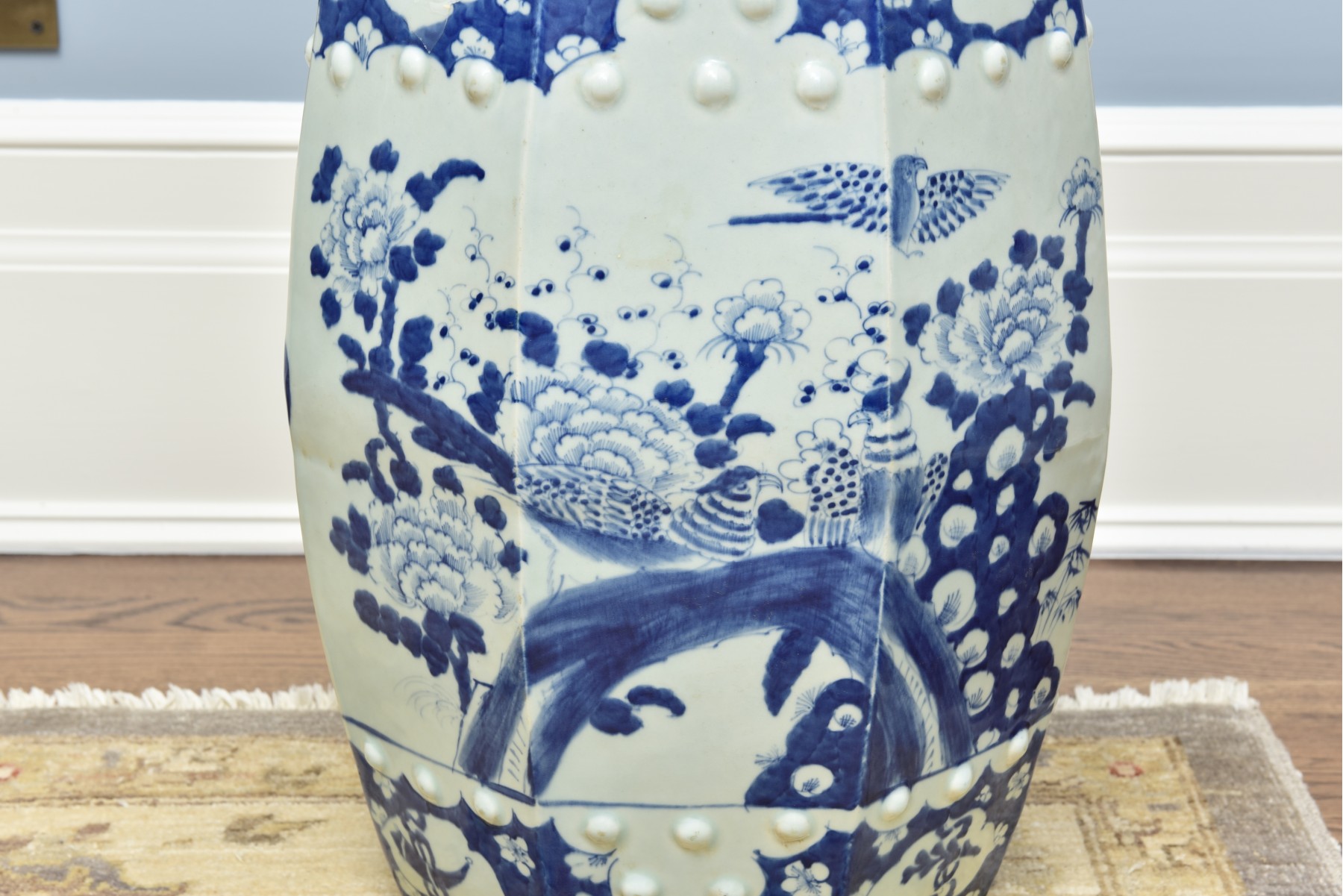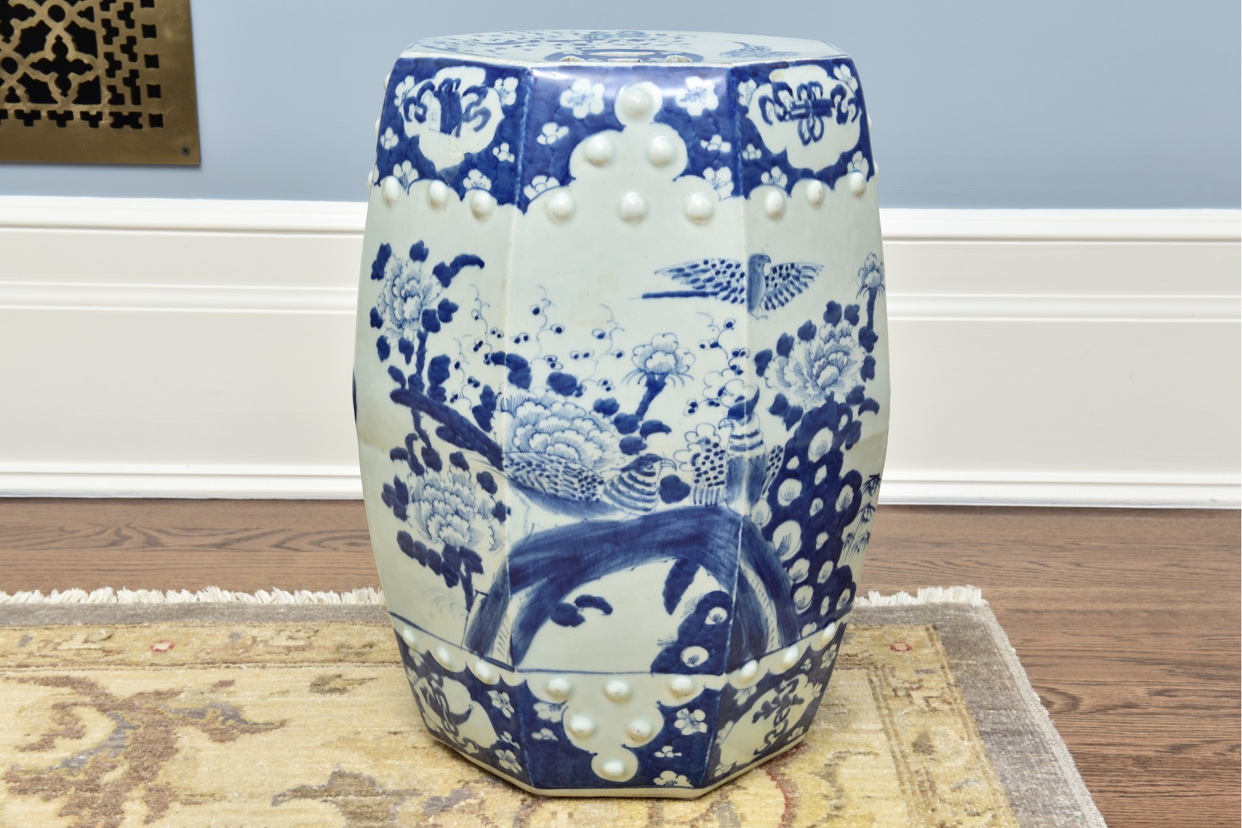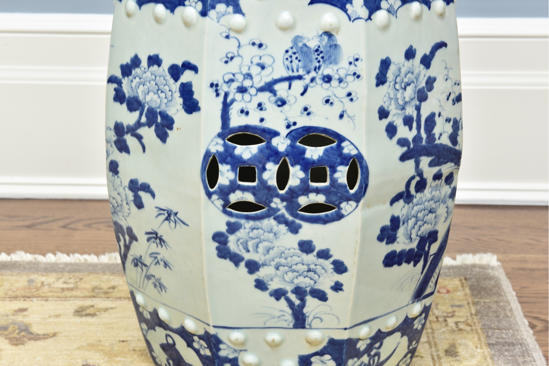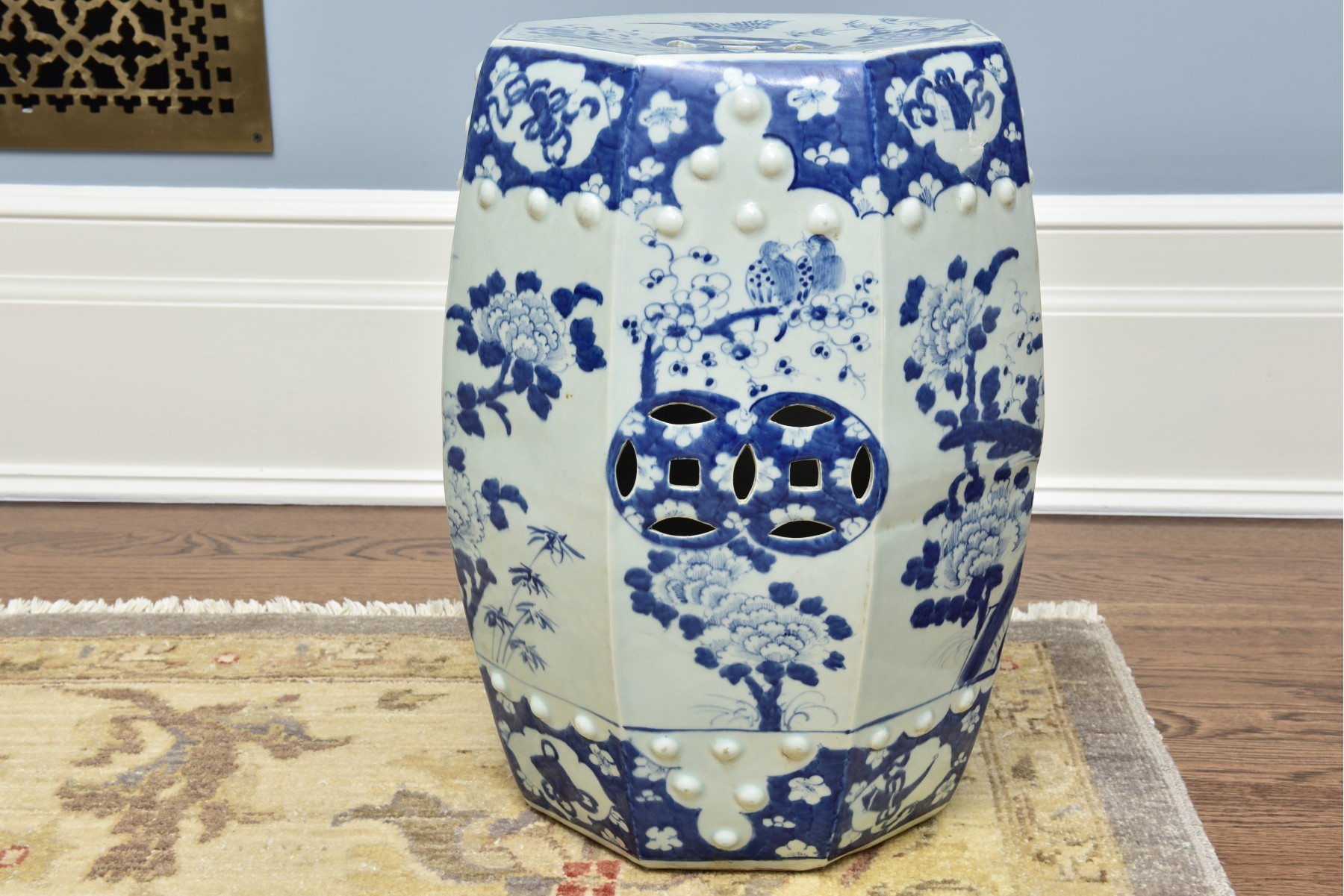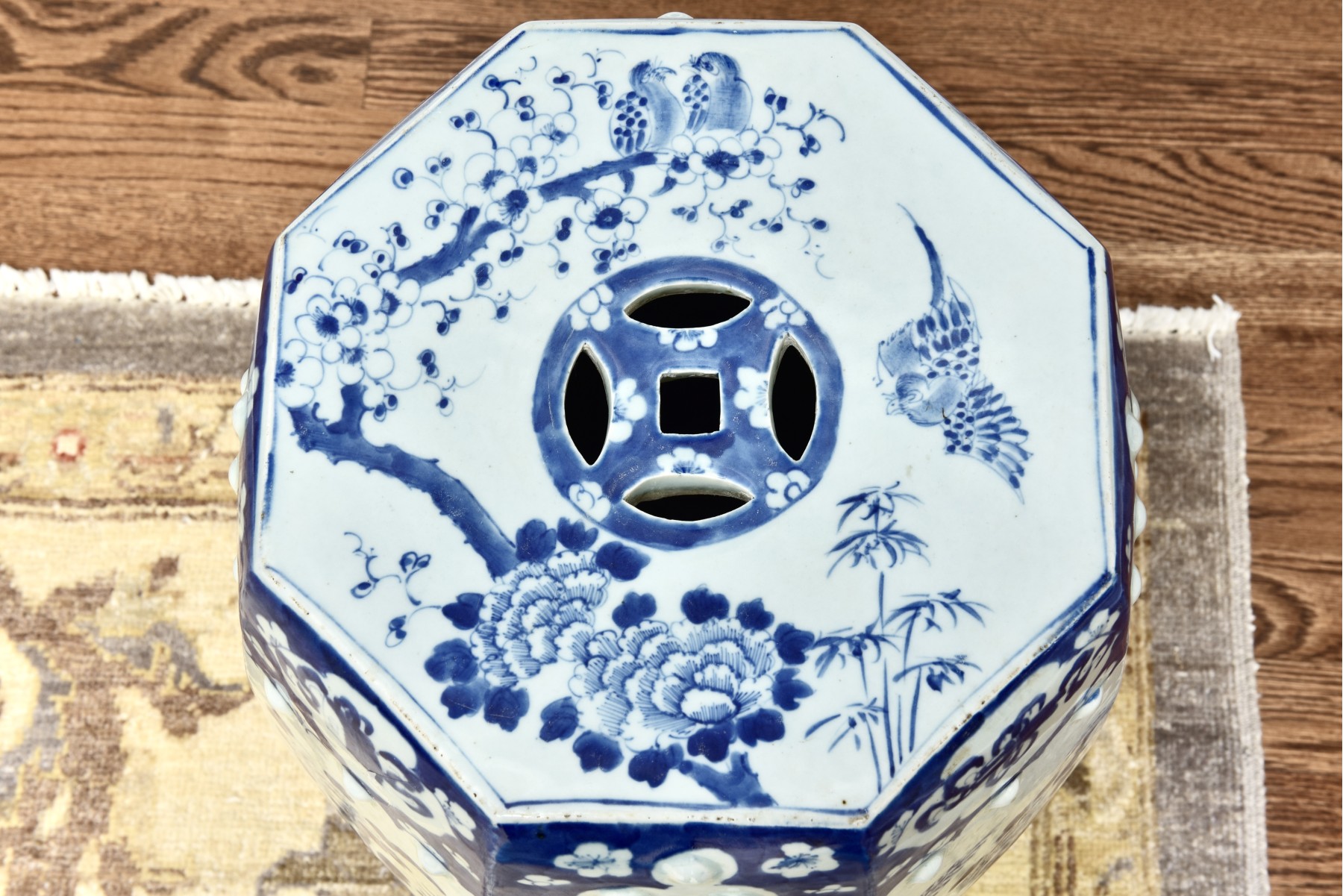 Classic blue and white design octagonal porcelain Chinese export stool.