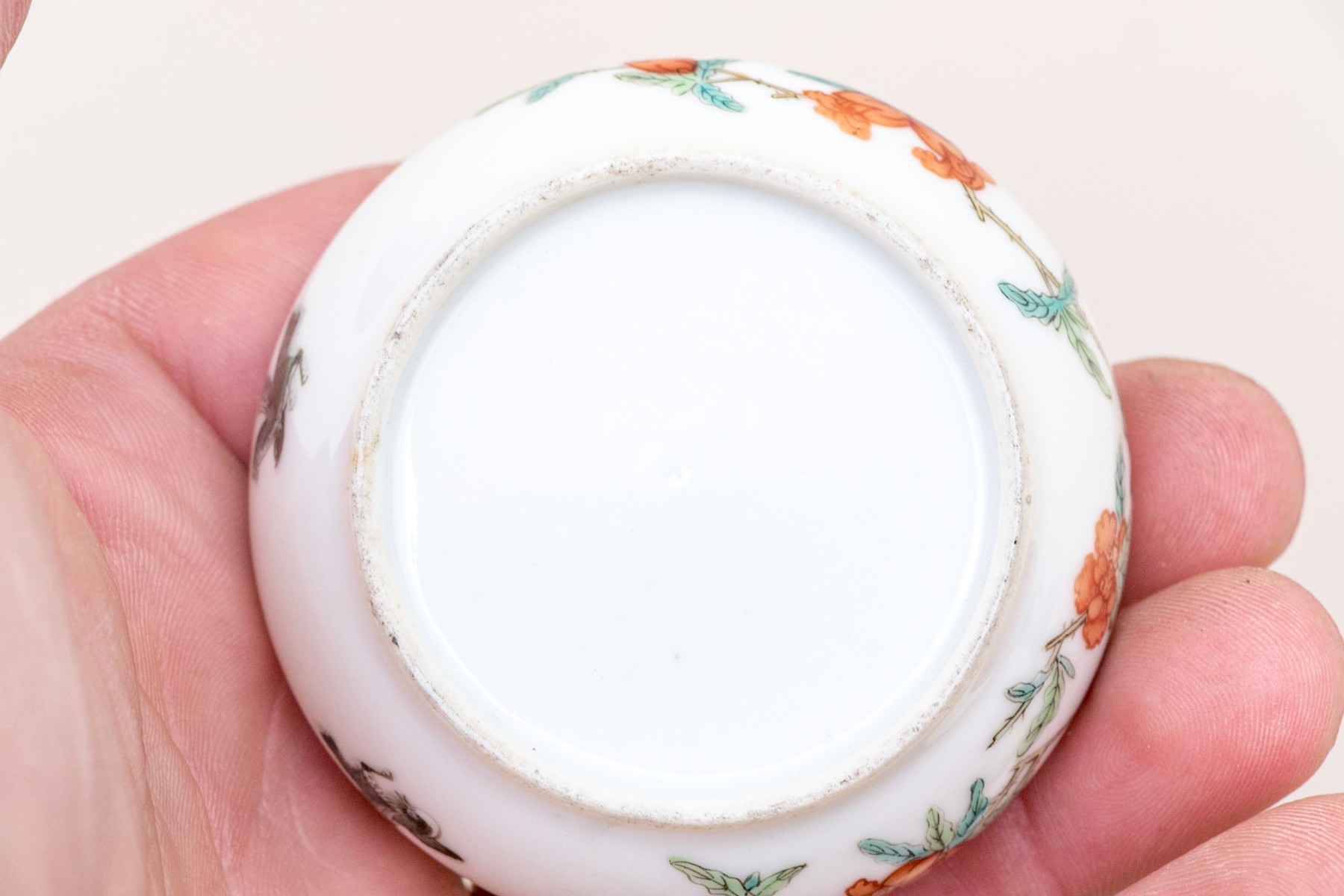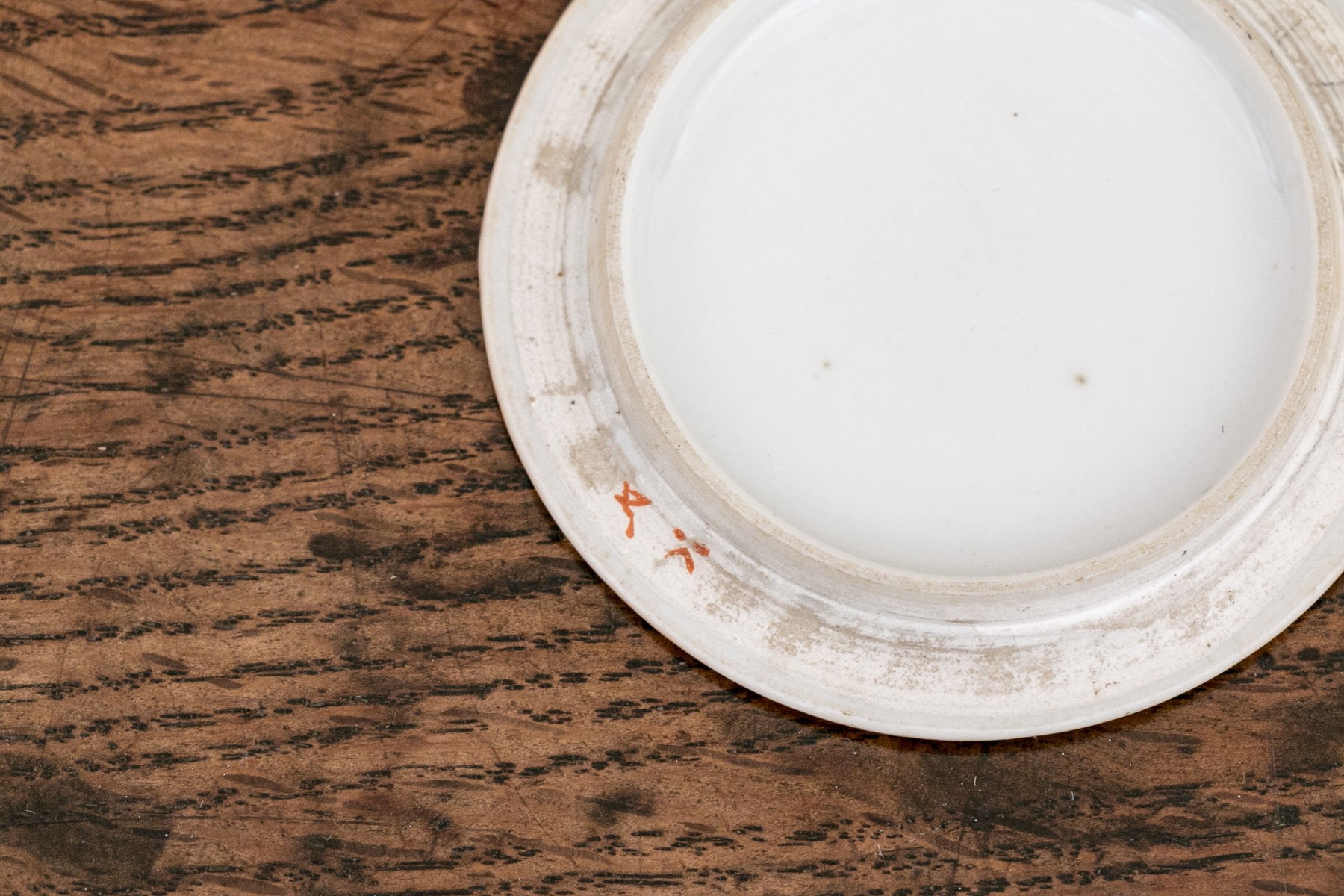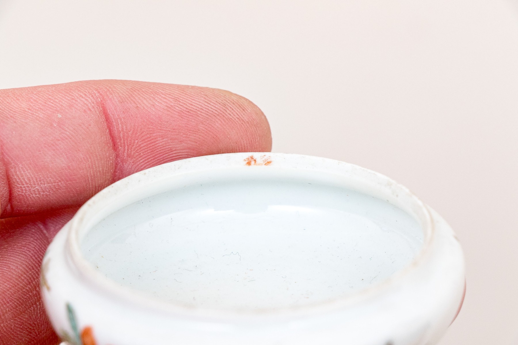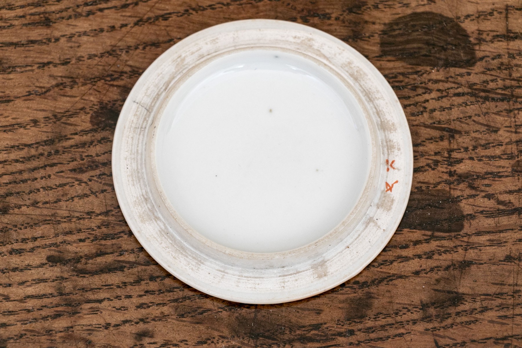 Hand marked beneath the lid rim in orange.
