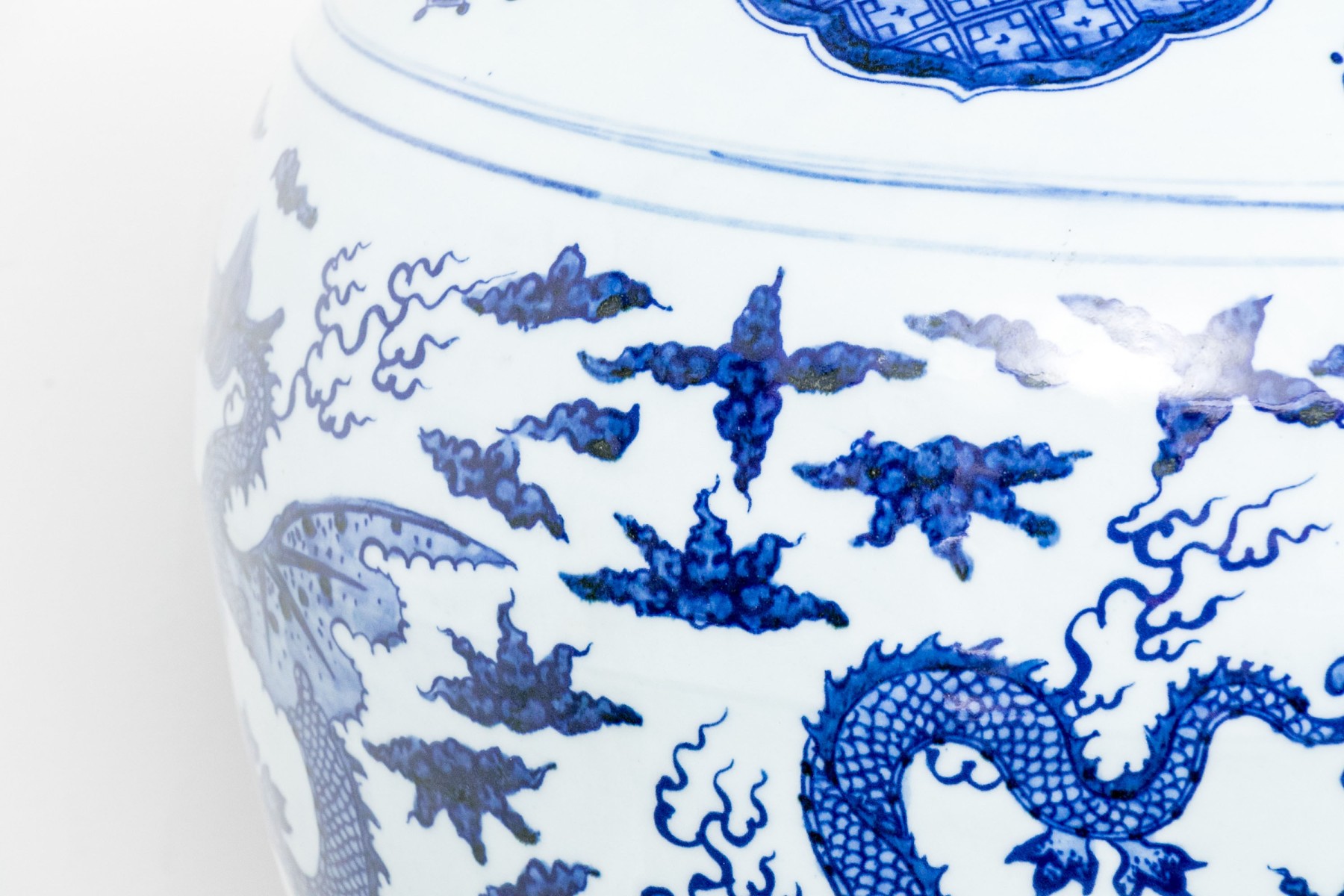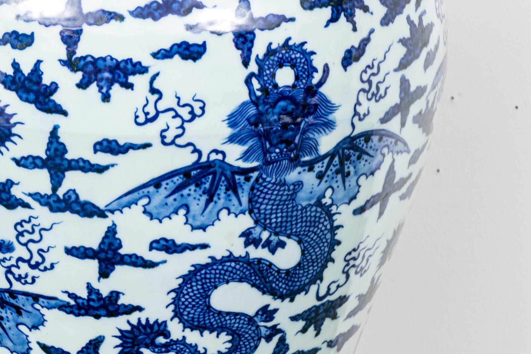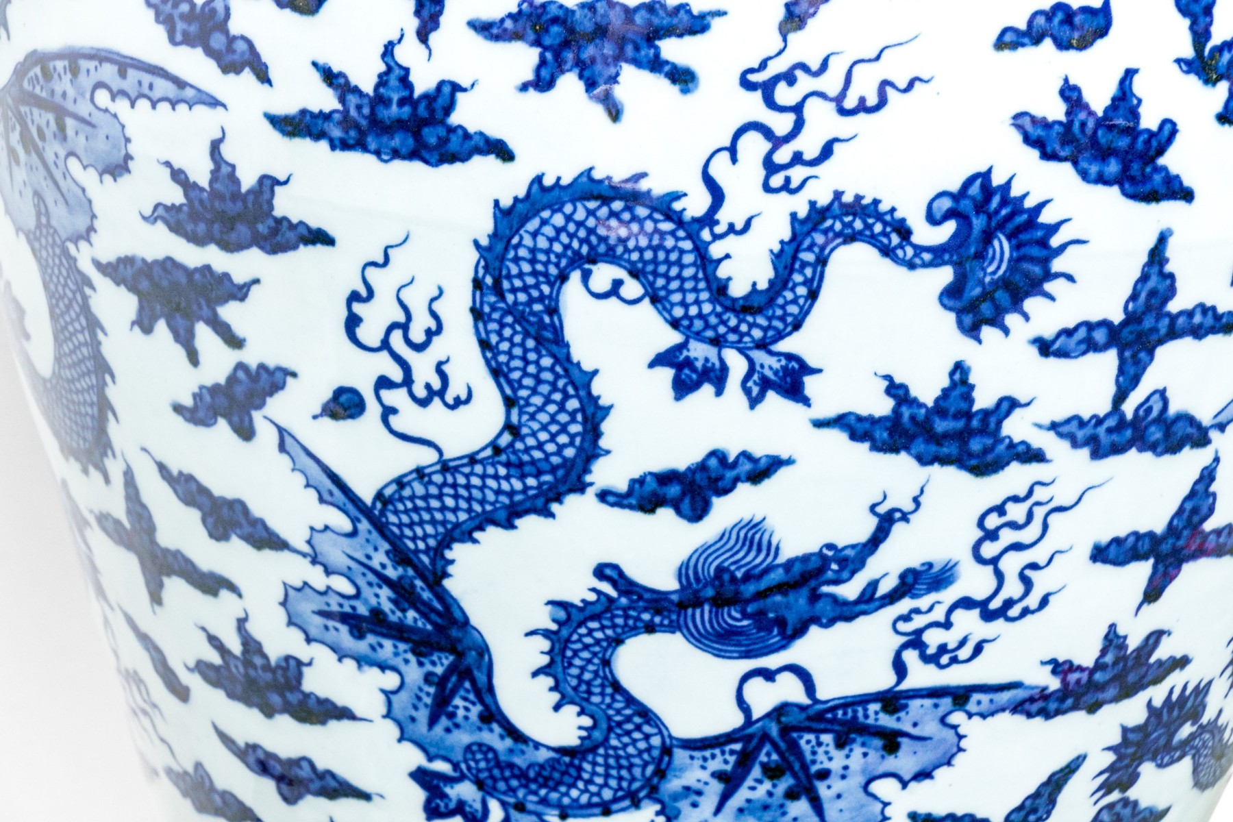 A handsomely decorated vase with lappet band to foot with dragons amidst clouds to body with a Ruyi decorative band to shoulder and apocryphal six character Ming Dynasty reign mark to neck.