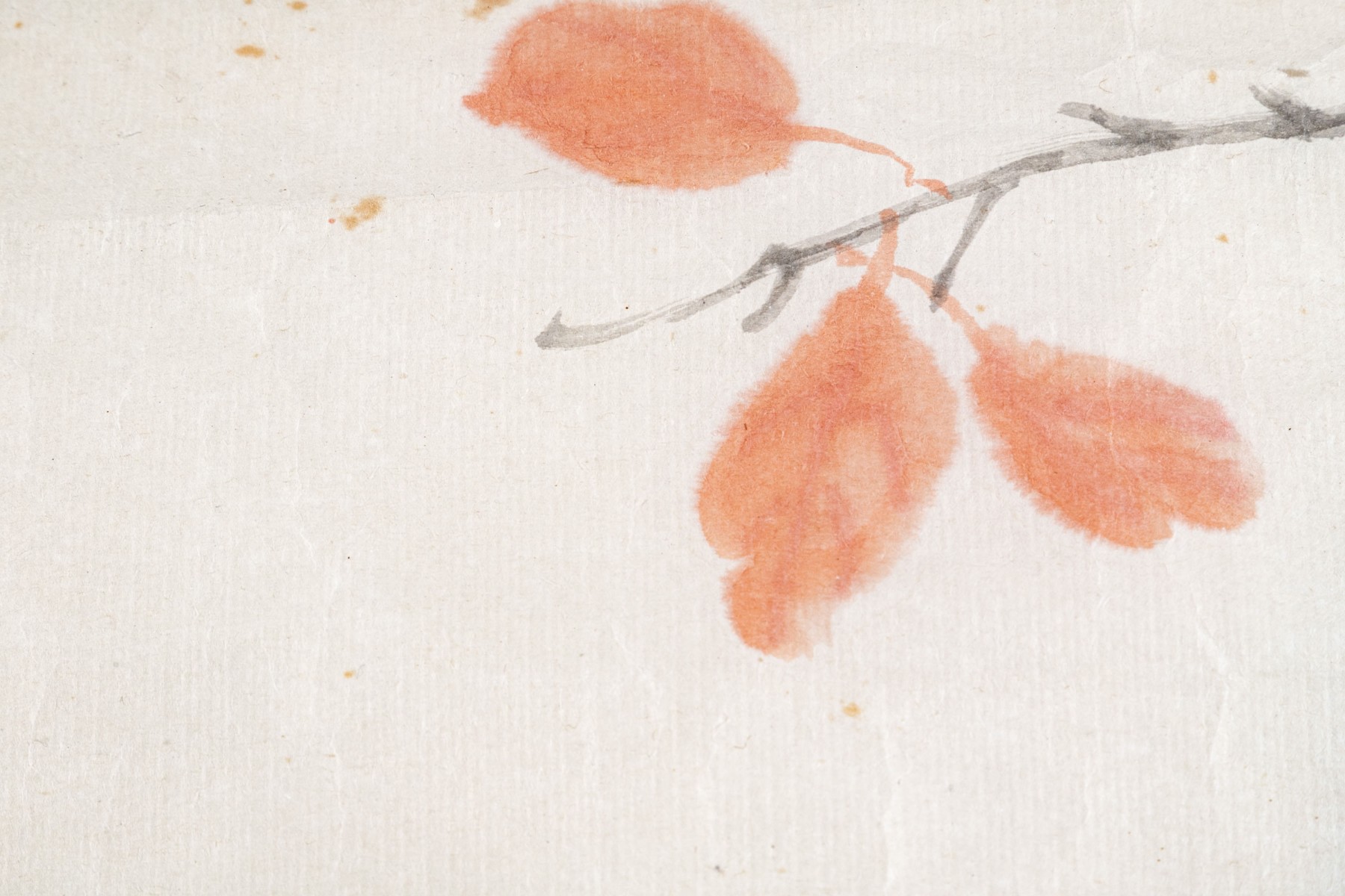 Condition: the paper creased overall but a lovely image and good colors. A band of brown spots below (not sure if part of the artwork) and a few spots elsewhere. Please review the photos as they are part of the condition report.