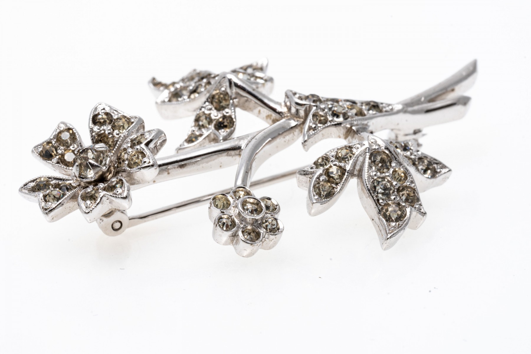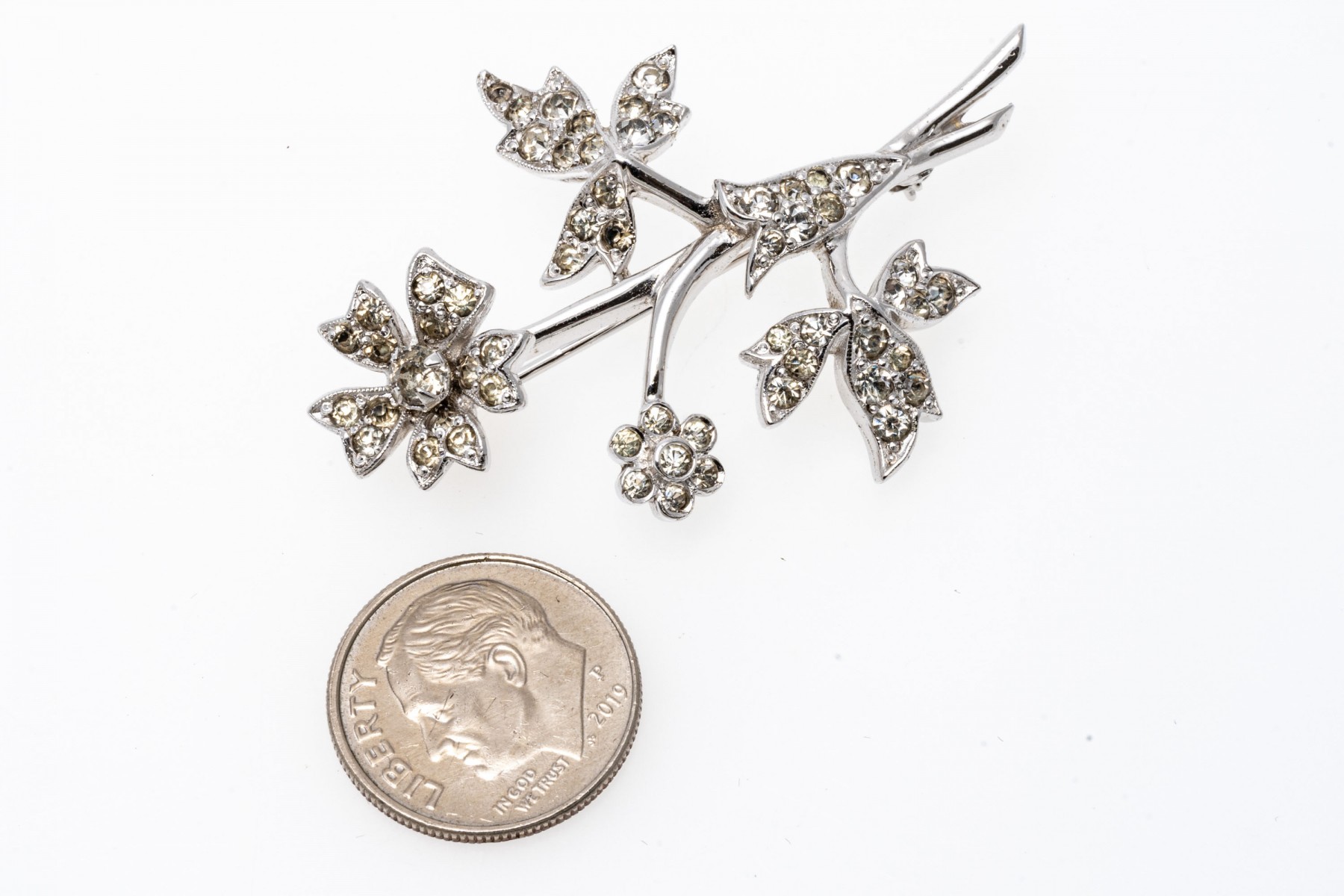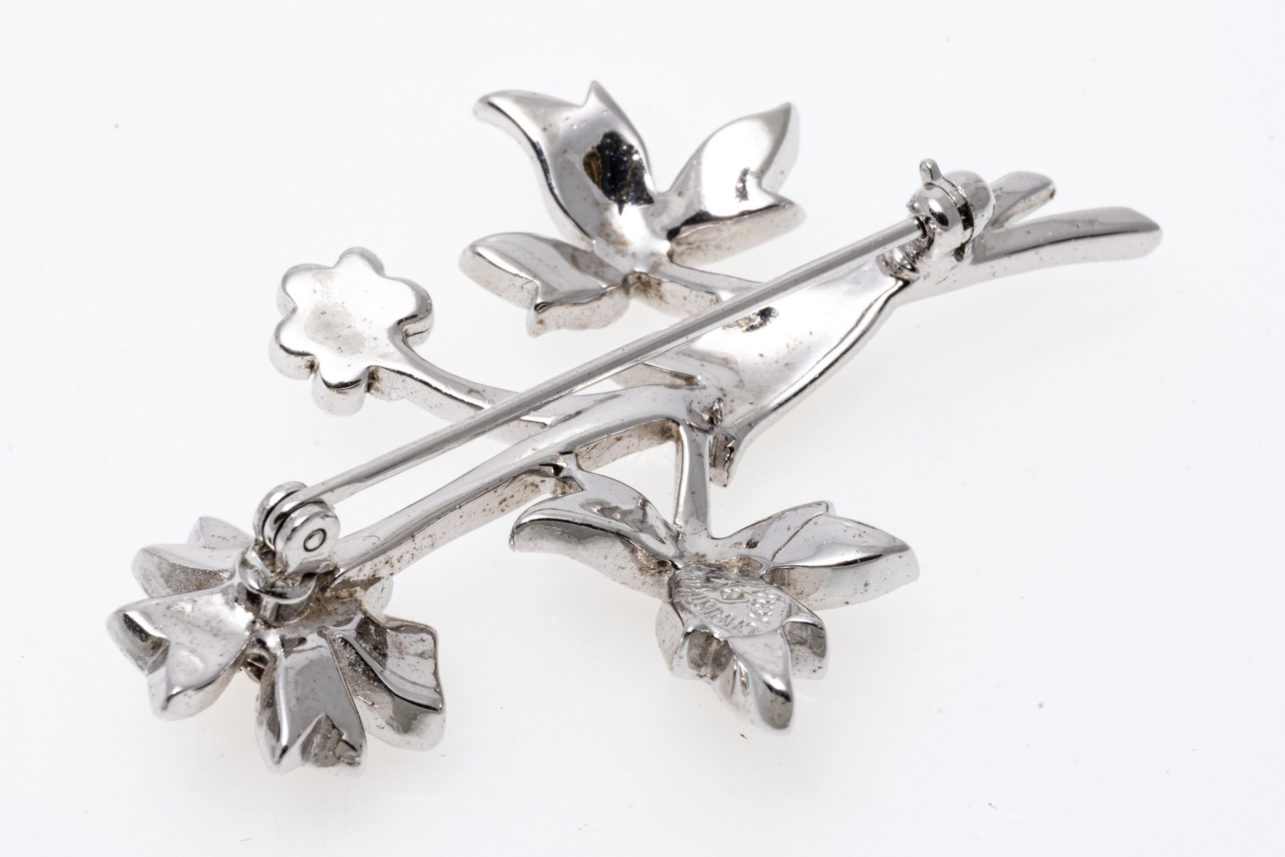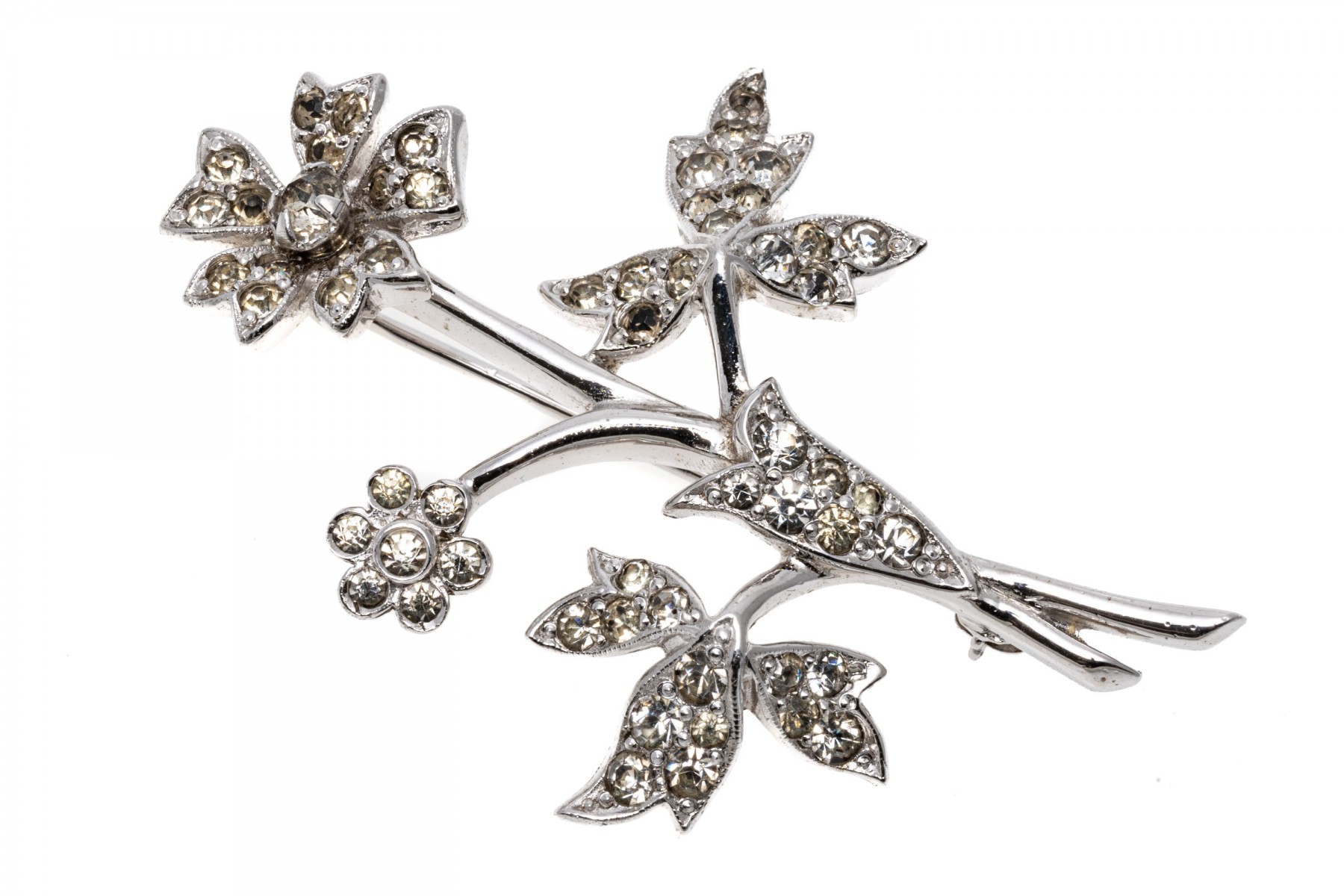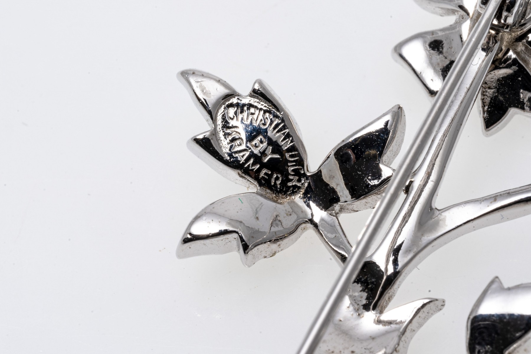 A bright floral bouquet brooch. Set into the leaves and blossoms are round white cubic zirconia by Kramer for Christian Dior.