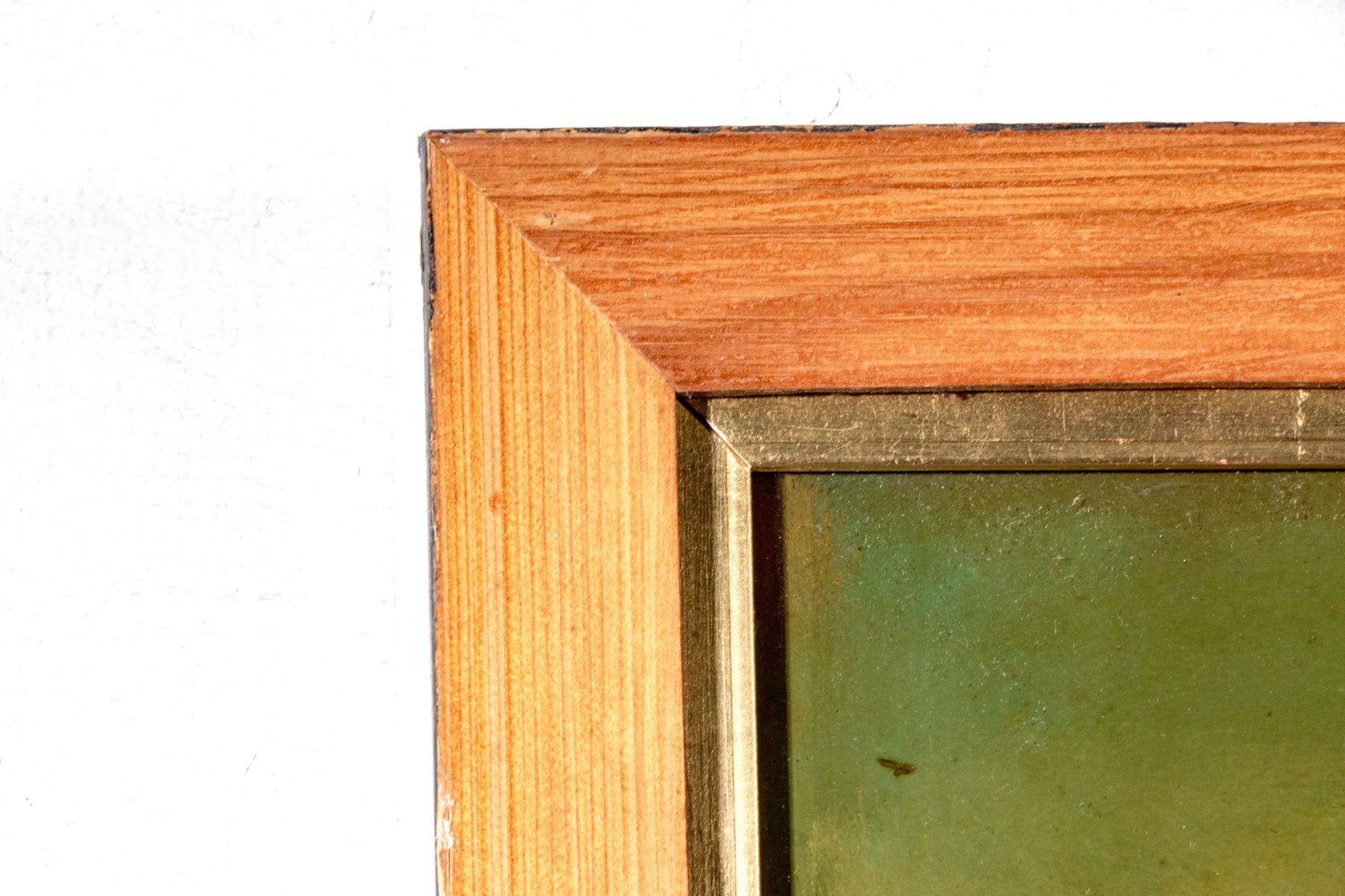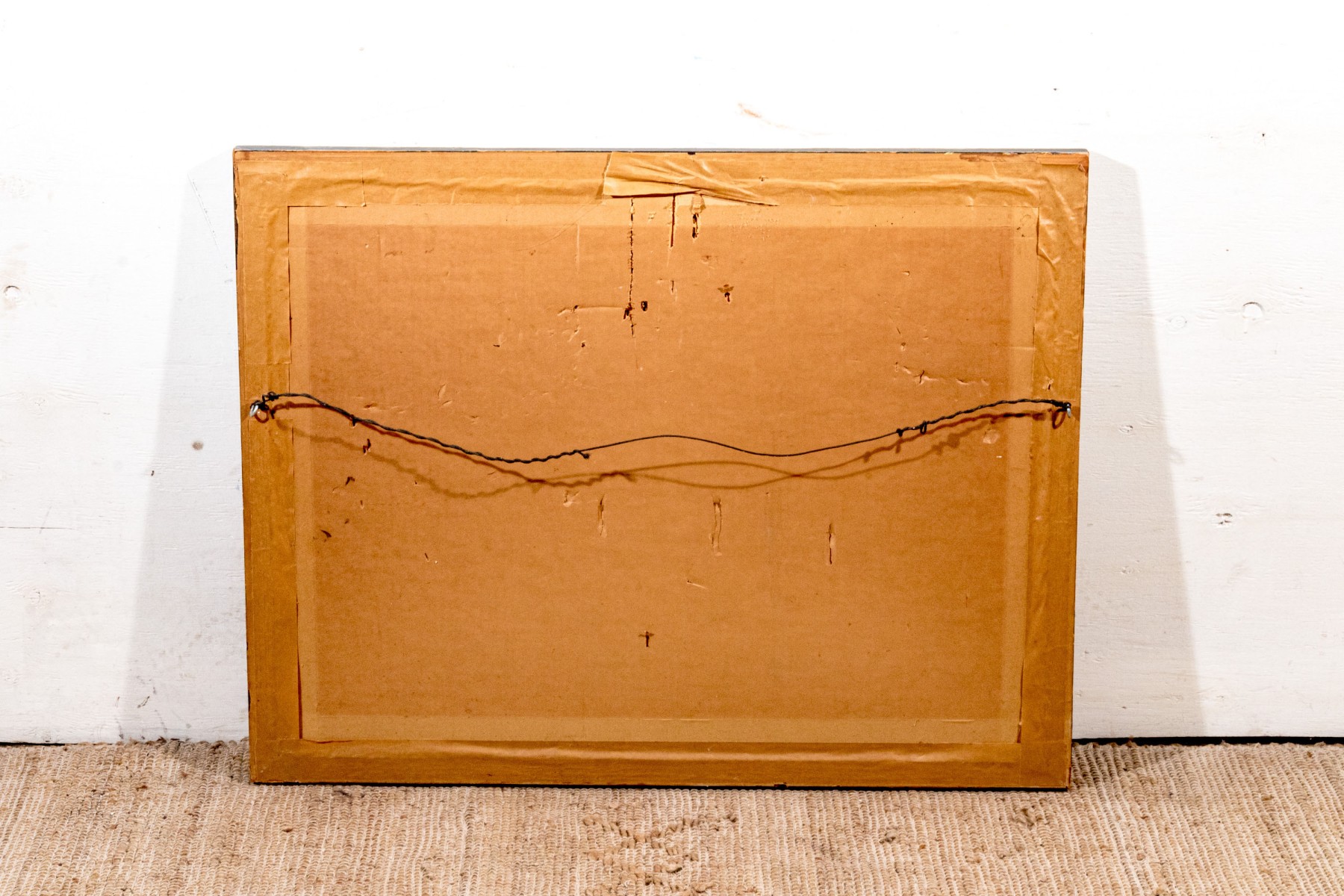 Condition: artwork good, some scrapes to the frame and a few paint spots on the glass. Please review the photos as they are part of the condition report.