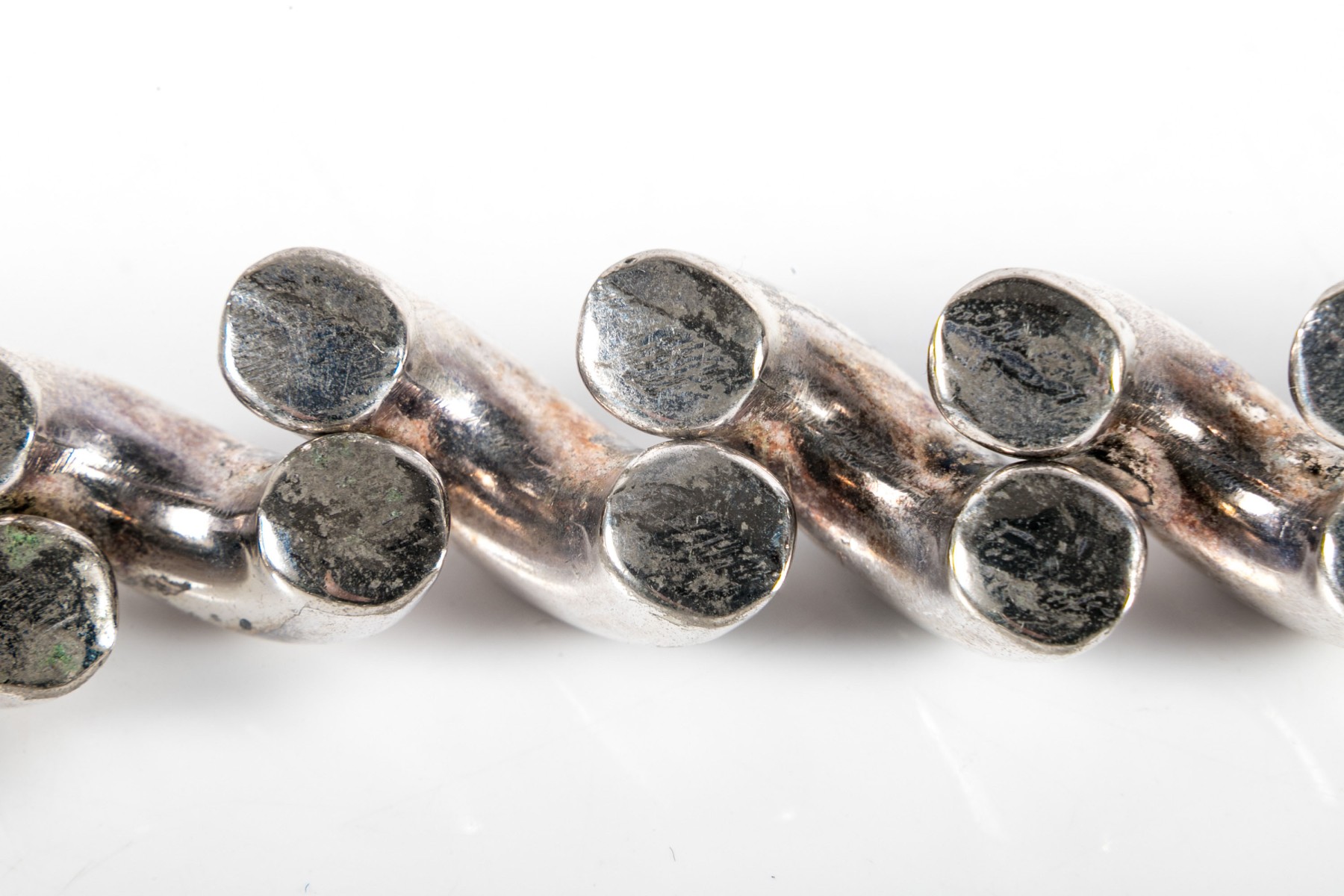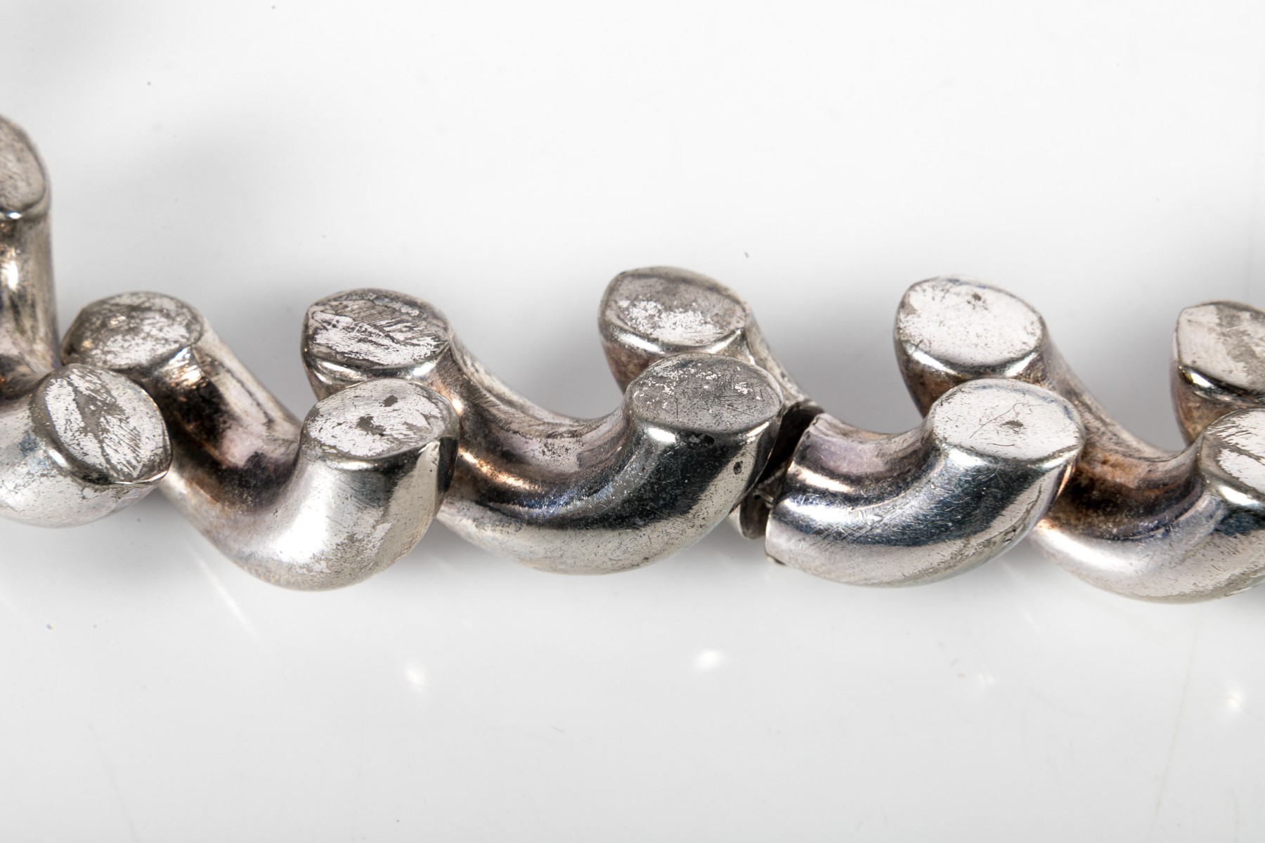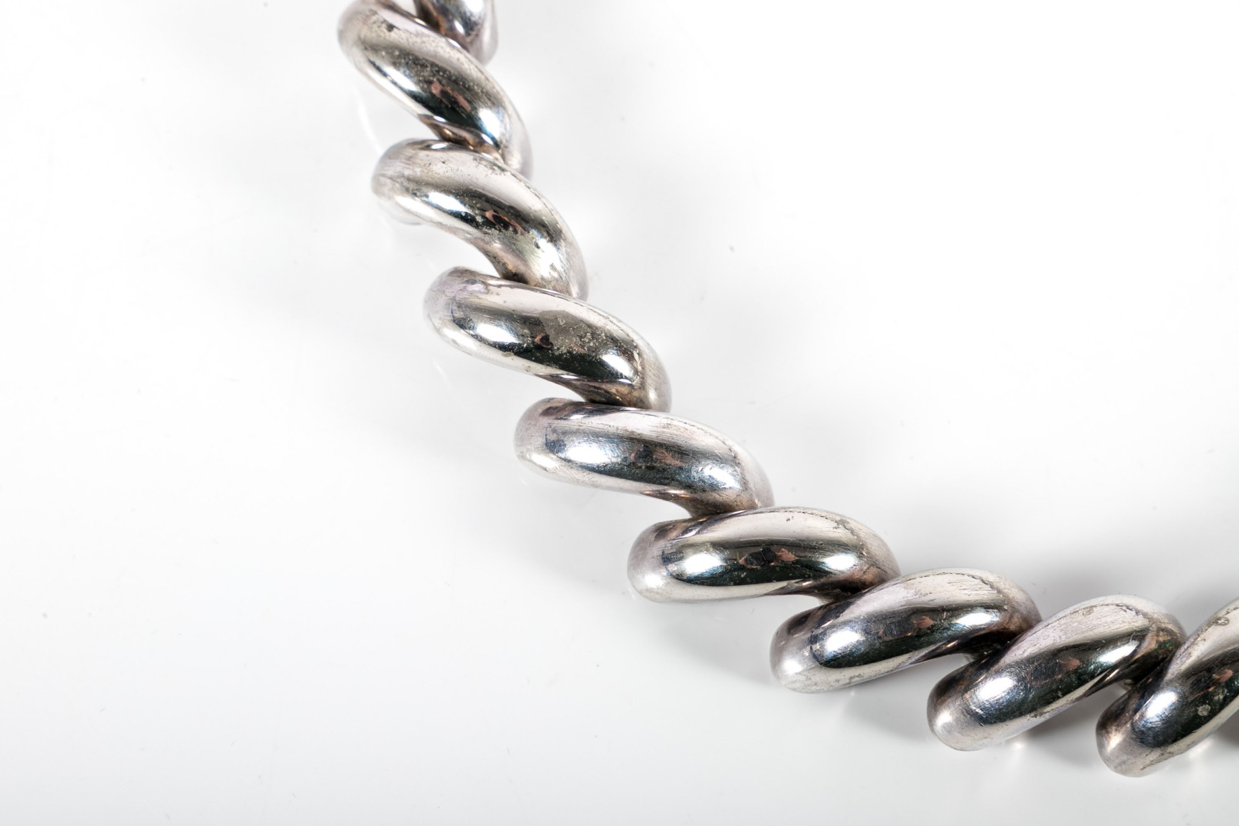 A bold and chunky sterling silver statement necklace displaying large domed macaroni links.