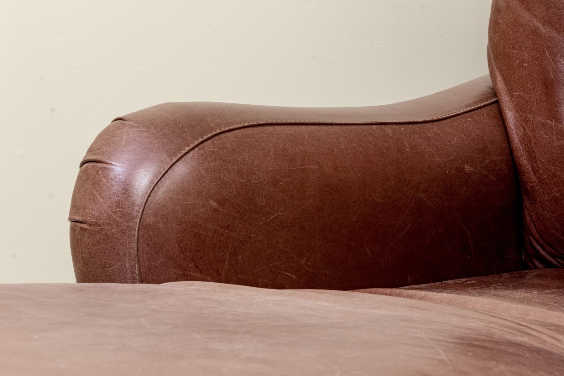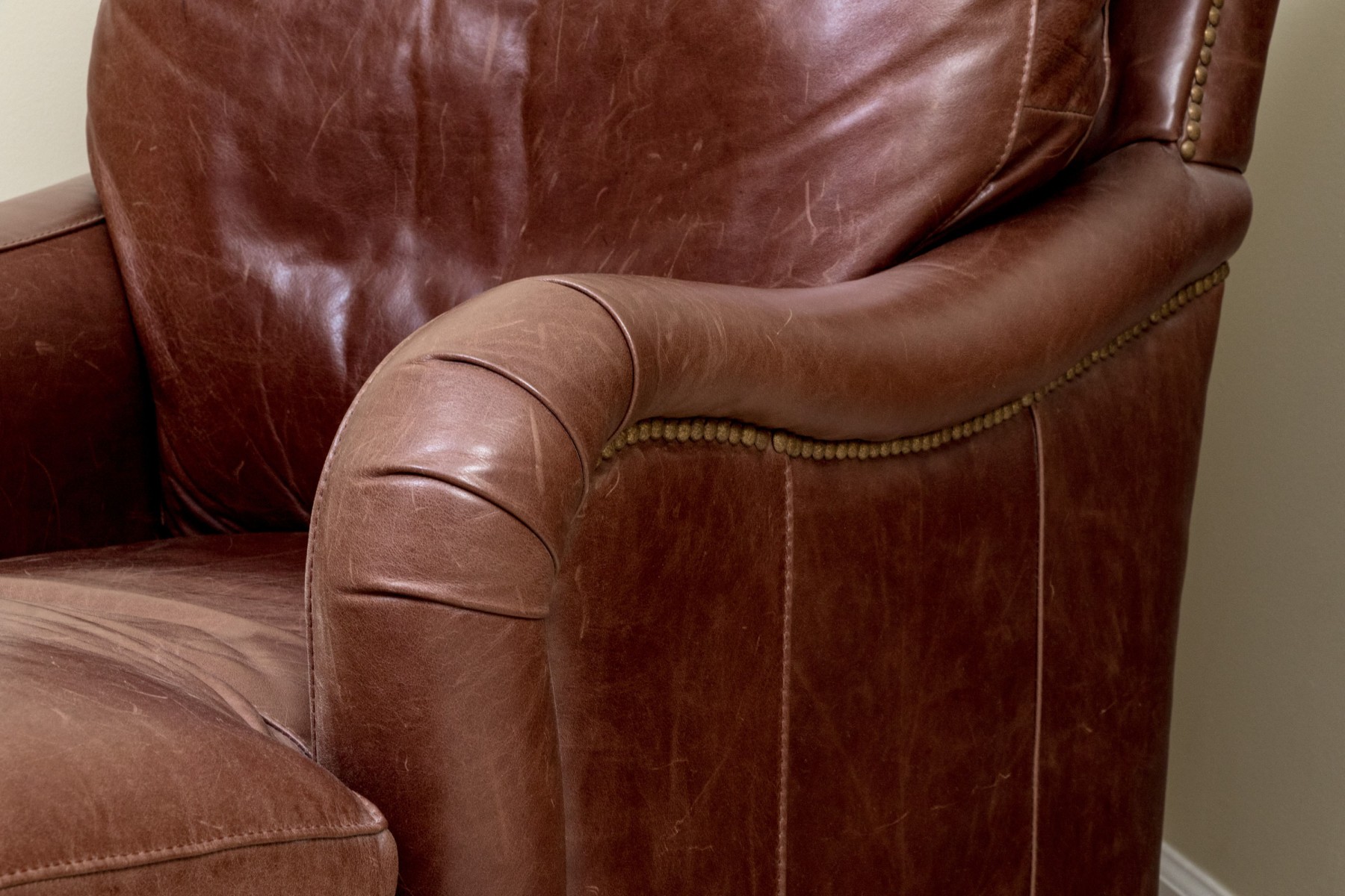 Minor scuffs and scratches to the leather upholstery commensurate with some age and usage. Despite presents well.