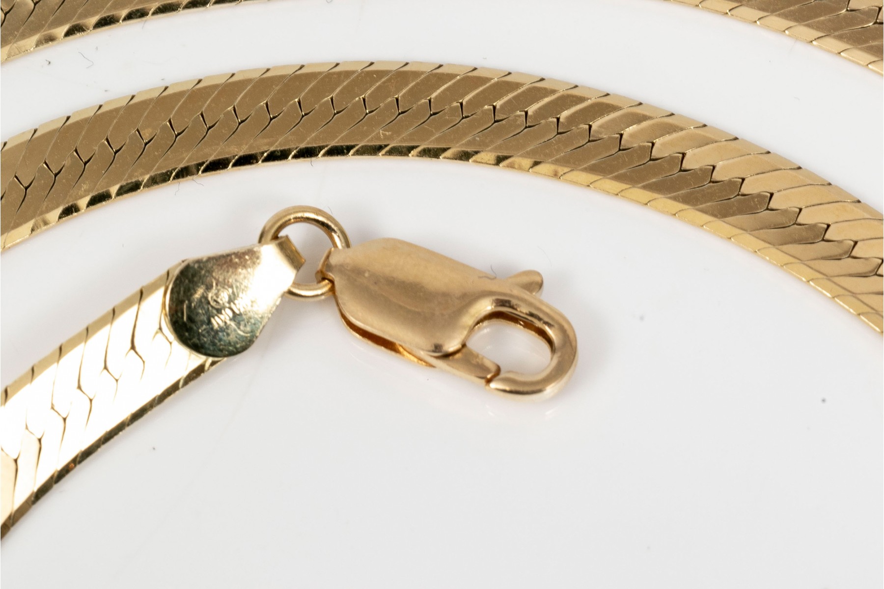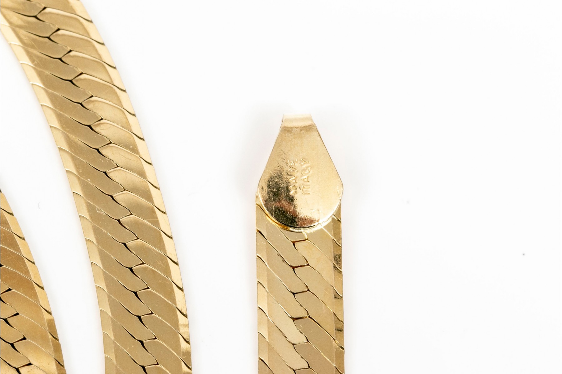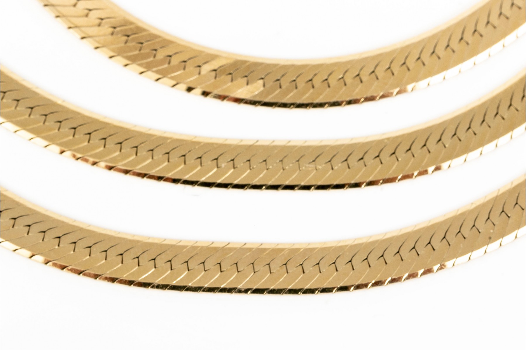 Classic 14K Herring Bone Chain Necklace #294447. Black Rock Galleries provides high end estate liquidation services through online estate auctions and a 50,000 sq ft designer showroom. estate liquidator, estate sale, online auction, antiques, fine art, liquidation, clean outs, auction, consignment, interior design, fine jewelry, collectibles, appraisals, estate appraisals, estate services, decor, furniture, furniture consignment, antique center, consignment shop. We offer appraisal services and specialize in fine art, jewelry, antiques and decorative arts. Sell with us. Black Rock Galleries is the tri-state's largest estate liquidator serving New England and the greater New York City area. We are the trusted source for expert appraisals, auction services, estate sales, and consignments. Black Rock Galleries is the east coast's largest and most trusted estate liquidator, with locations in Connecticut, greater Boston, MA and Raleigh, NC, Fairfield, Southport, Apex, TX. We are the best source for expert appraisals, auction services, estate sales and consignments. We have served thousands of families and estates with compassion, professionalism and expertise. BRG works with attorneys, executors, realtors and families to bring the greatest return on personal and estate property in the current market. Our unique combination of services make us the easy choice to get the job done in a timely and stress-free manner. We are with you from the initial consultation to the final clean out. Our house-built online auction software platform offers clients a dynamic approach to liquidating their personal property. This venue is most successful in bringing the best return with the least amount of disruption for our clients. See our services page for a complete description of this offering. Classic 14K Herring Bone Chain Necklace #294447