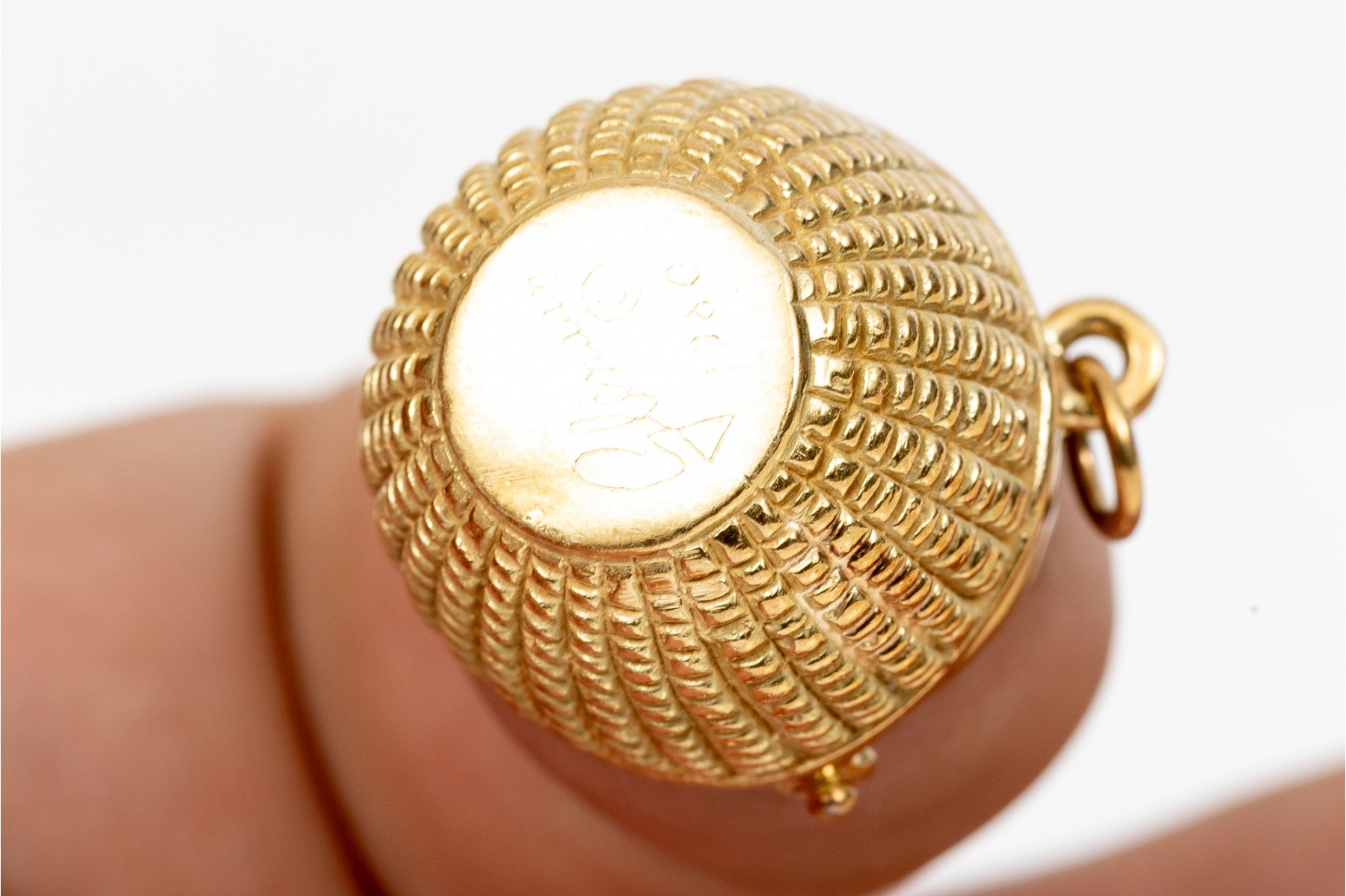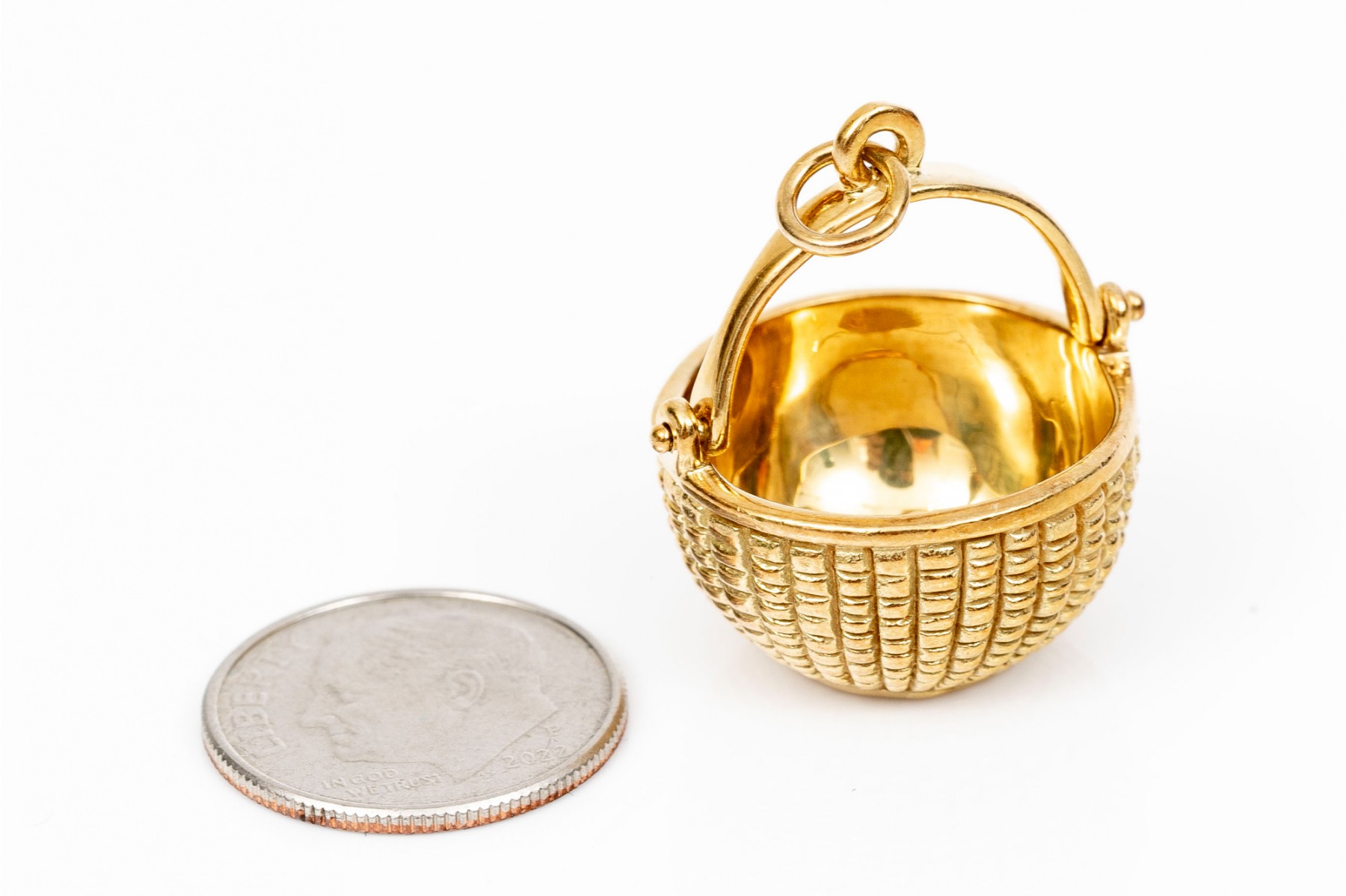 A classic 18K yellow gold Nantucket basket pendant by Glenaan.