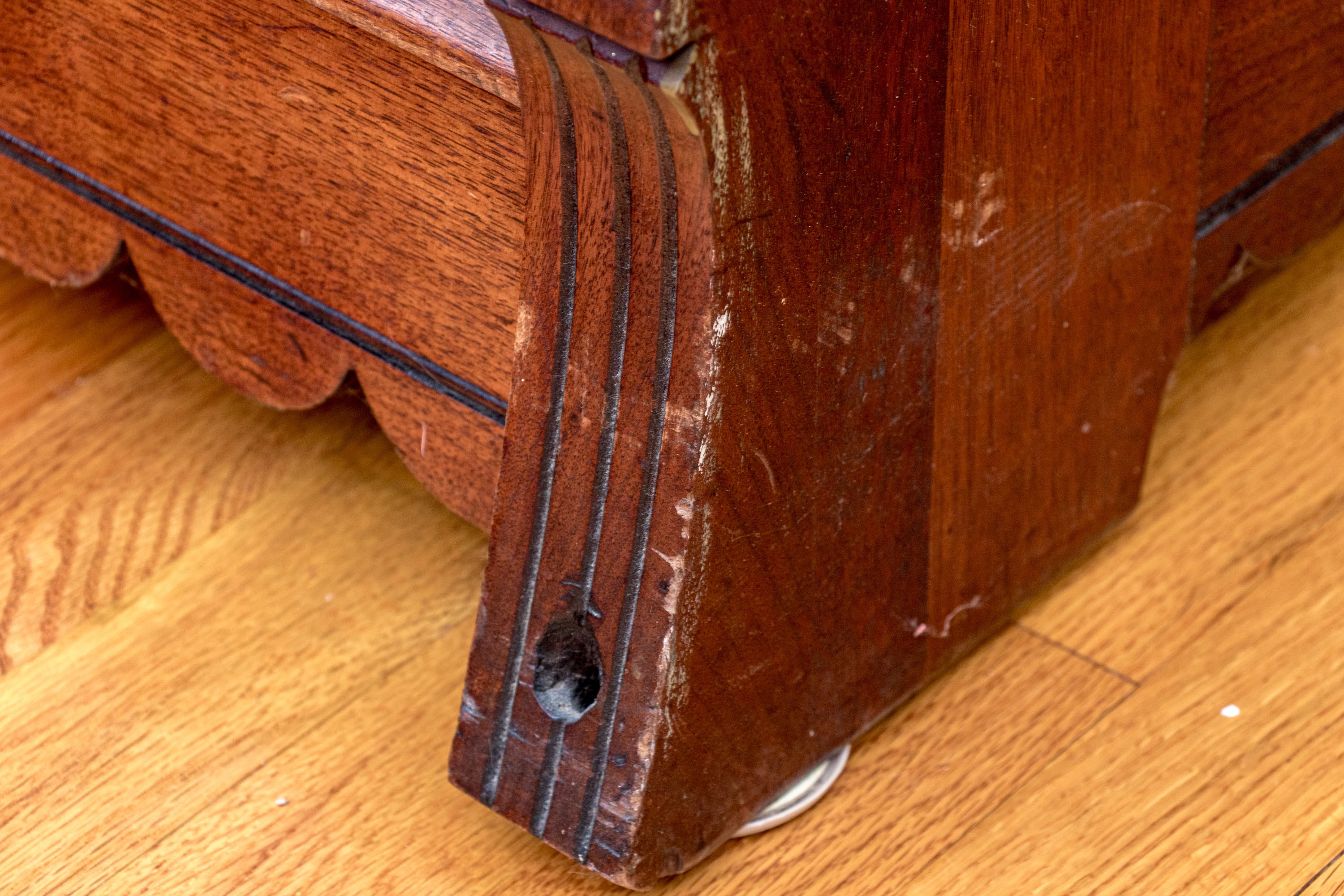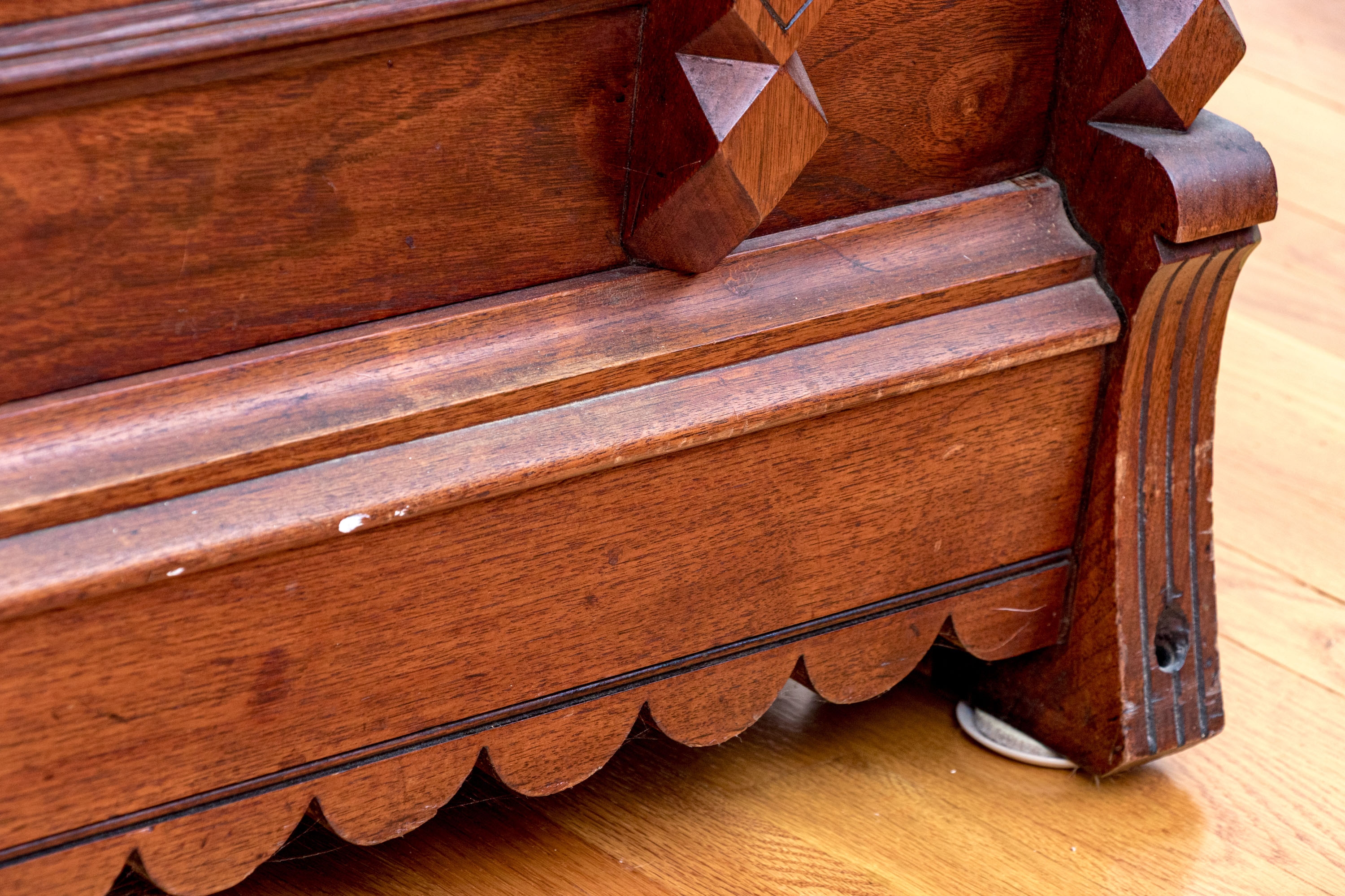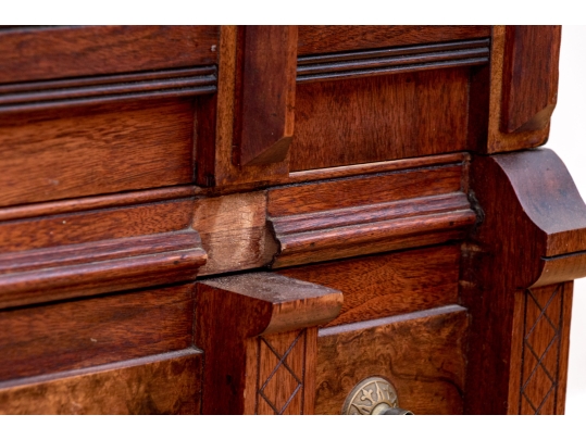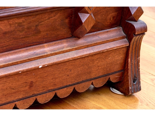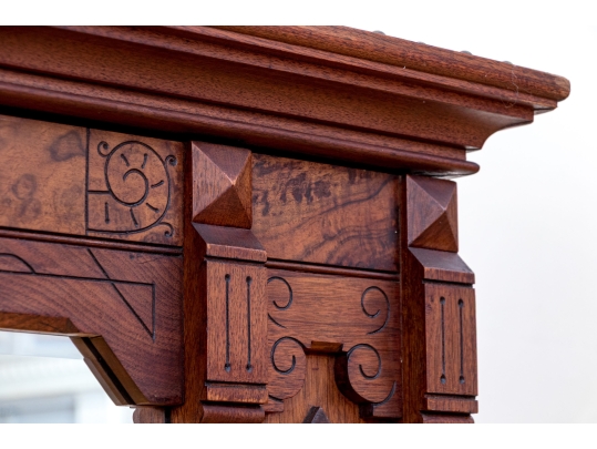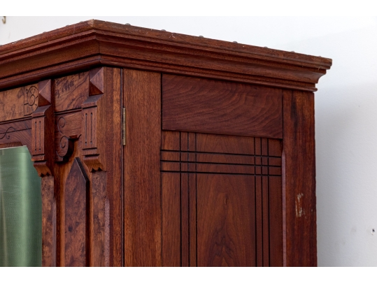 Condition: Please see detail photos. Various acceptable and expected signs of age include a few nicks and rubs, a missing trim piece (Shown in photos), some drawer scraping and an included loose piece all mentioned for accuracy as the Armoire presents in, as said above, a Classic Eastlake style.