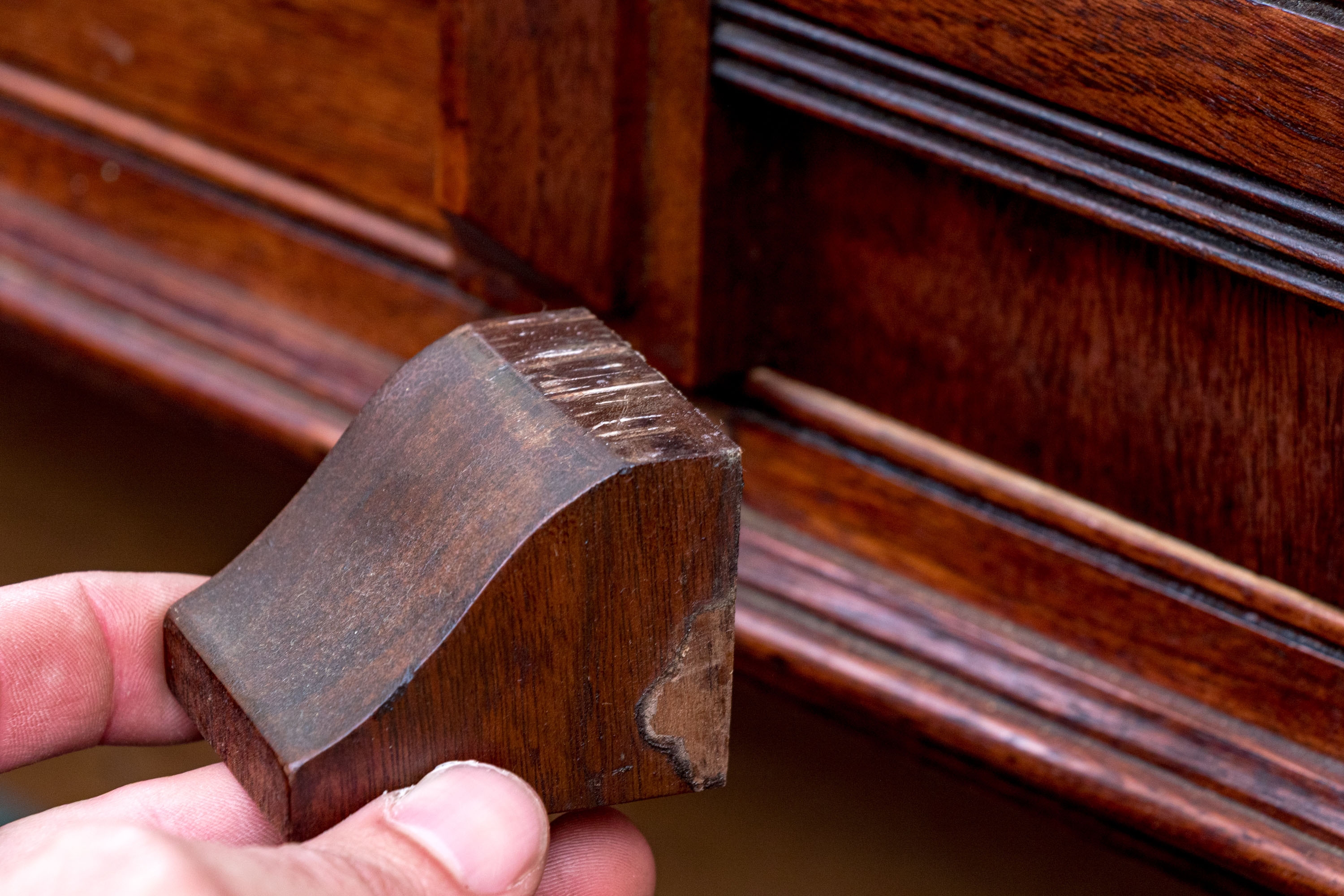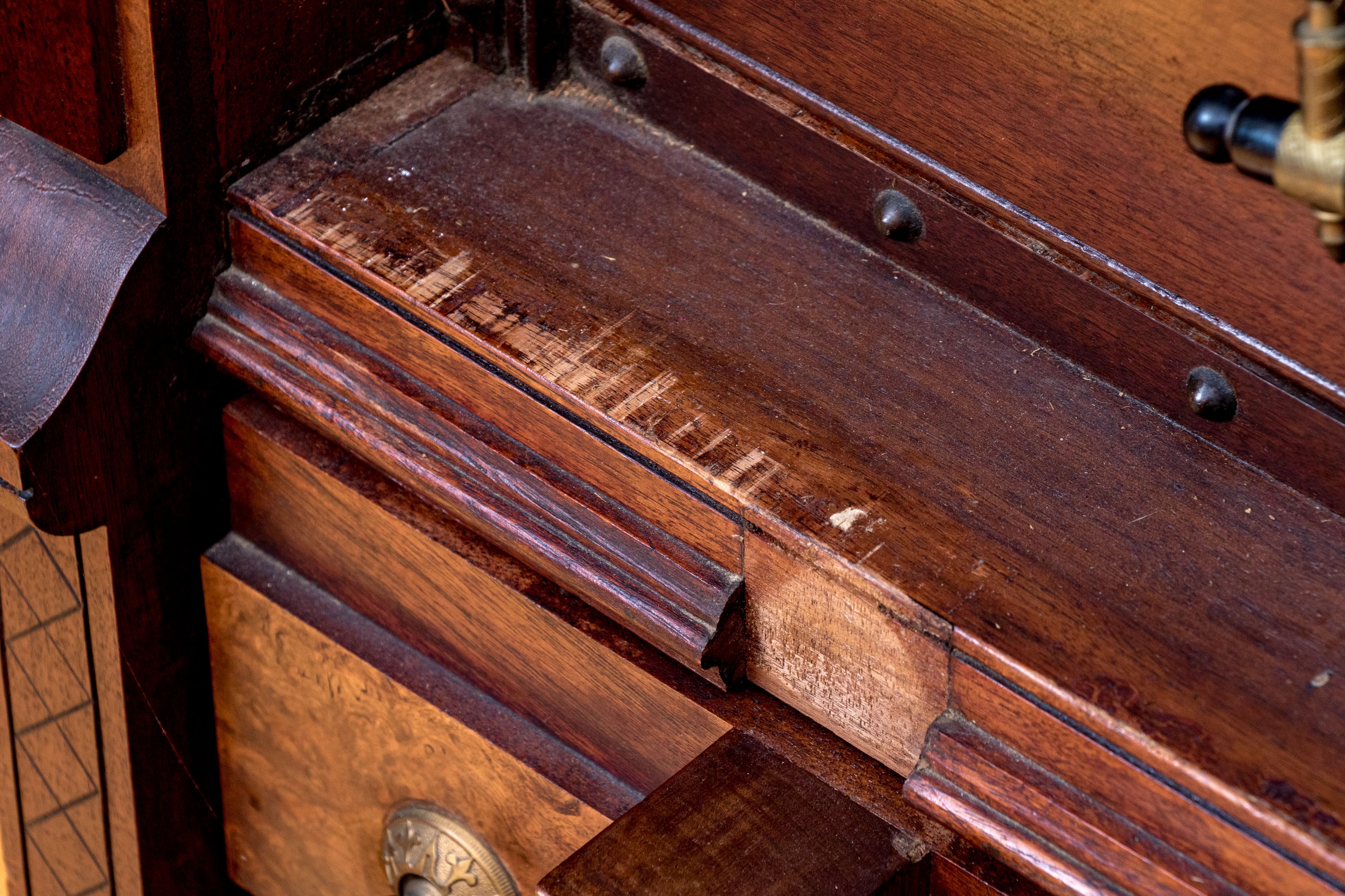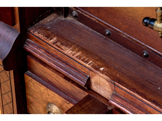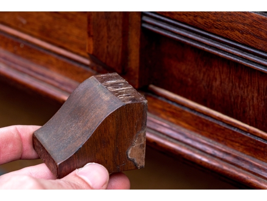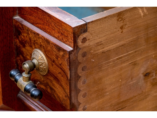 Condition: Please see detail photos. Various acceptable and expected signs of age include a few nicks and rubs, a missing trim piece (Shown in photos), some drawer scraping and an included loose piece all mentioned for accuracy as the Armoire presents in, as said above, a Classic Eastlake style.
